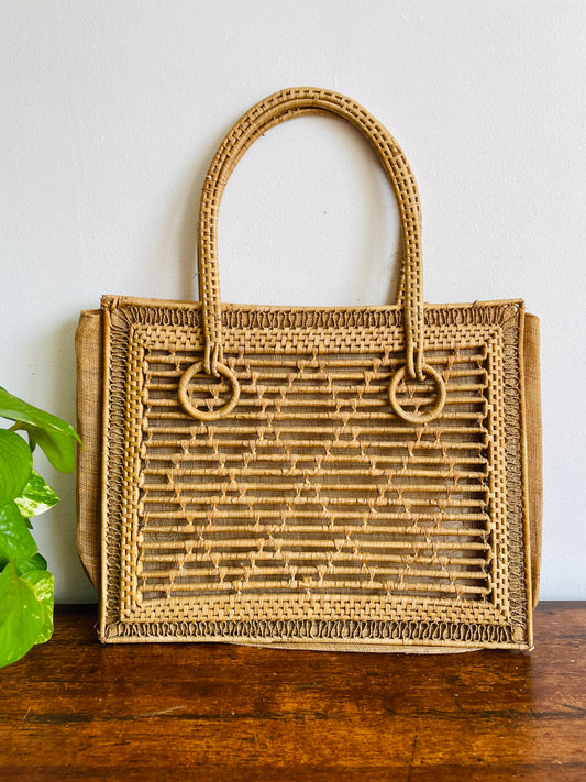 Woven Straw Rattan with Mesh Sides Purse