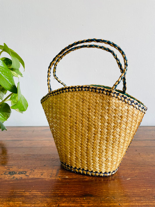 Woven Straw & Raffia Bucket Purse Basket with Lid