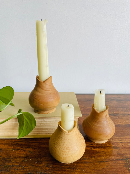 Handmade Wood-Turned Tulip Mouthed Candle Holders or Bud Vases - Artist Signed - Set of 3Regular price $40.00 CADRegular priceUnit price / per-