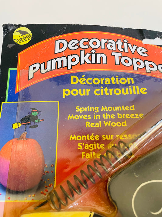 Vintage Brand New 1998 Sun Hill Industries Halloween Witch Decorative Pumpkin Topper - Spring Mounted, Real Wood, Moves in the Breeze