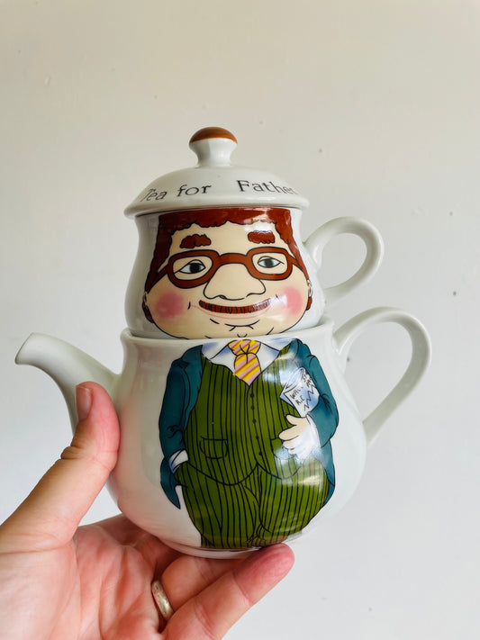 Vintage Tea For Father Stacking Teapot with Mug - Made in Korea - Set of 3 Pieces