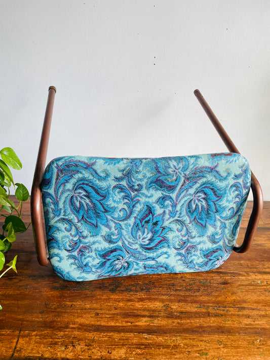 Vintage 1968 Perfect Chrome Furniture Co. Stackable Stool Chair with Vinyl Cushion - Blue Floral Pattern #2 - Made in Toronto