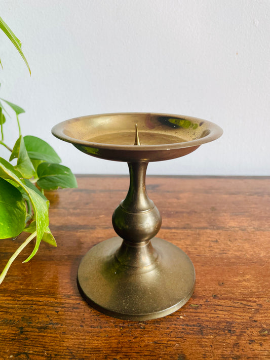 Vintage Heavy & Solid Brass 3.5" Pillar Candle Holder with Spike