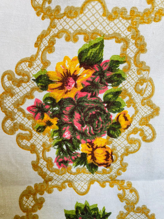 Linen Tablecloth with Yellow Flowers - Also Makes Great Fabric!