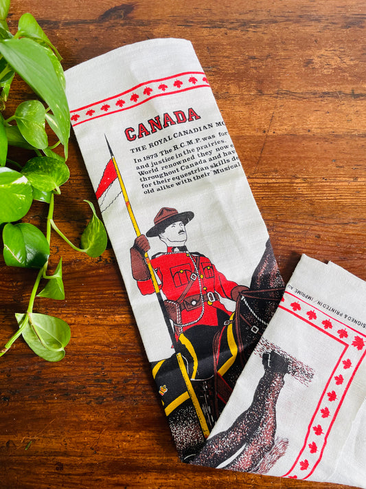 Brand New Vintage The Royal Canadian Mounted Police Linen & Cotton Blend Tea Towel - Skemo / Tony Paine - Silkscreened in Canada