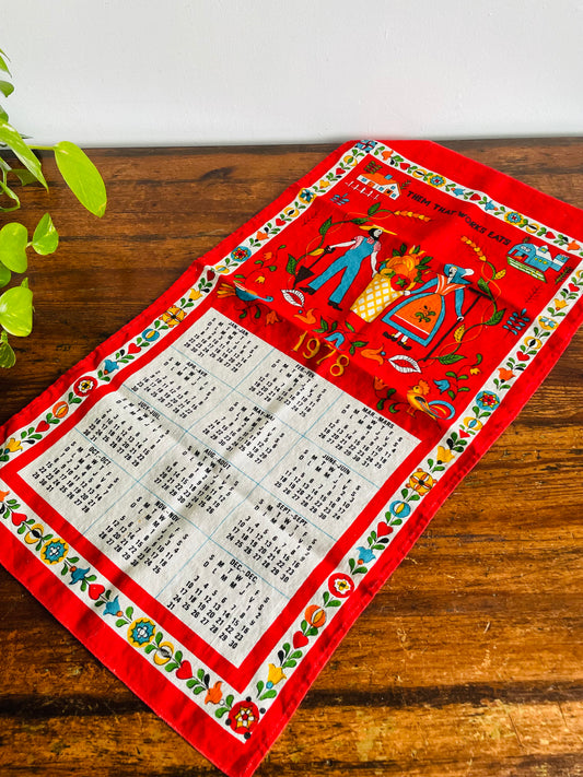 1978 Calendar Tea Towel - Them That Works Eats - Pennsylvania Dutch Folk Art Style Design