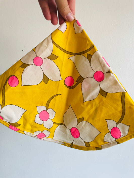 Groovy Yellow Fabric Triangle Pouch Holder or Hat with White & Pink Flower Design - Solve the Mystery of What This Is!
