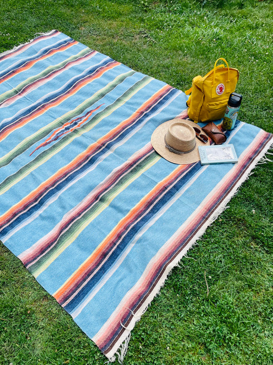 Very Large Mexican Blanket with Stripes & Aztec Pattern - AS-IS