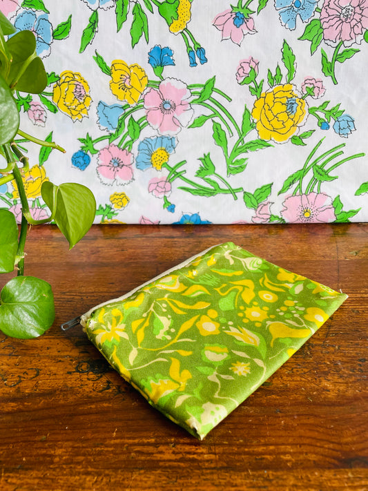 Groovy Zippered Pouch with Green & Lime Flower Design - As-Is