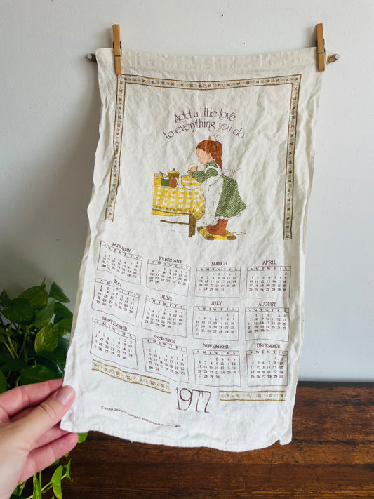 1977 Calendar Holly Hobbie Tea Towel - Carleton Cards Limited - Add a Little Love to Everything You Do