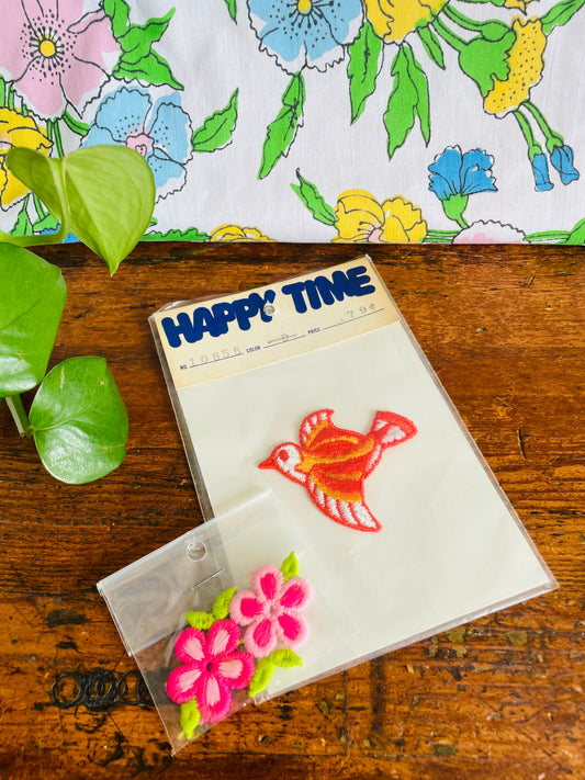 Groovy Patches - Happy Time Orange & Yellow Bird & Pink Flowers - Set of 2