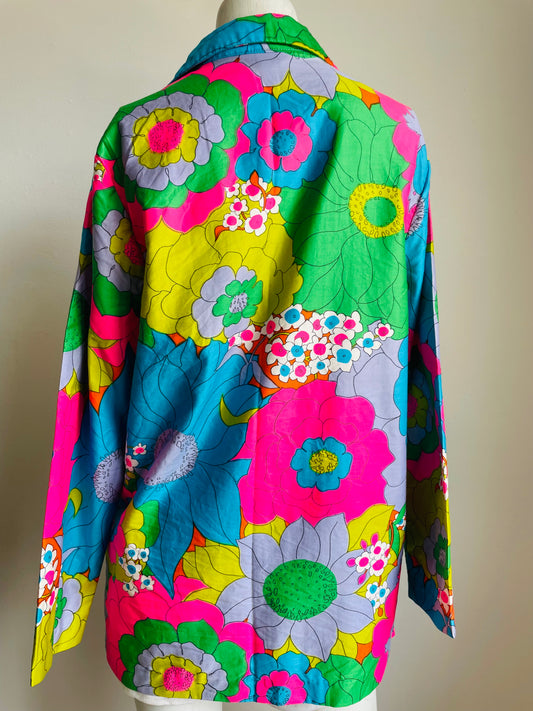 Super Groovy Flower Power Pedigree Montreal Button-Up Shirt - Perhaps Originally a Pyjama Shirt