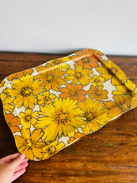 Metal Folding Lap Tray with Yellow & Orange Flower Design