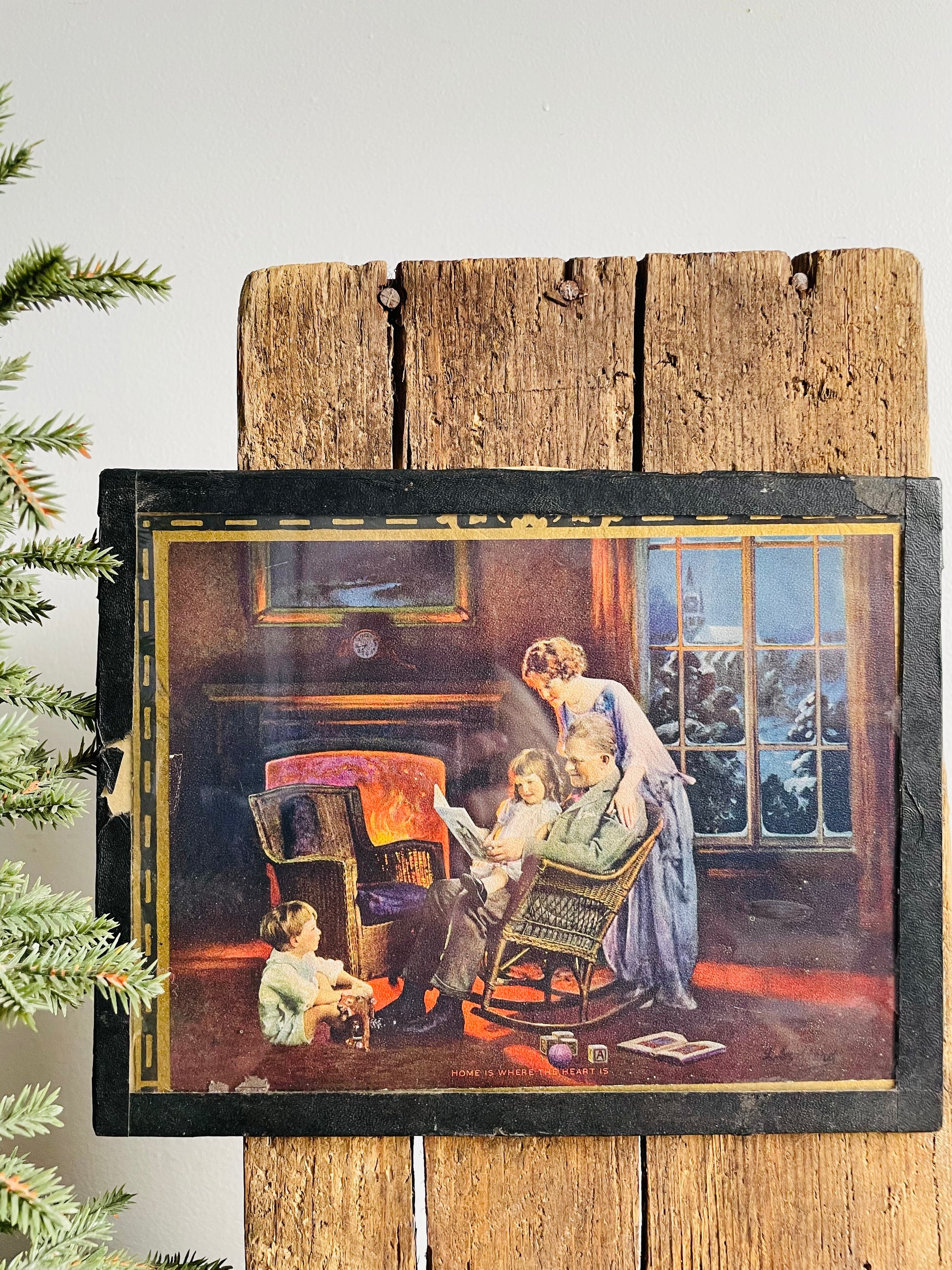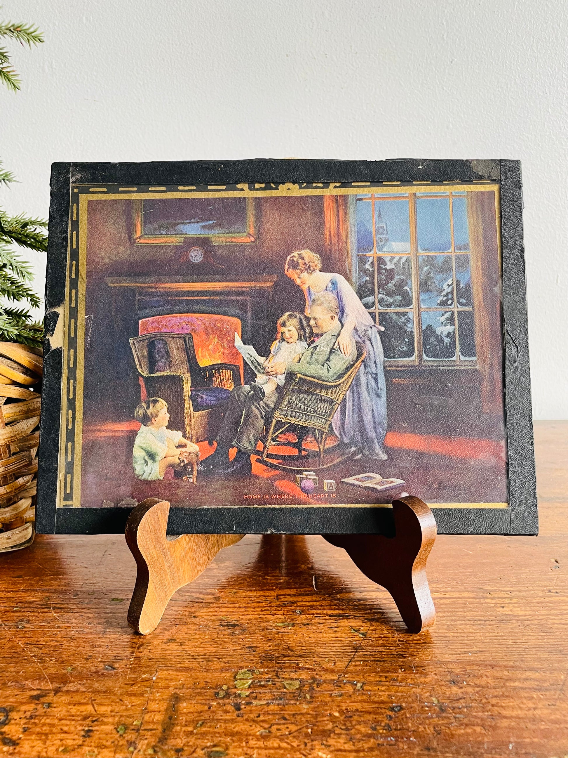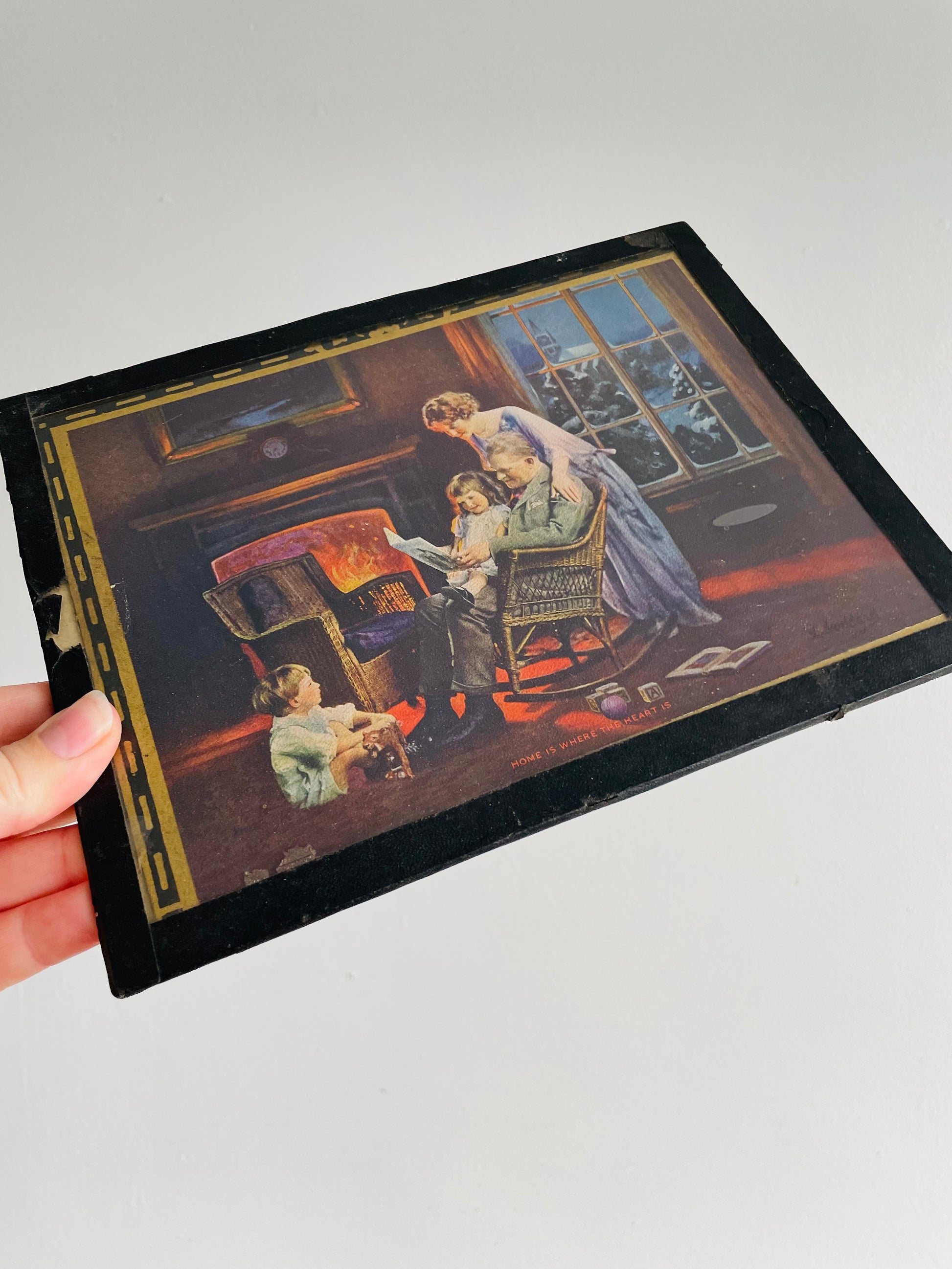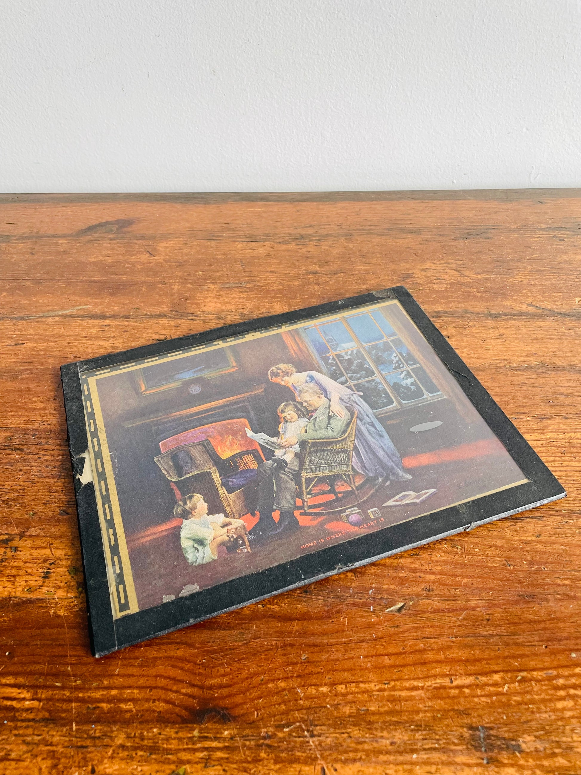 1920s / 1930s L. Goddard Print Picture in Glass - Home is Where the Heart Is