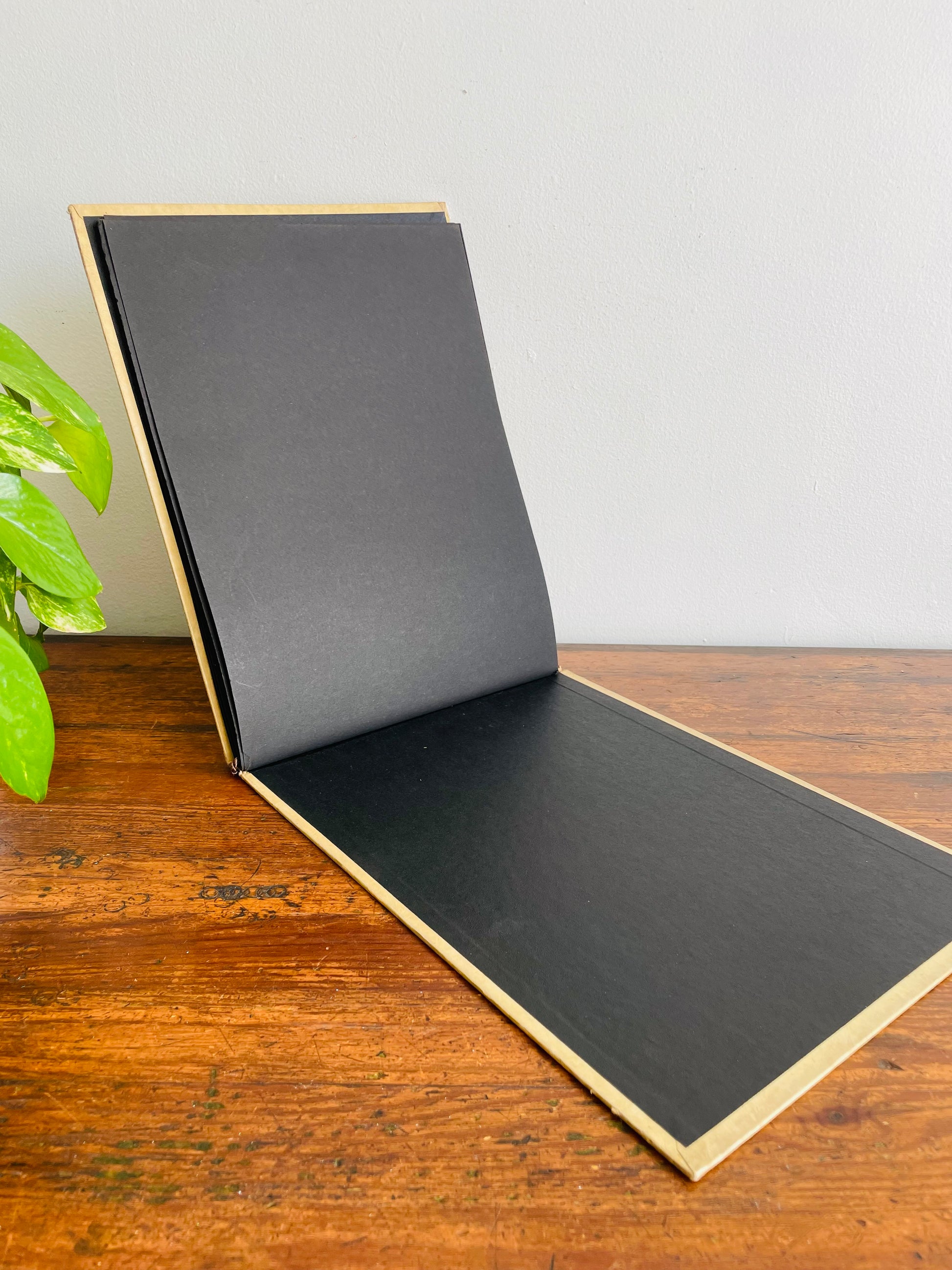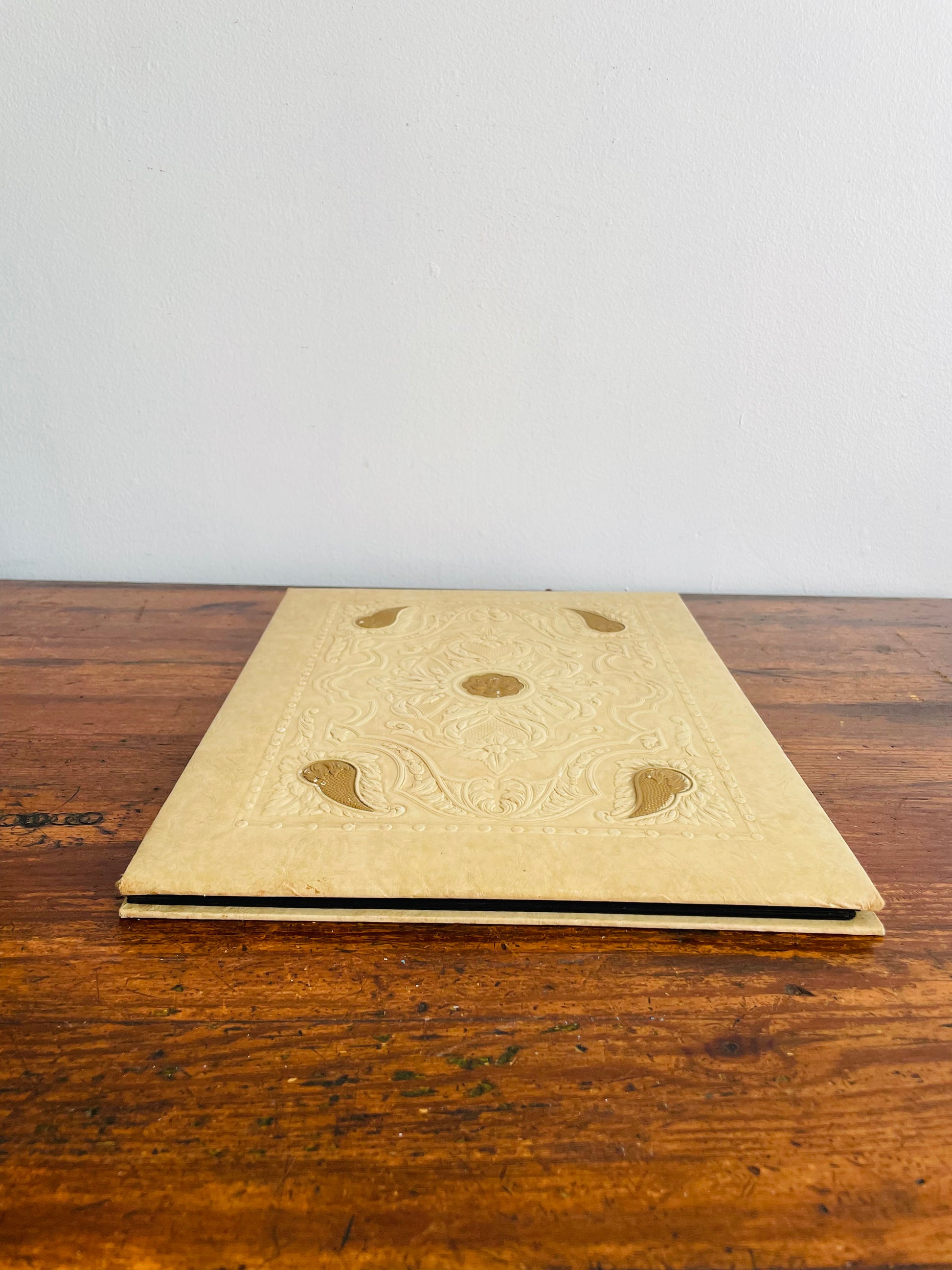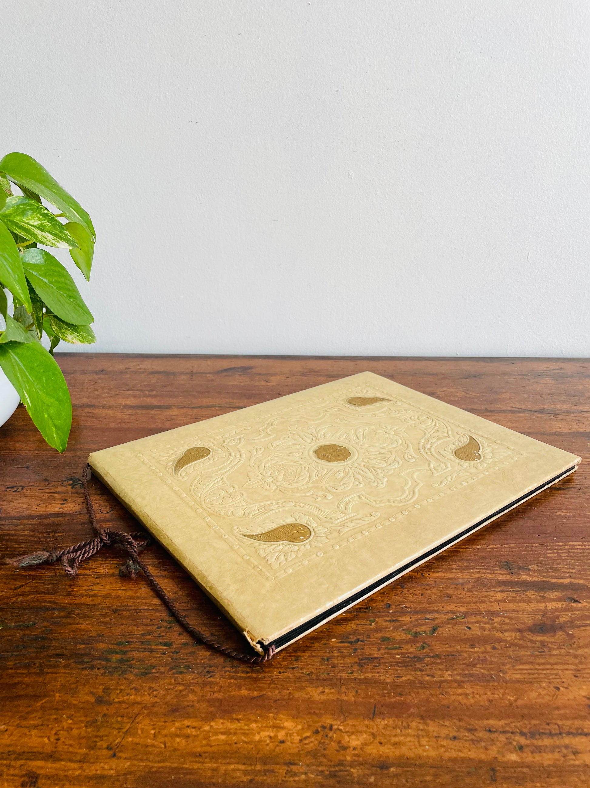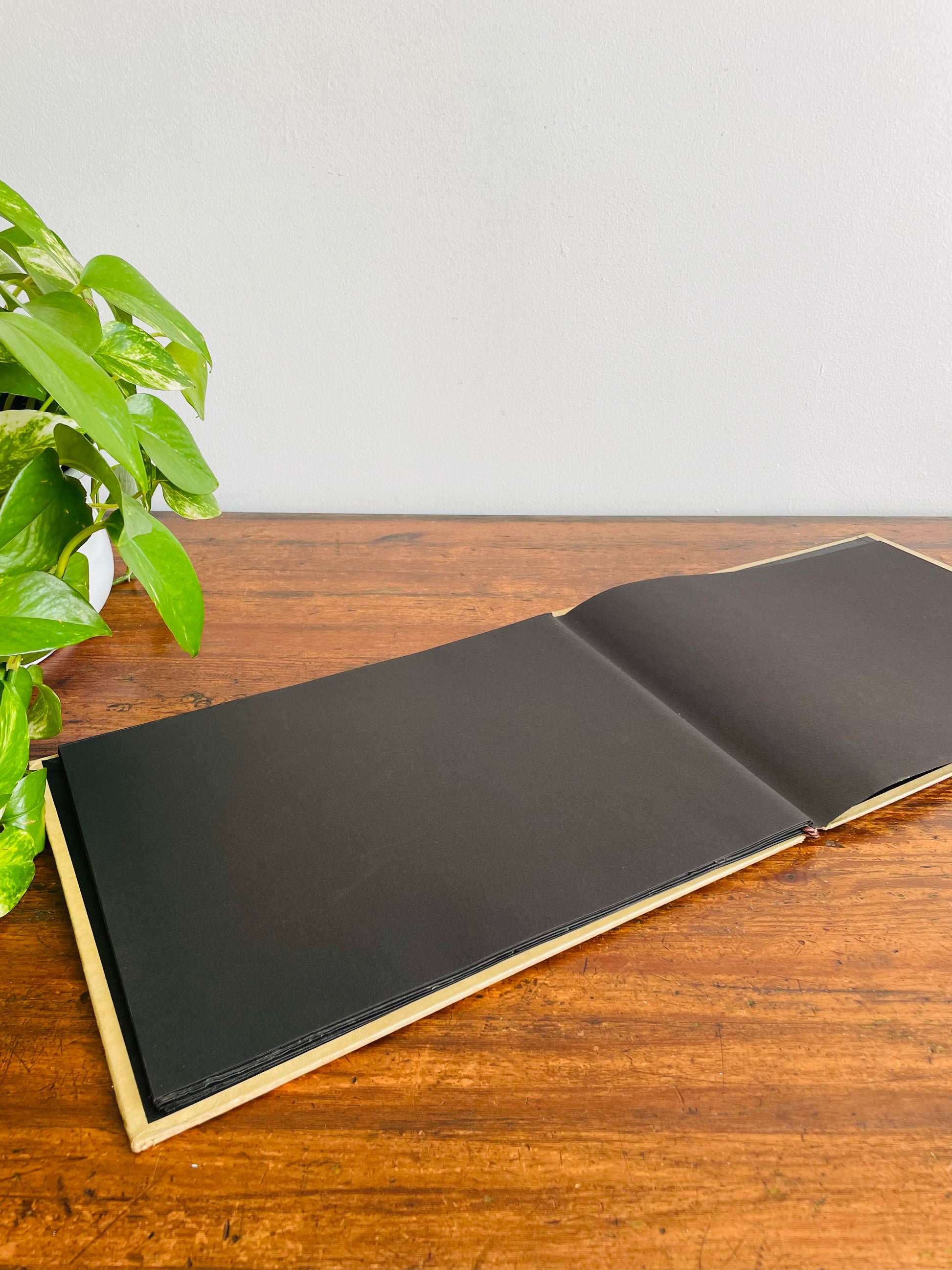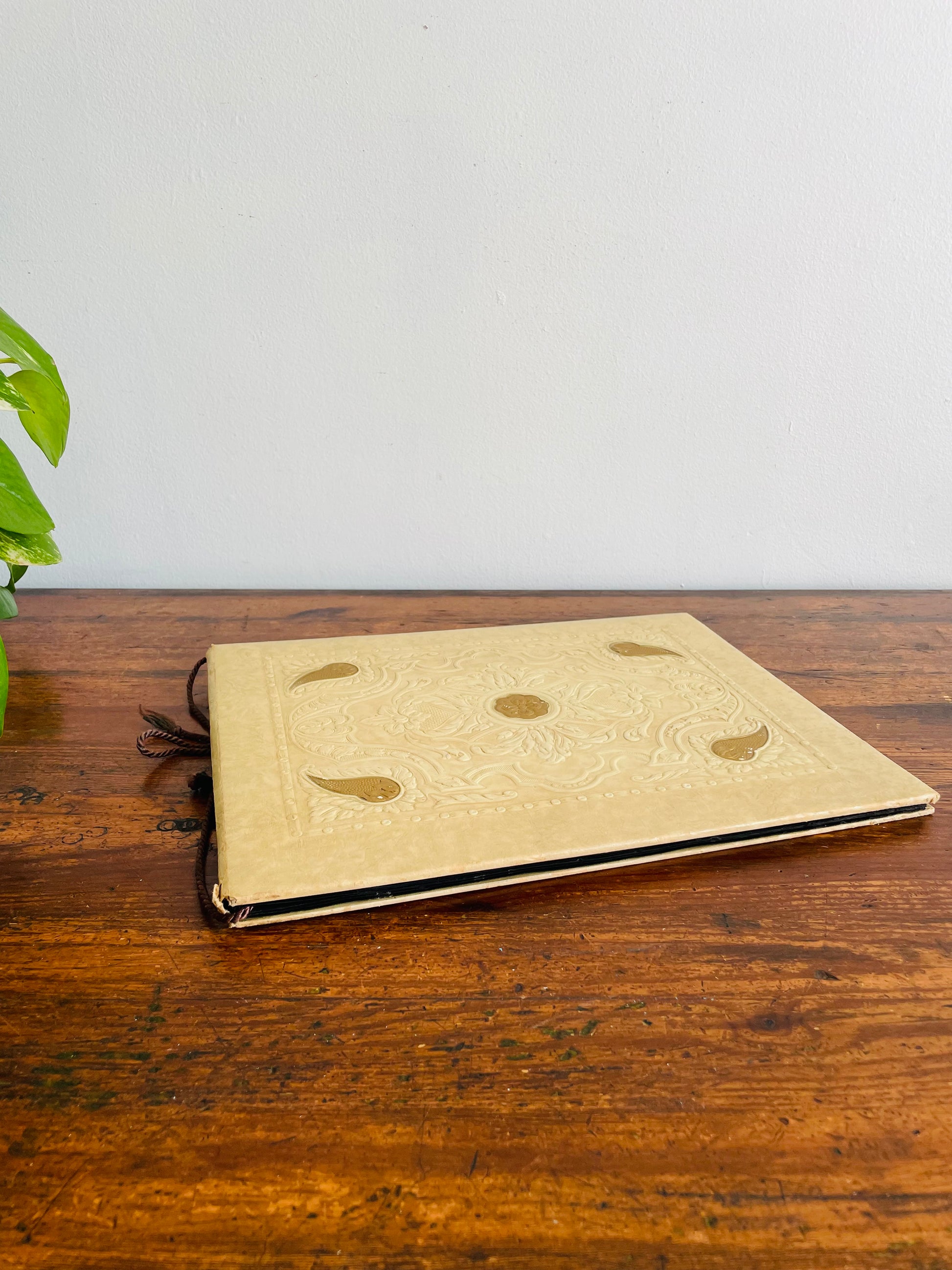 Antique Photo Album or Scrapbook - Cream with Gold Flowers & Filigree - Black Pages - Empty