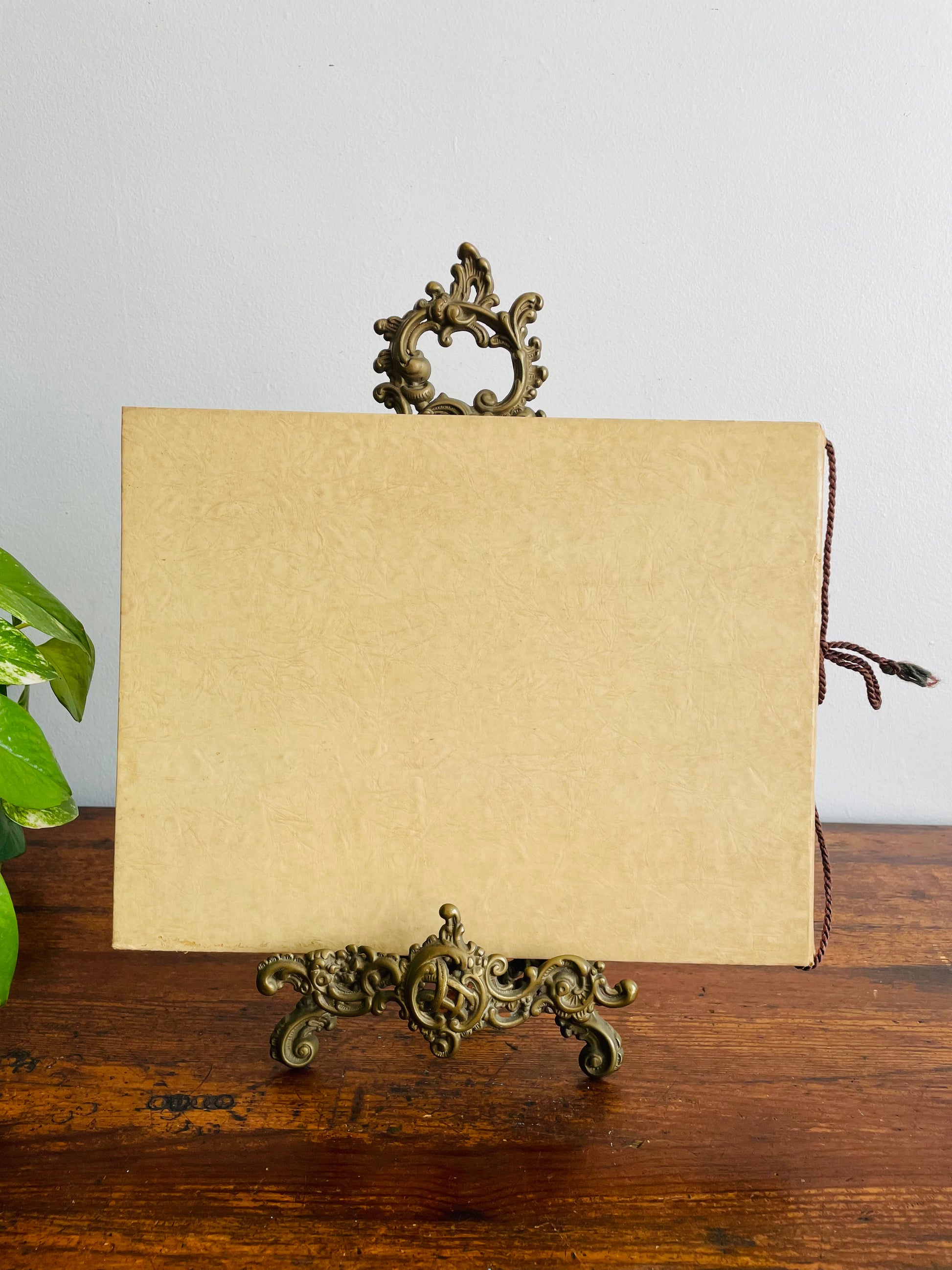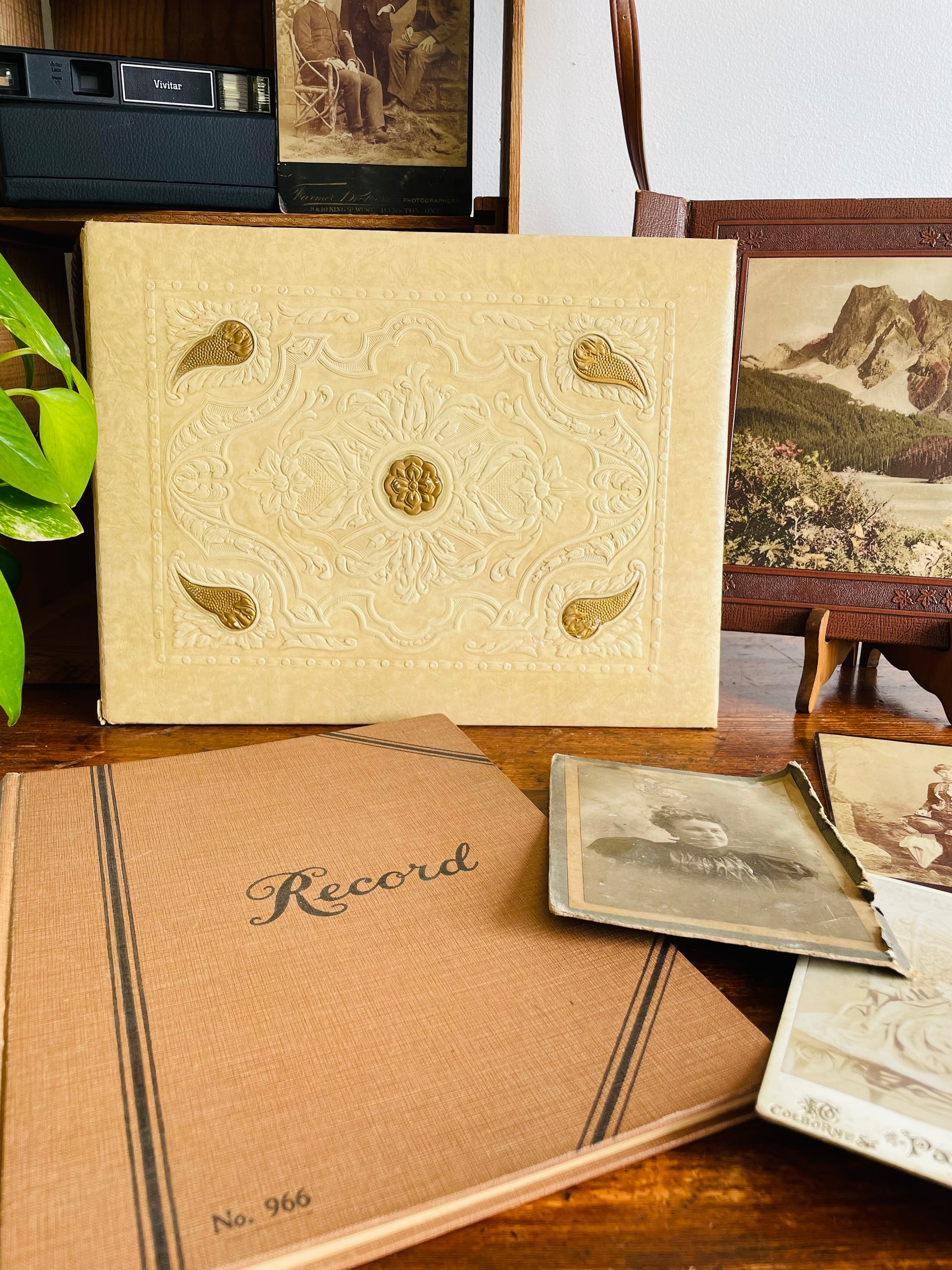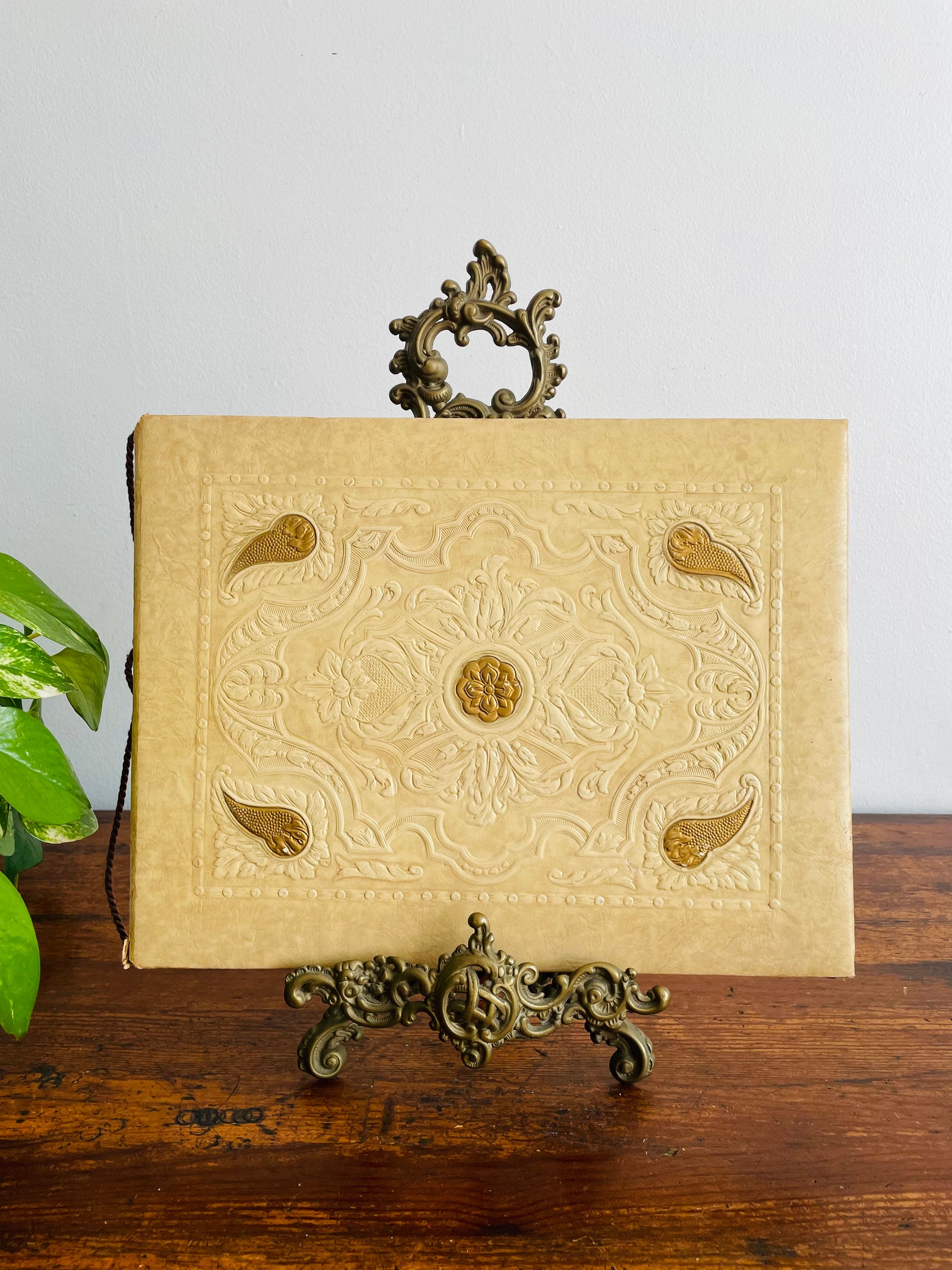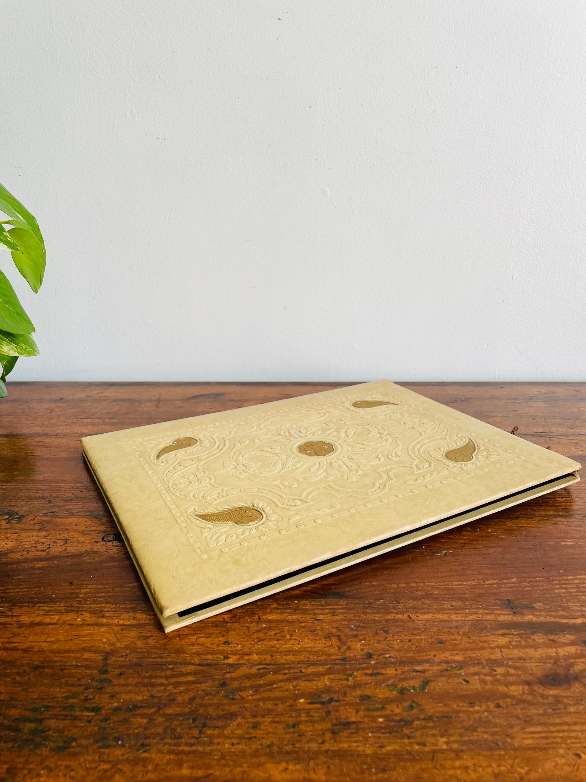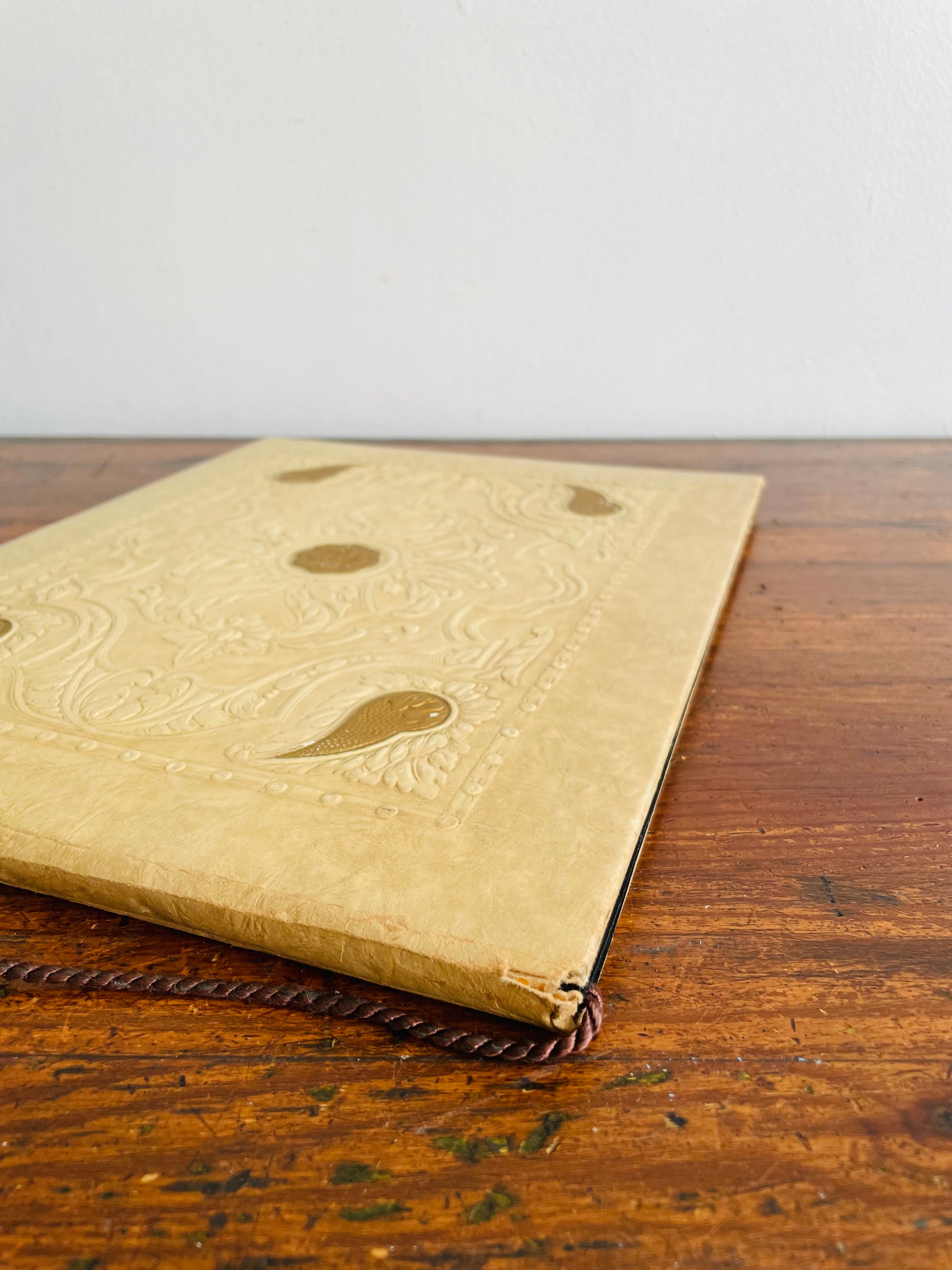 Antique Photo Album or Scrapbook - Cream with Gold Flowers & Filigree - Black Pages - Empty