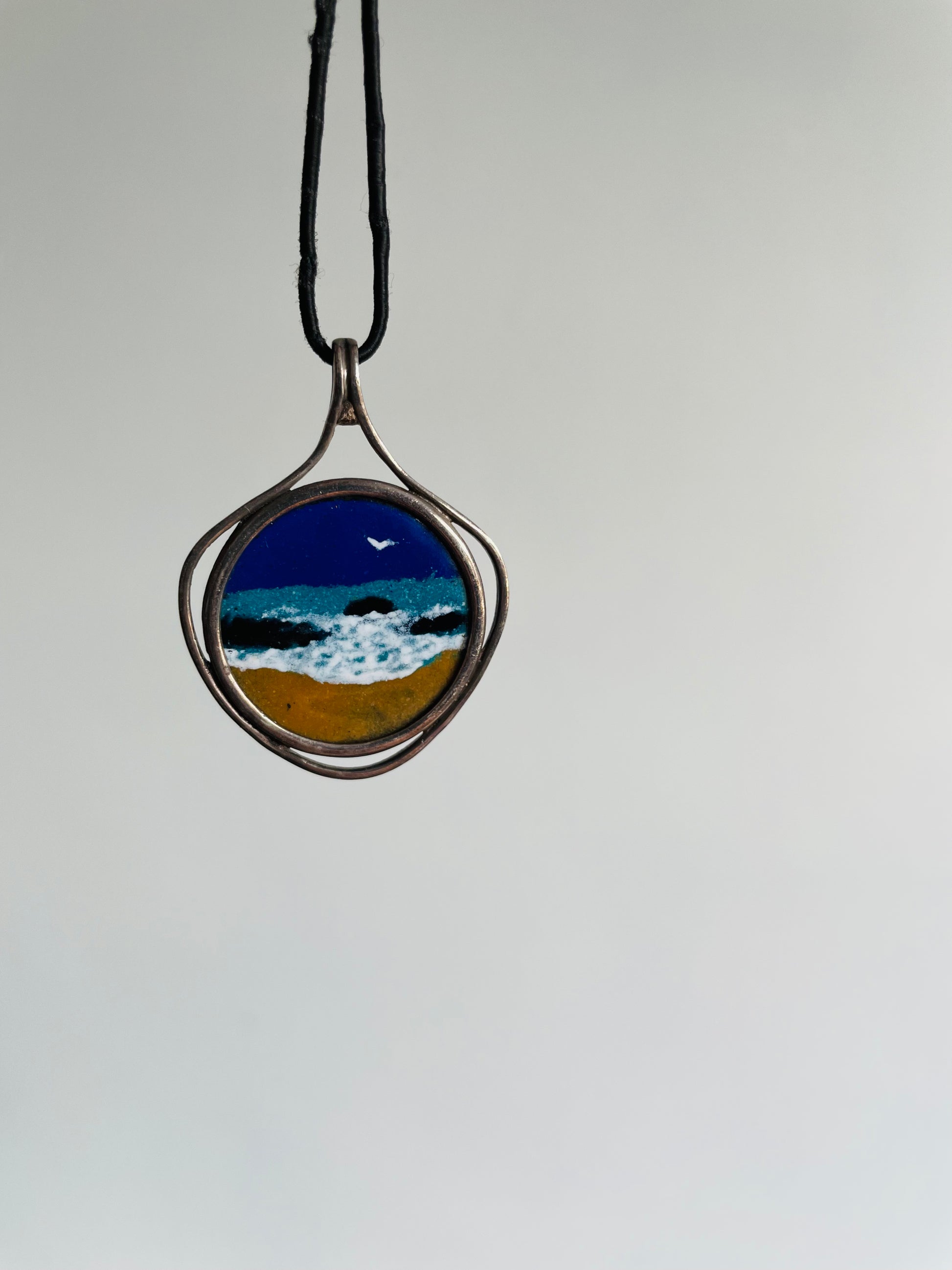 Barbados 25 Cent Coin Necklace - Hand Painted with Ocean Beach Scene