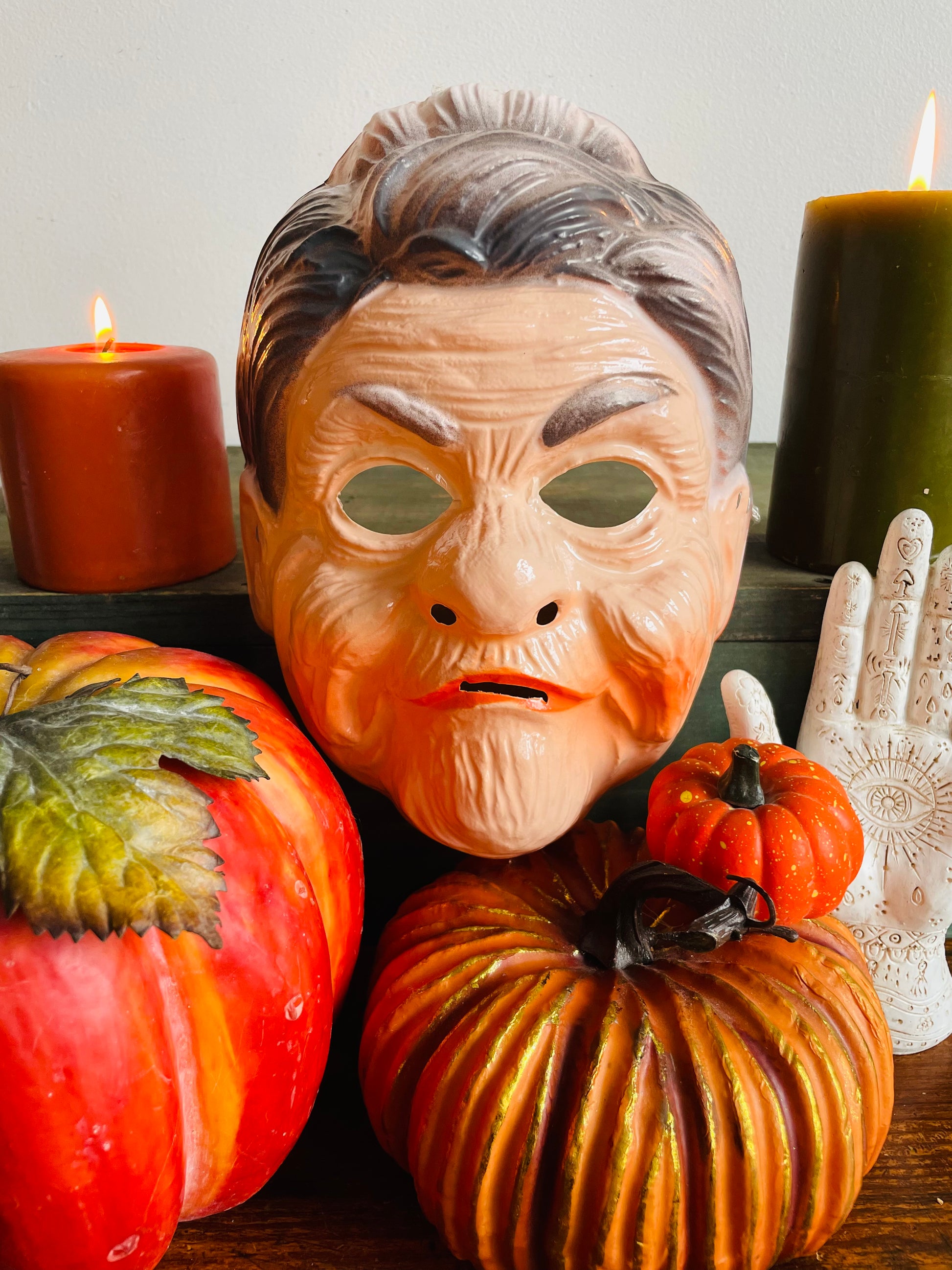 Ben Cooper Inc. Old Woman Plastic Halloween Mask - Made in Hong Kong