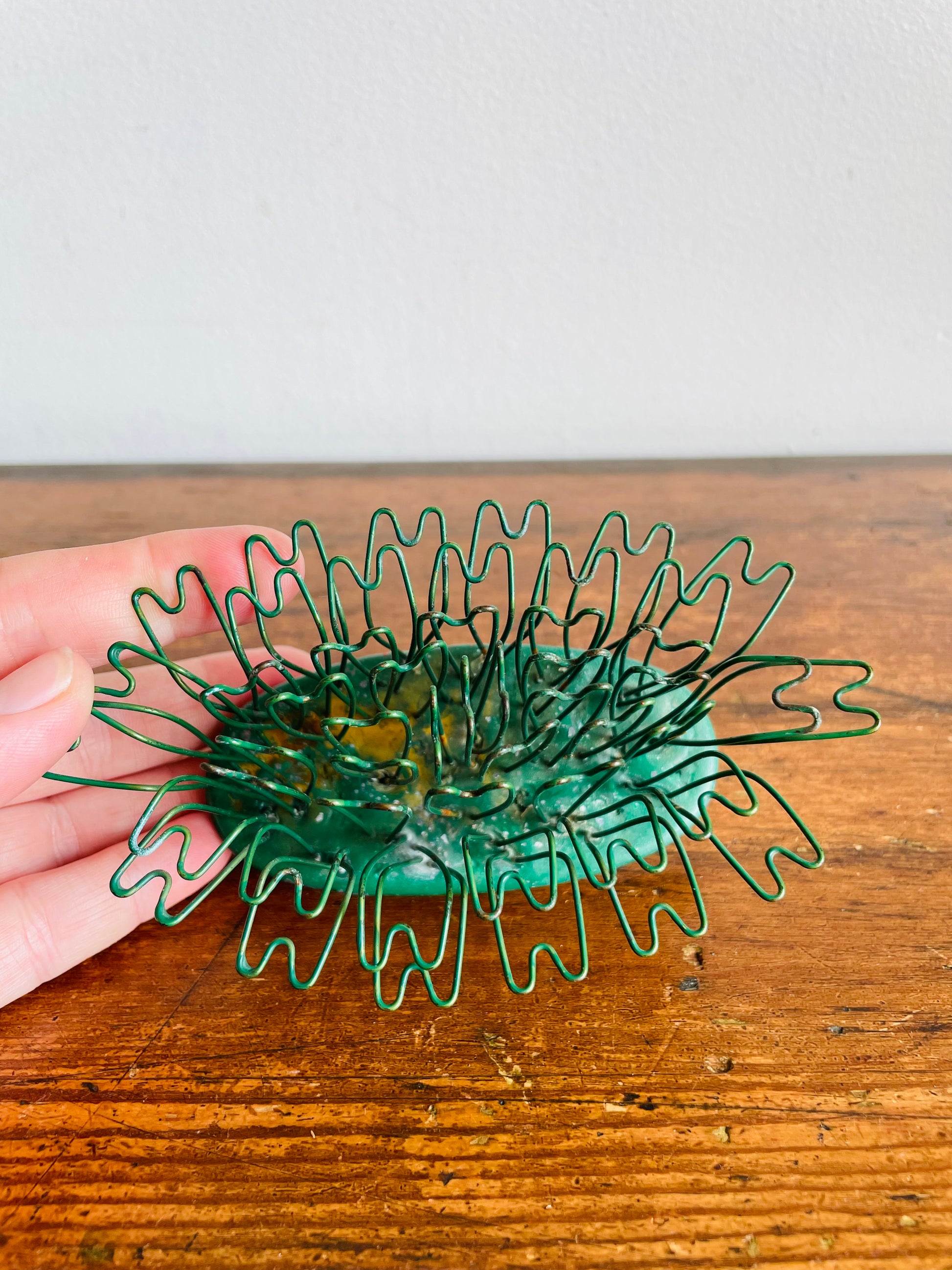 Blue Ribbon Flower Holder Cuyahoga Falls Ohio Green Metal Hairpin Flower Frog #4 - Also Holds Photos, Memos, Etc.
