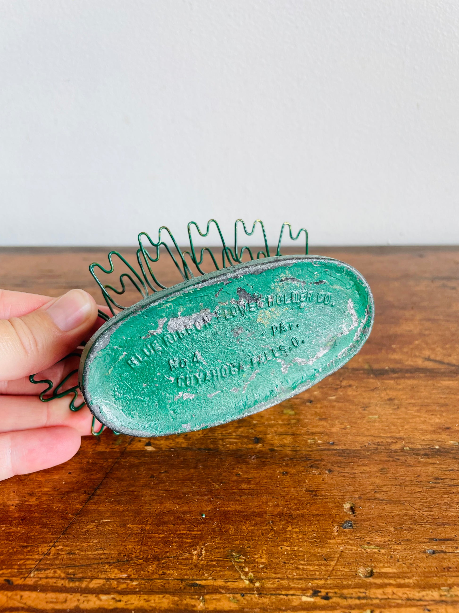 Stamped on the bottom: Blue Ribbon Flower Holder Co. No. 4 Cuyahoga Falls .O. (Ohio)
