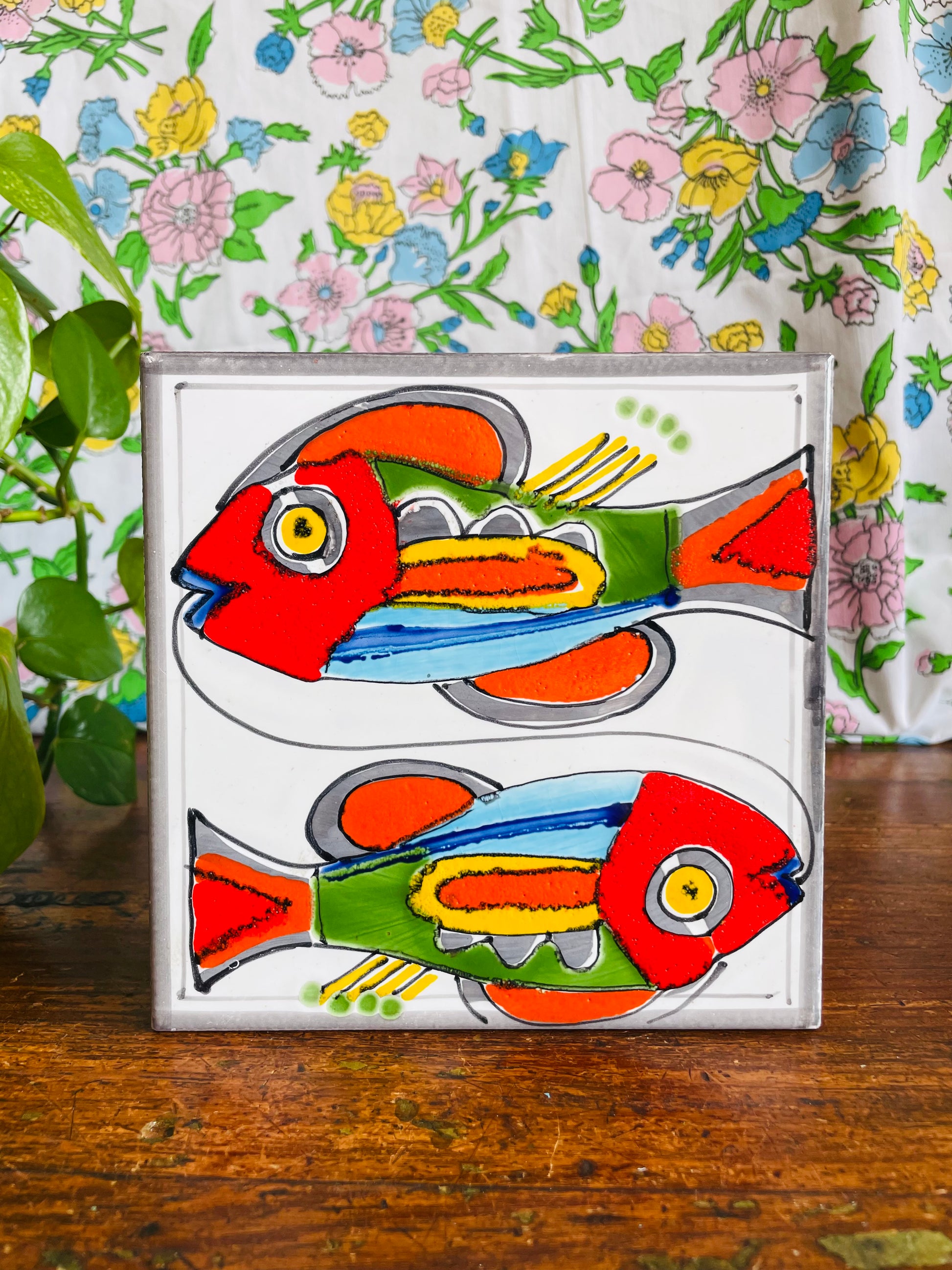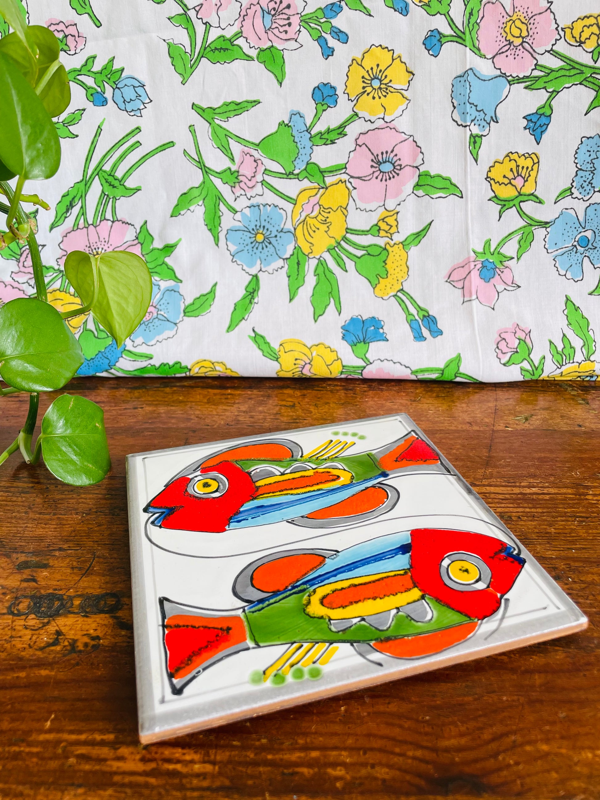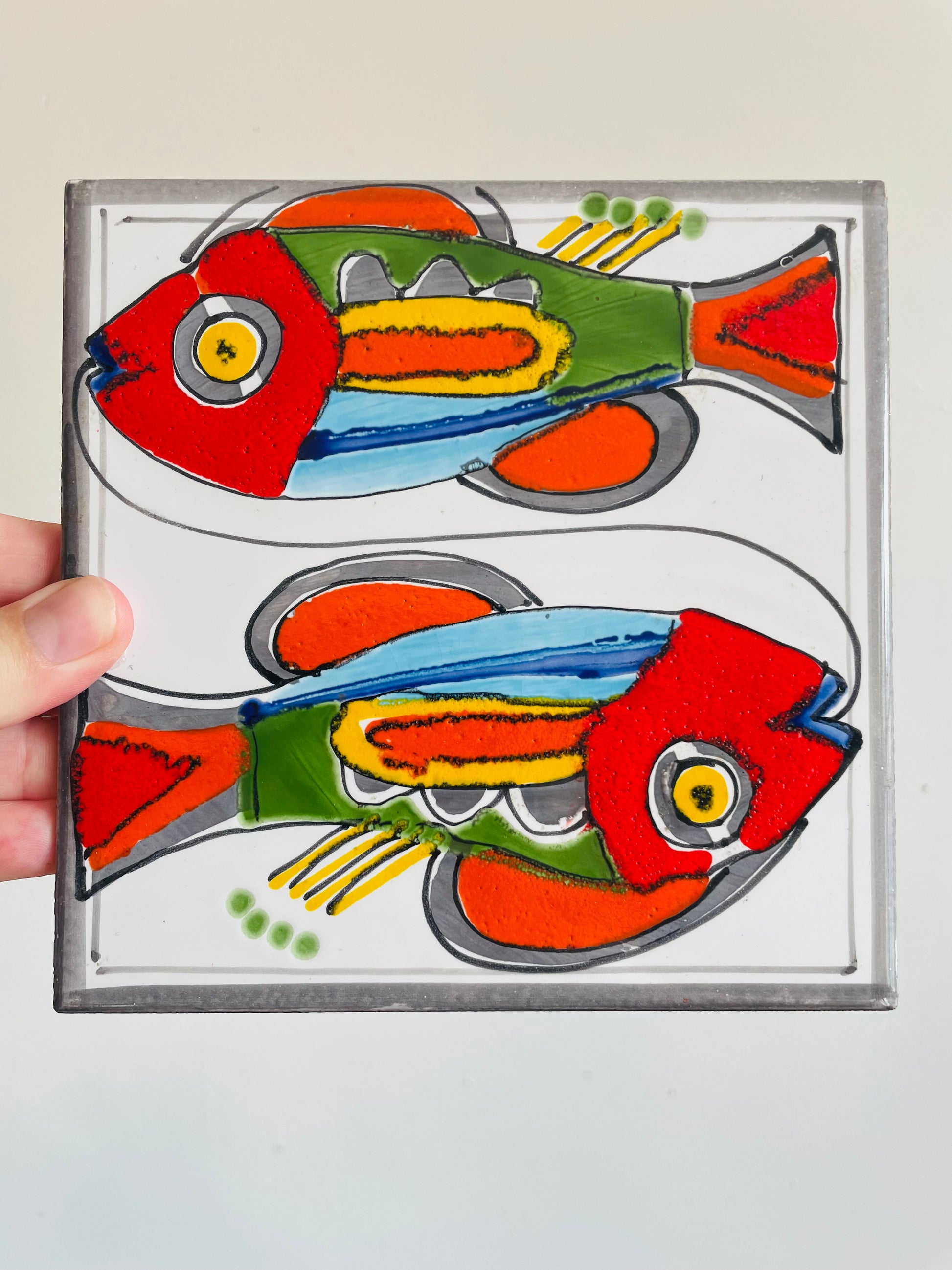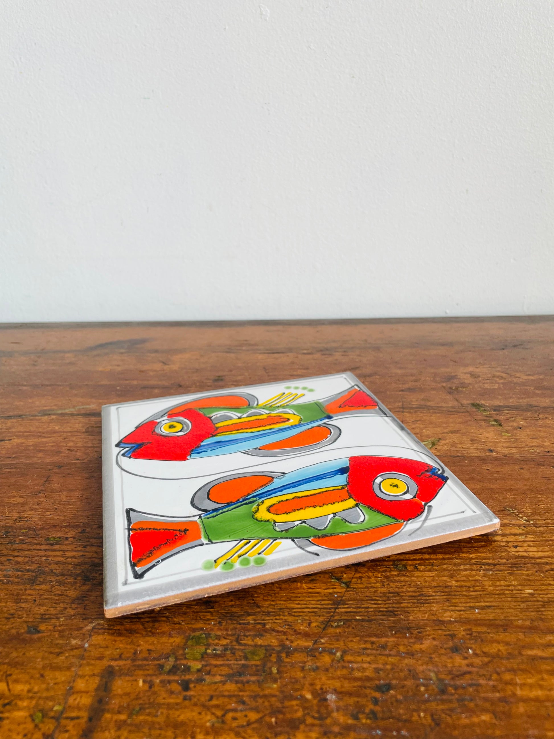 Cannara Tile Trivet with Bright Hand Painted Pisces Zodiac Fish Design - Made in Italy