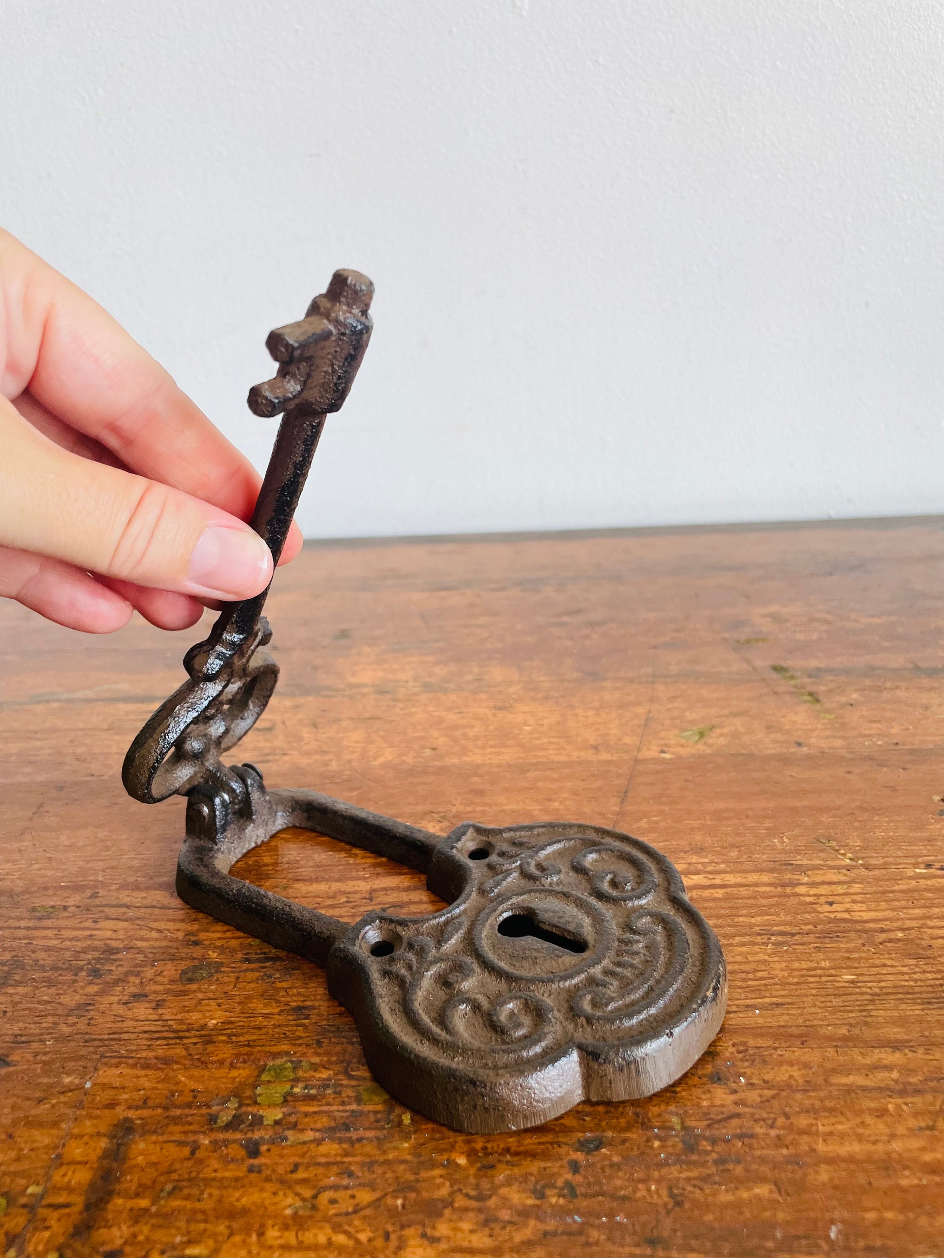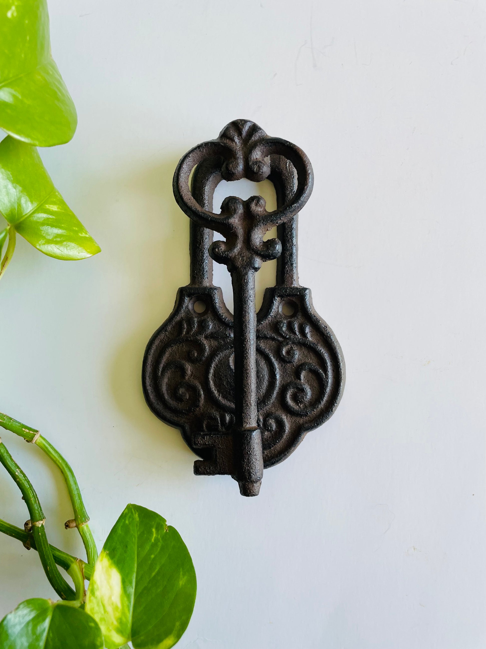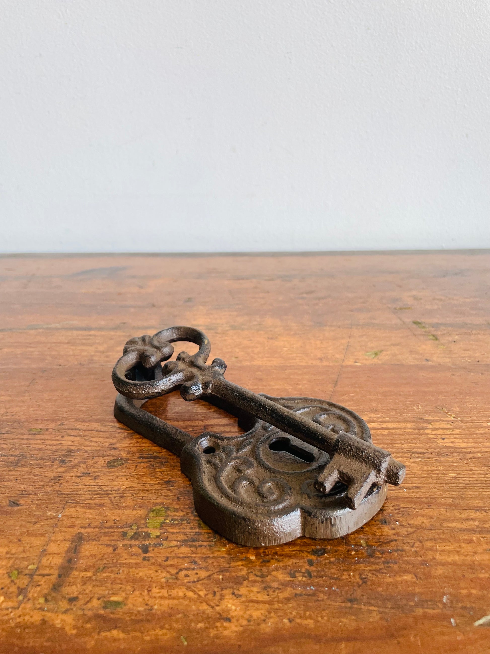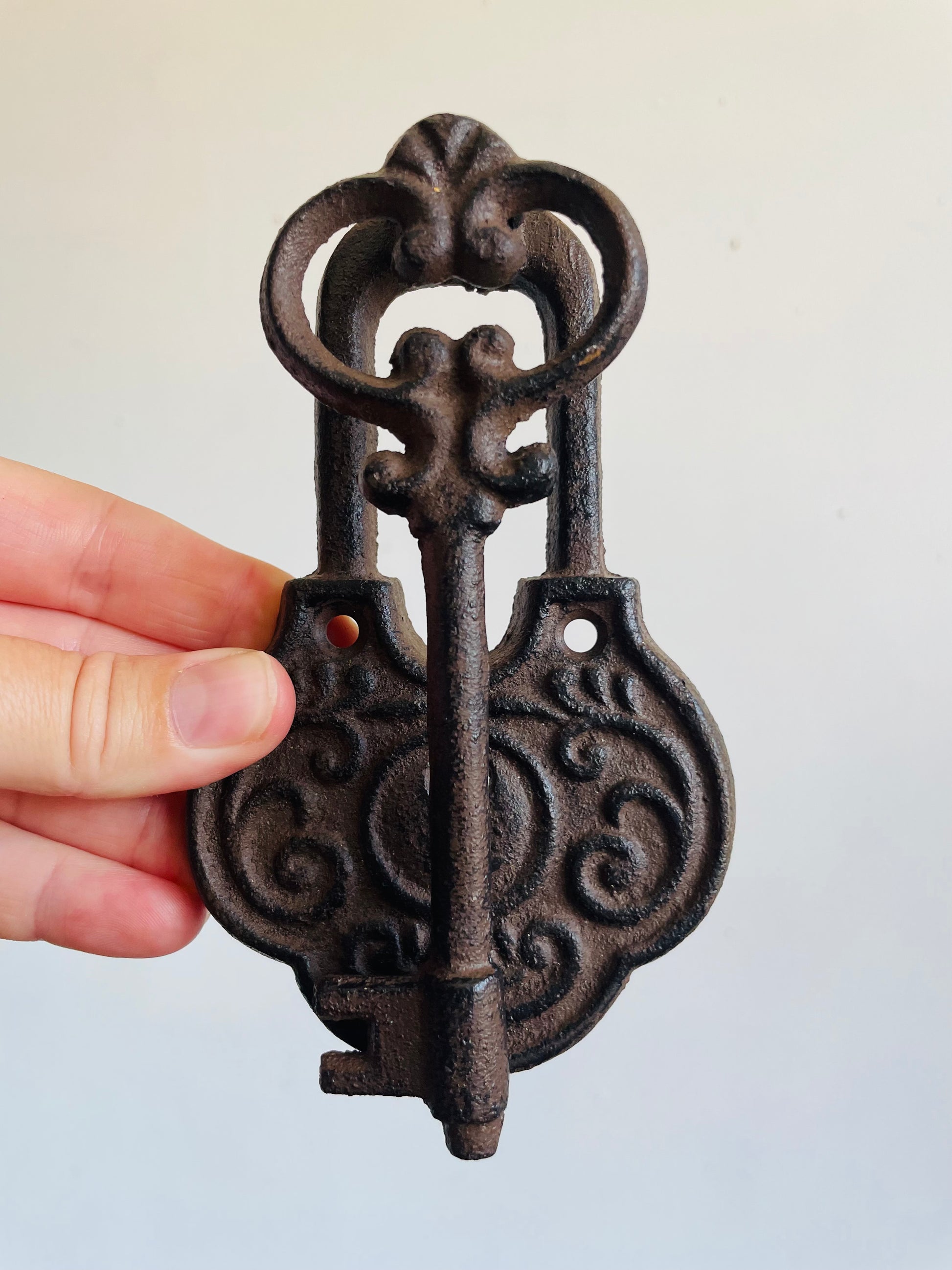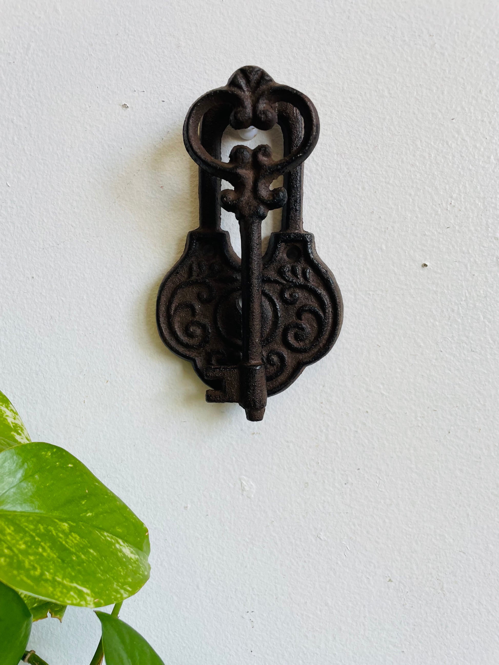 Cast Iron Door Knocker Shaped Like an Ornate Lock & Skeleton Key