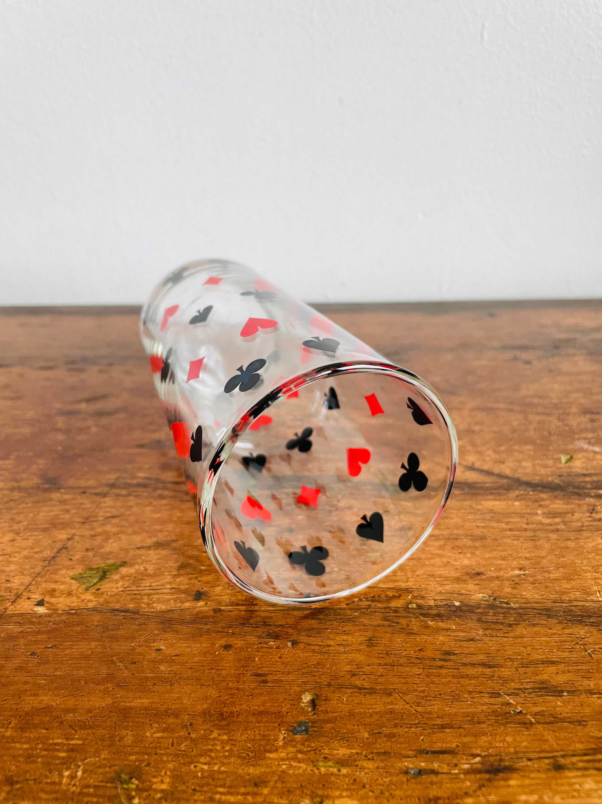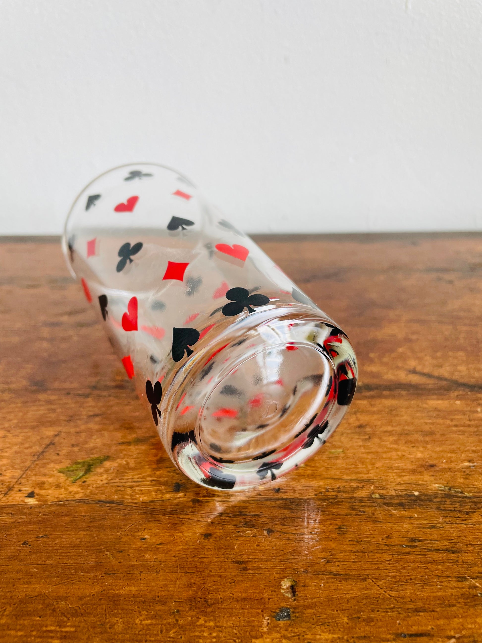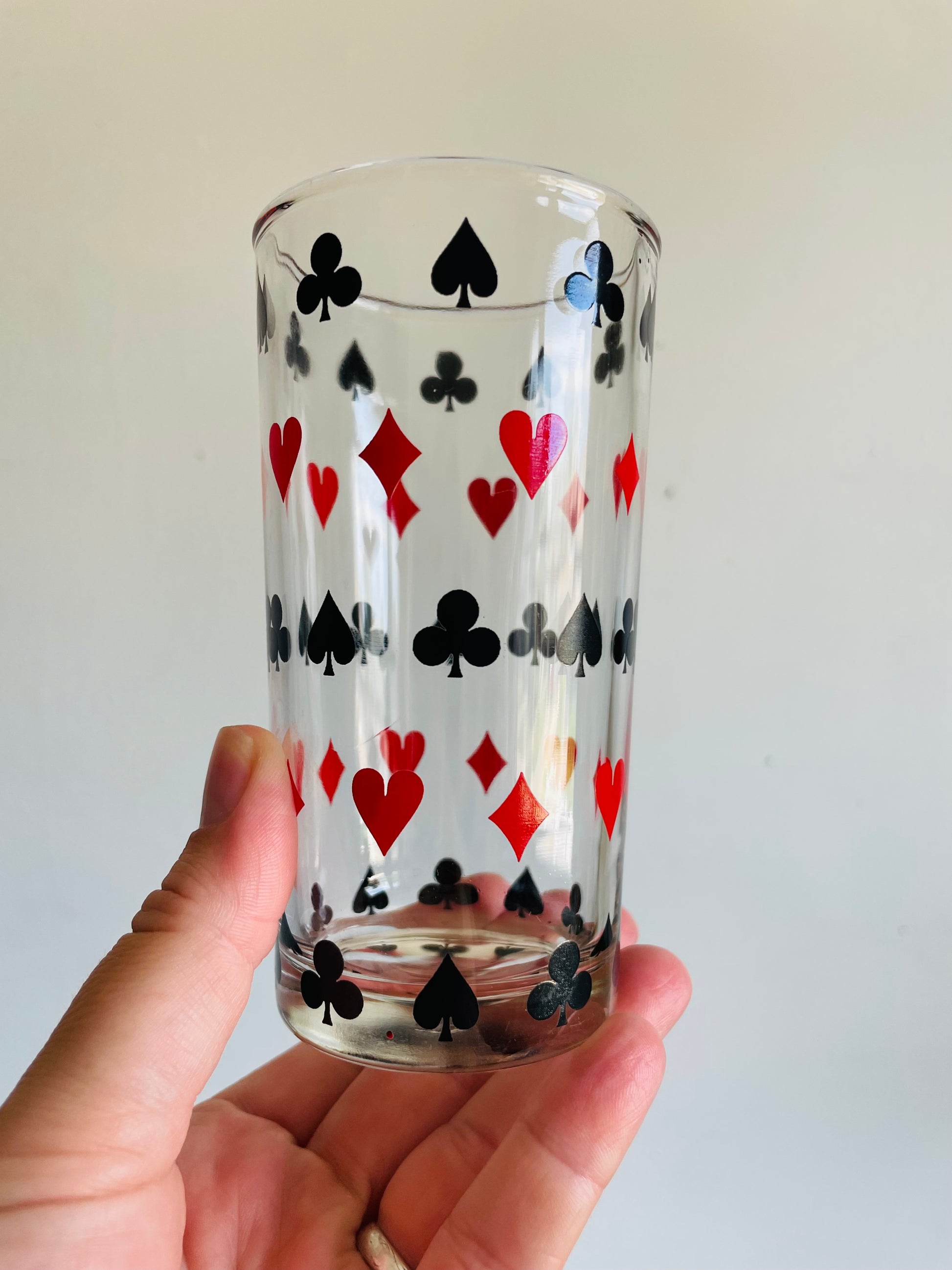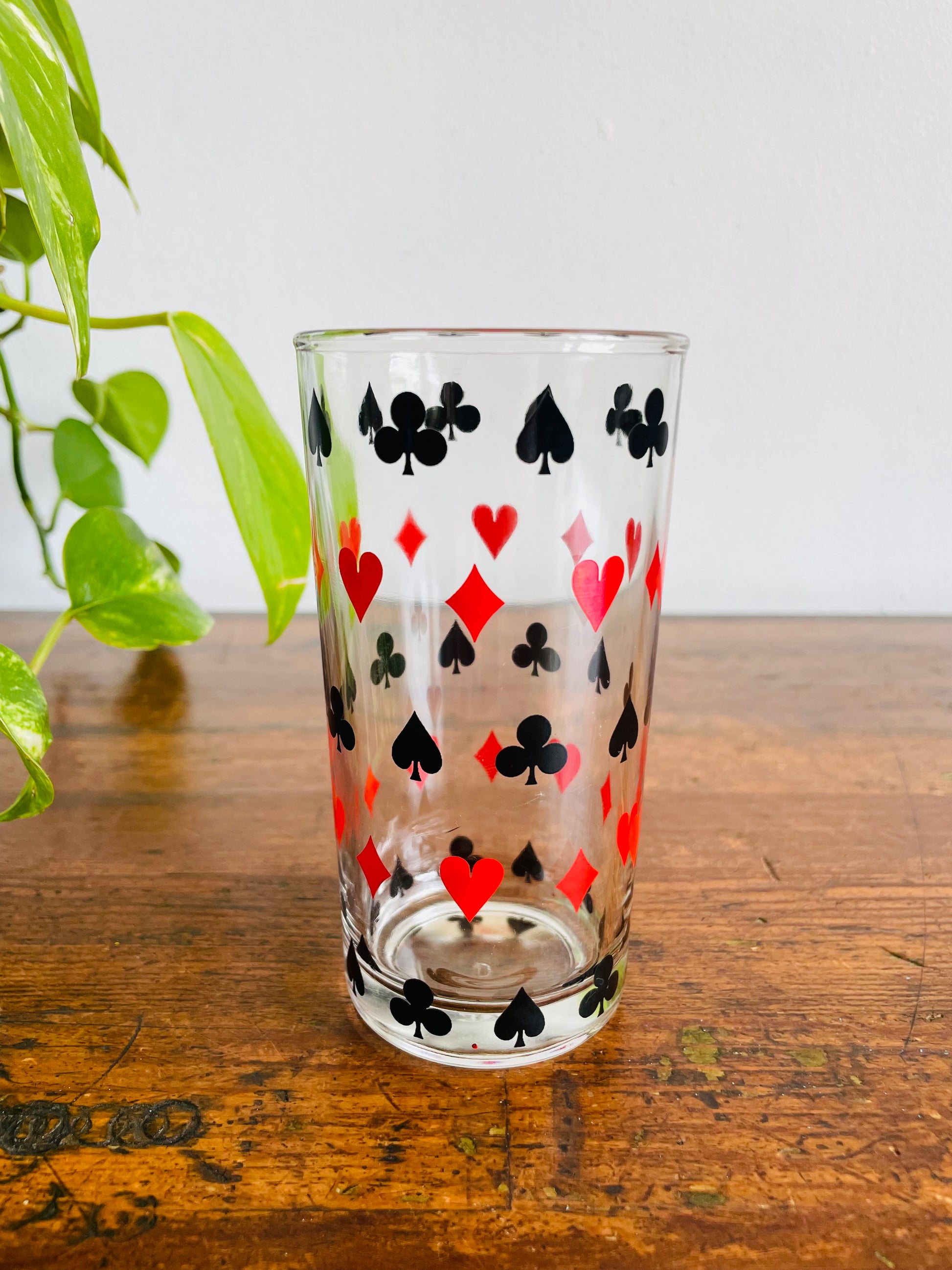 Schwartz Mustard Dominion Glass Canada Drinking Glass with Playing Card Suit Design - Hearts, Spades, Clubs & Diamonds