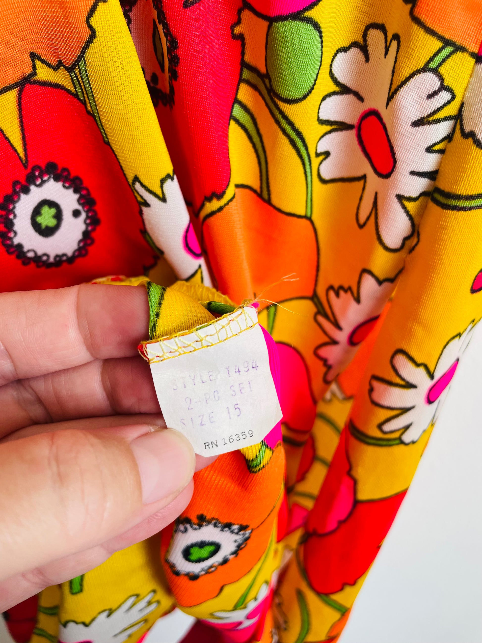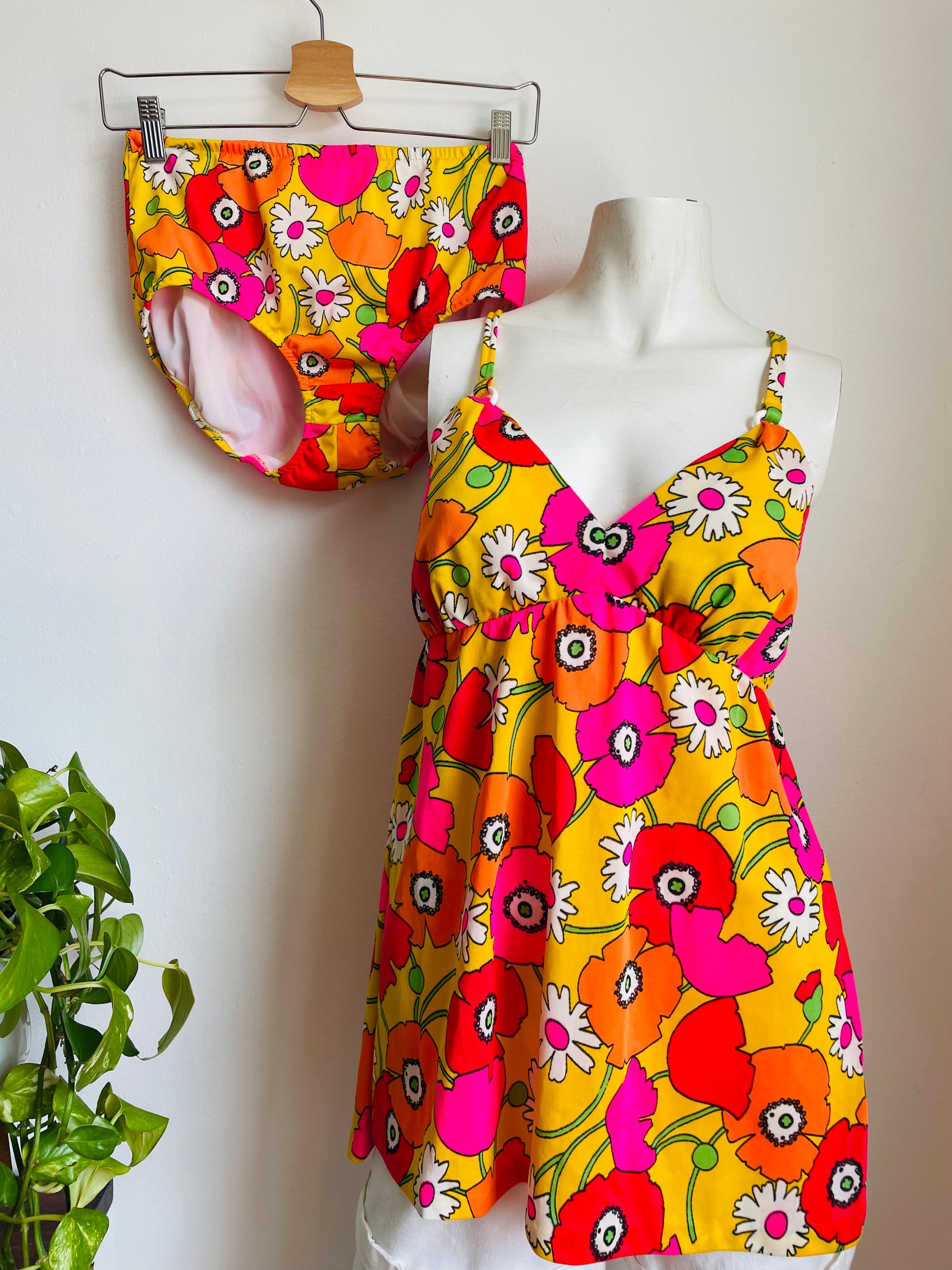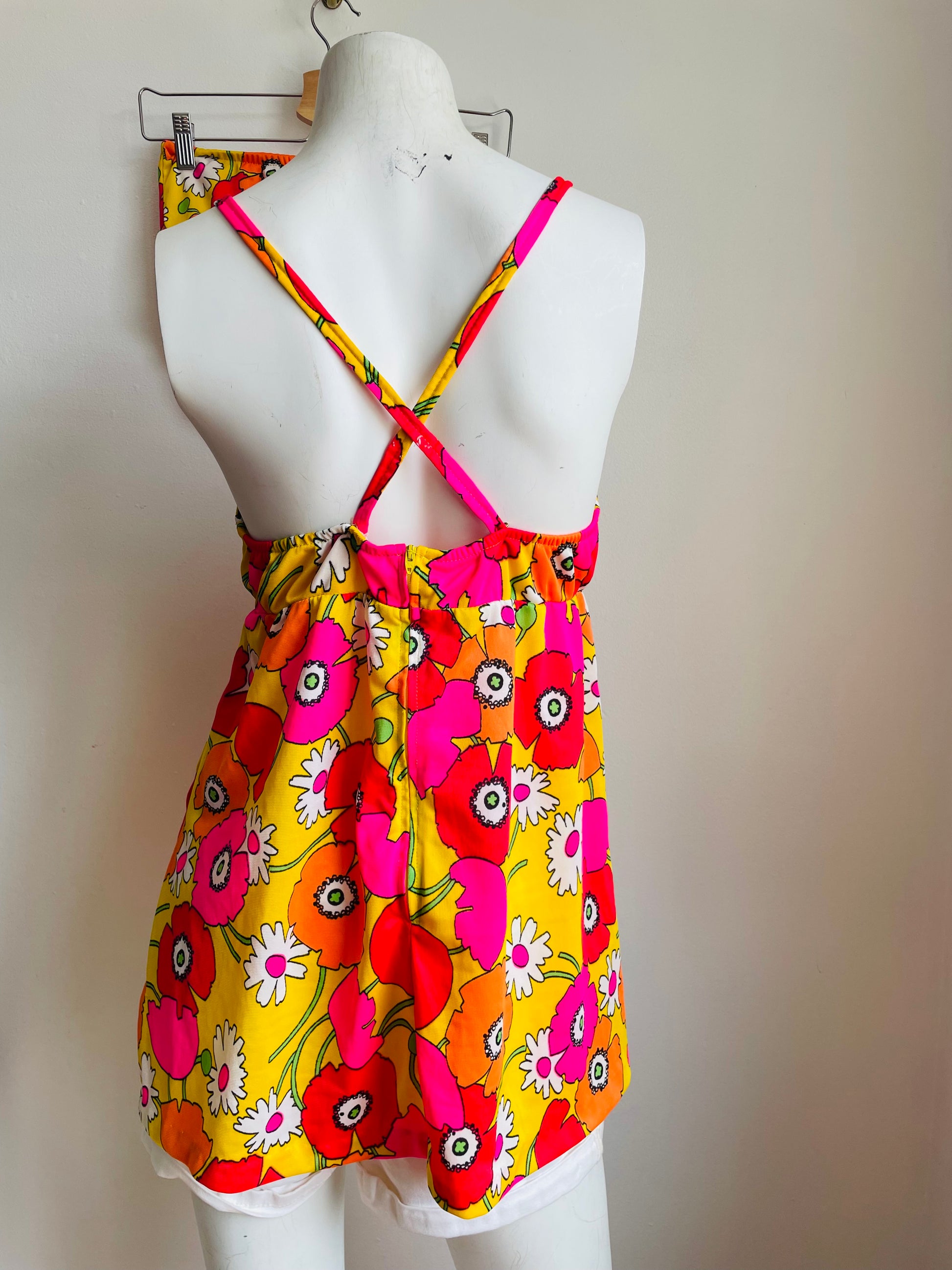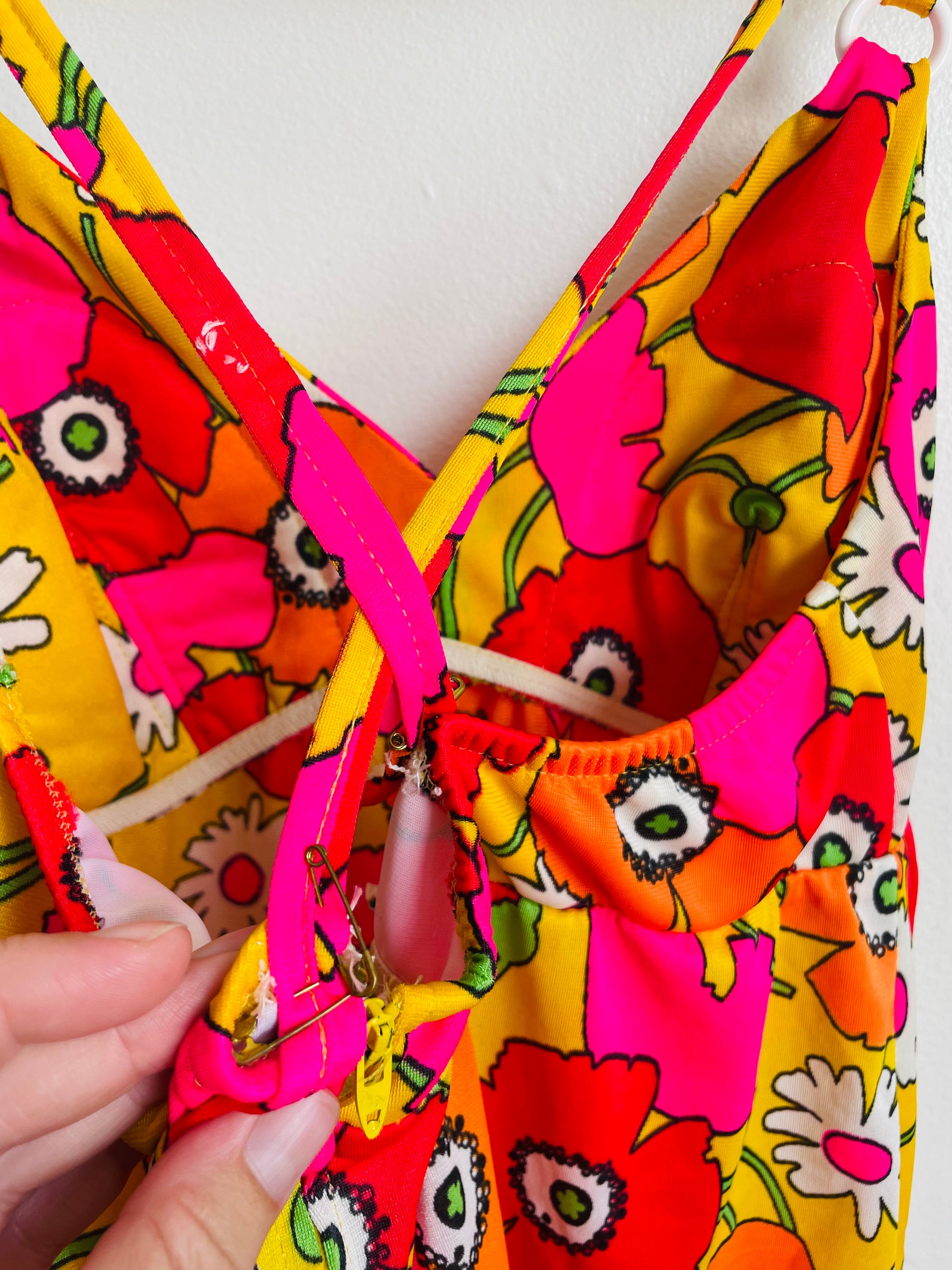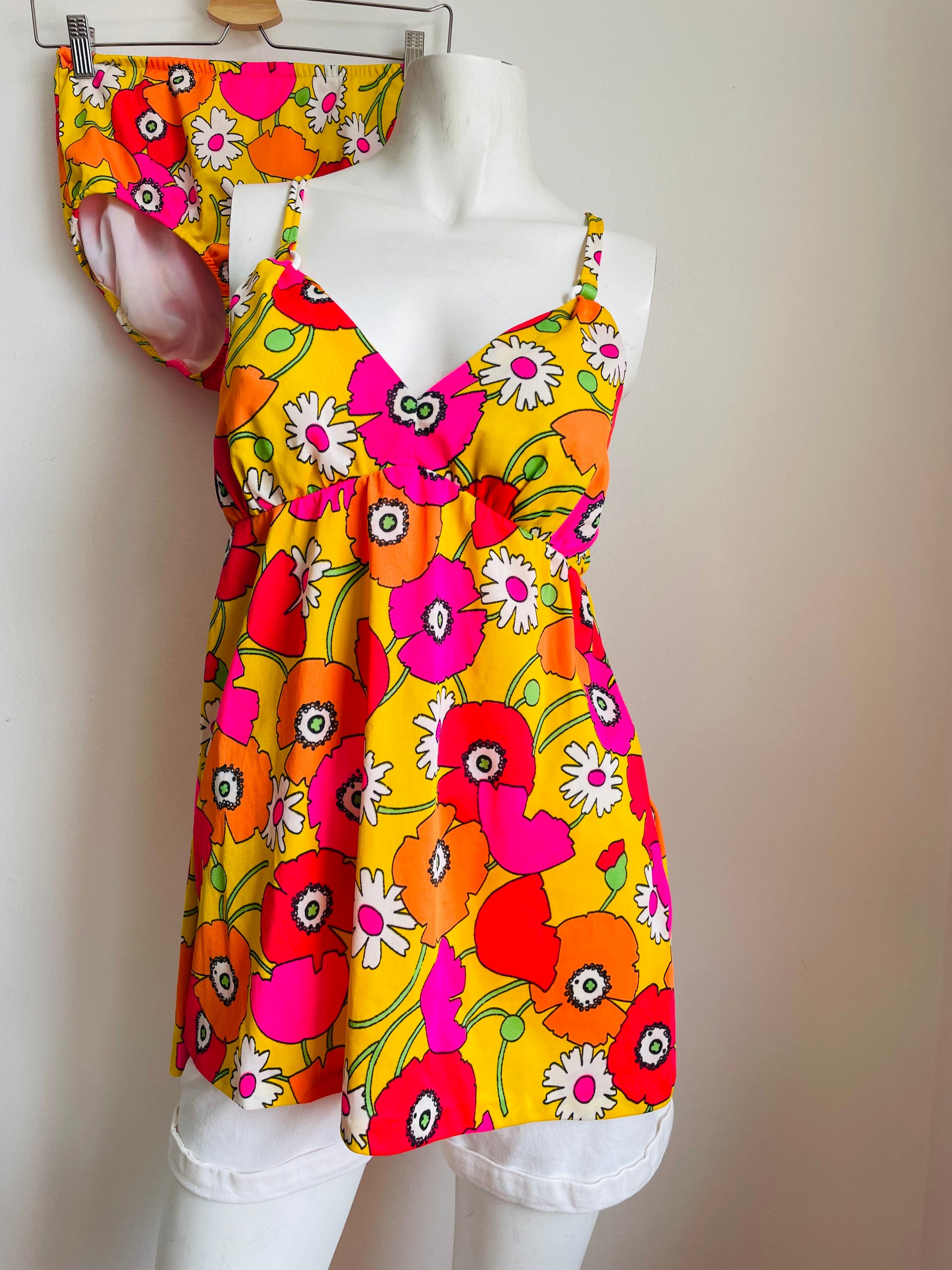Groovy Sears Junior Bazaar Two Piece Sun Lounge Set or Swimsuit with Bright Flower Pattern - Wear Separately or Together - Bottoms & Tank Top - Please Read