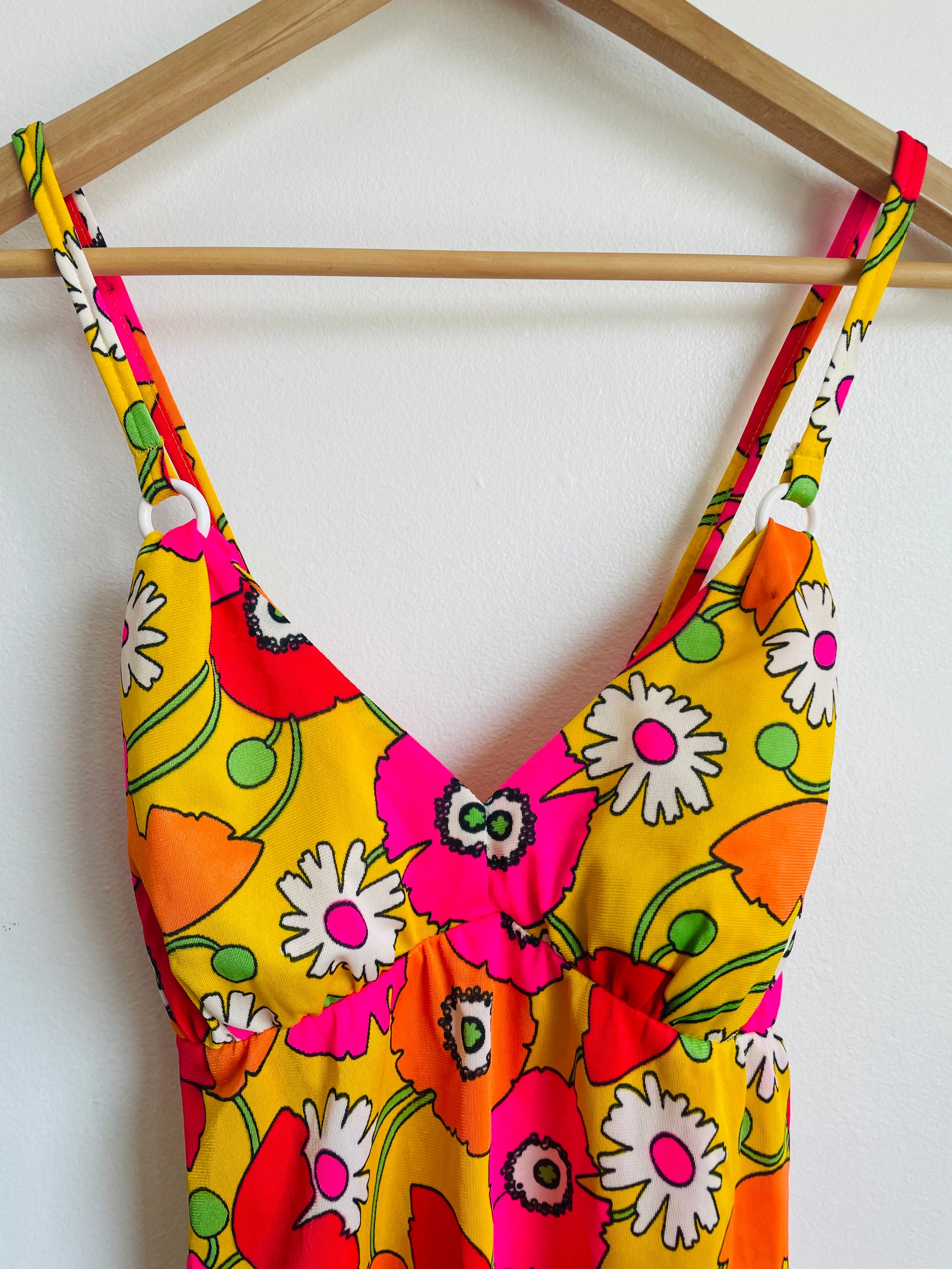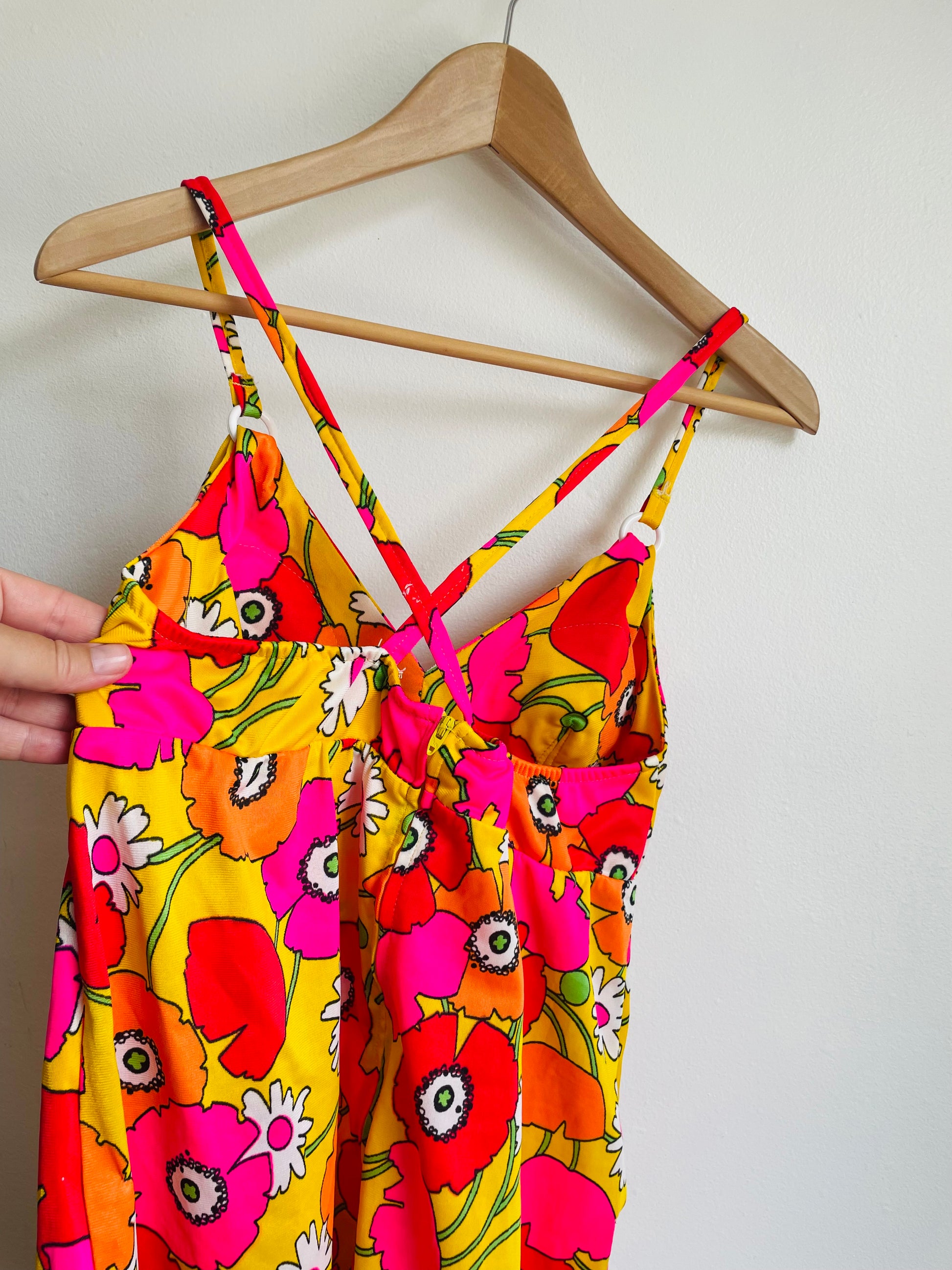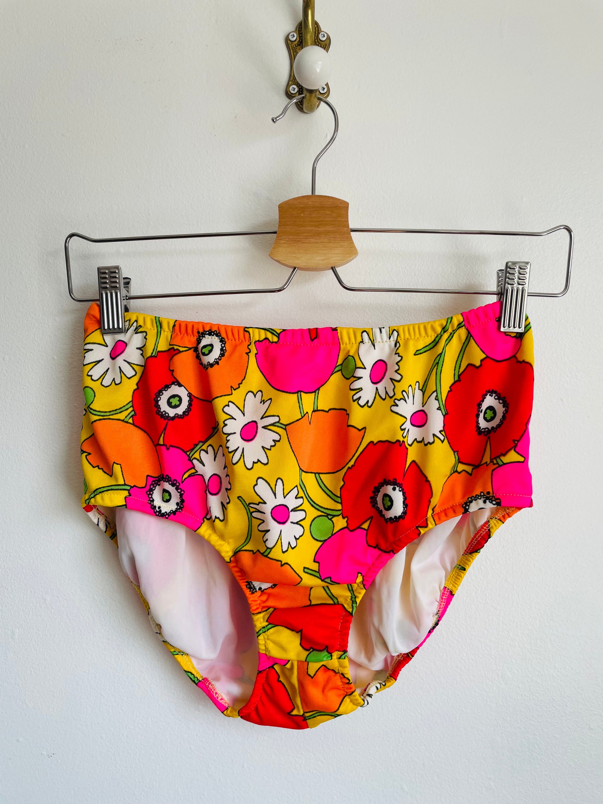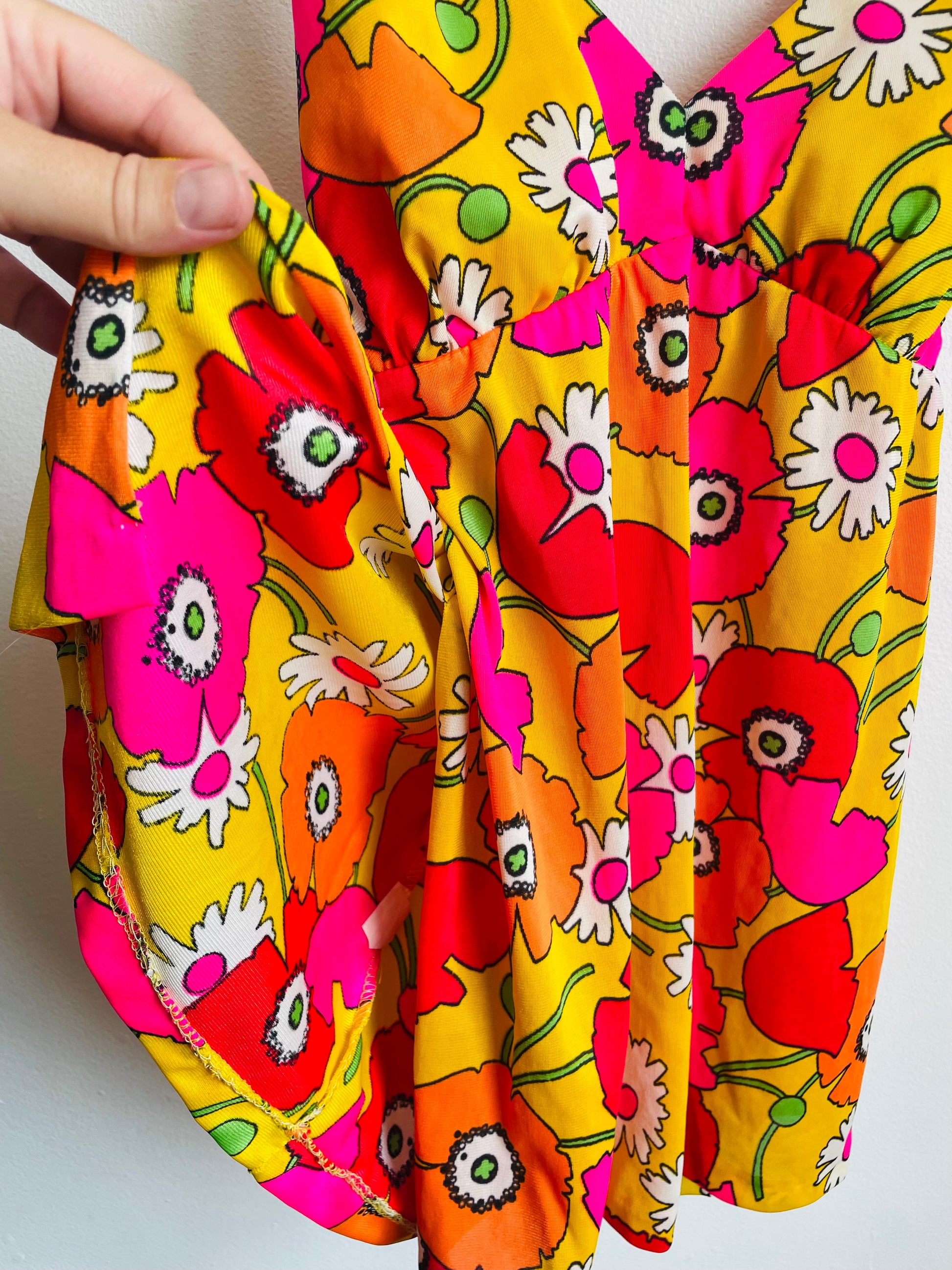 Groovy Sears Junior Bazaar Two Piece Sun Lounge Set or Swimsuit with Bright Flower Pattern - Wear Separately or Together - Bottoms & Tank Top - Please Read