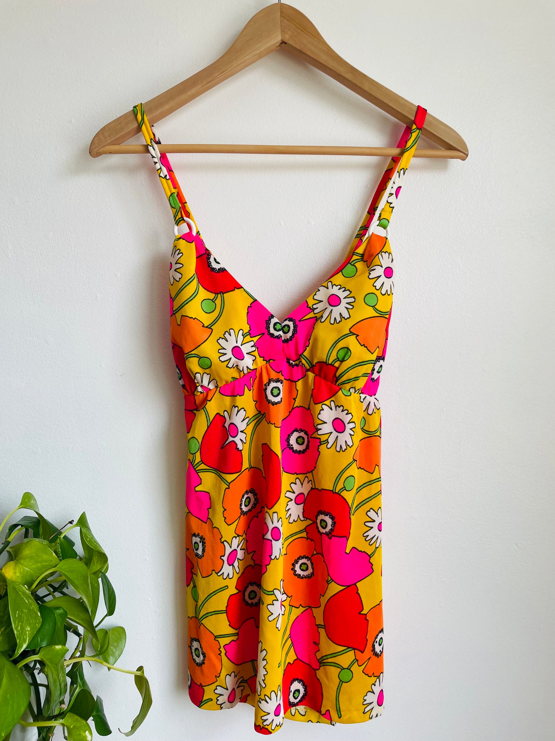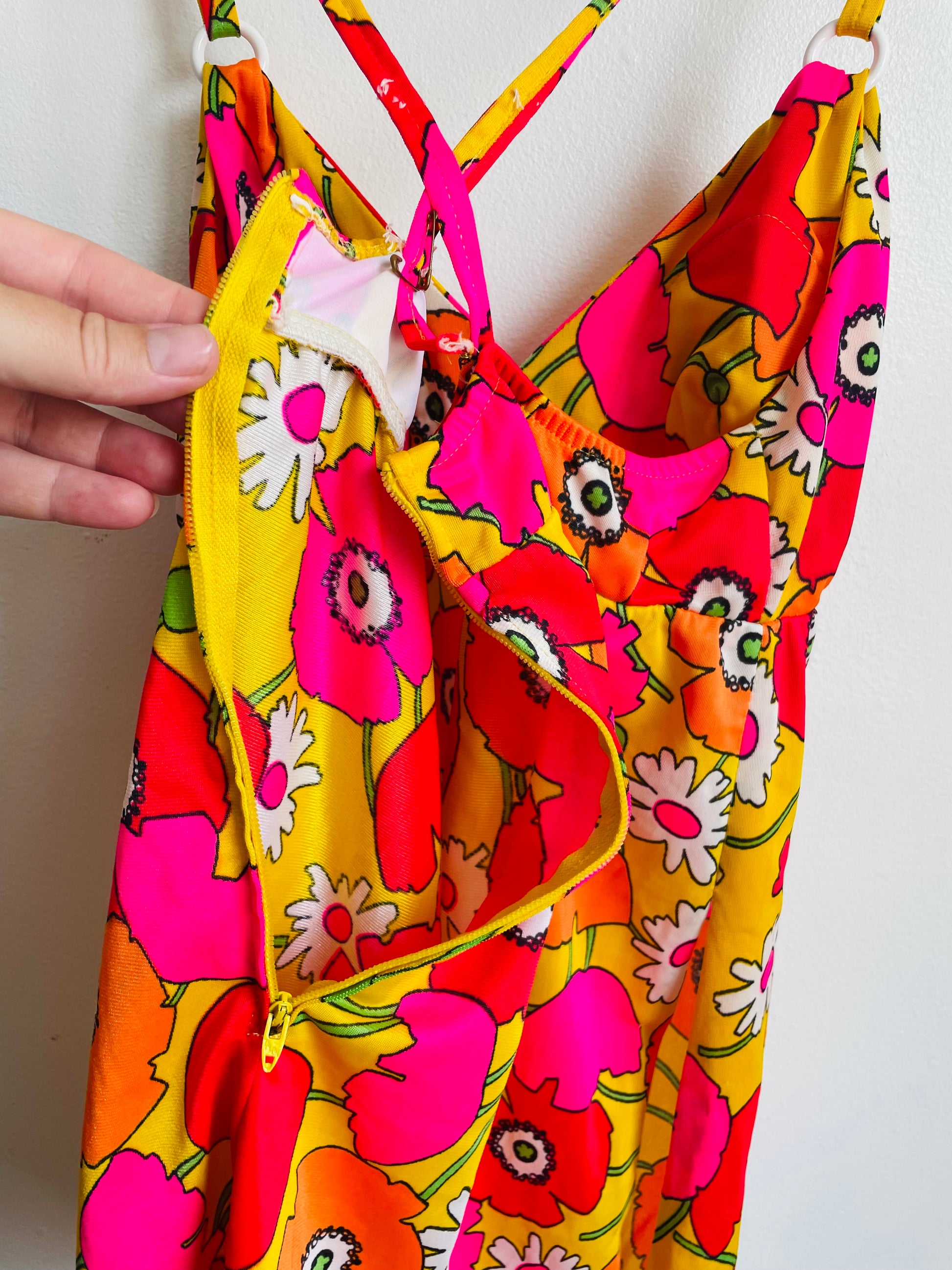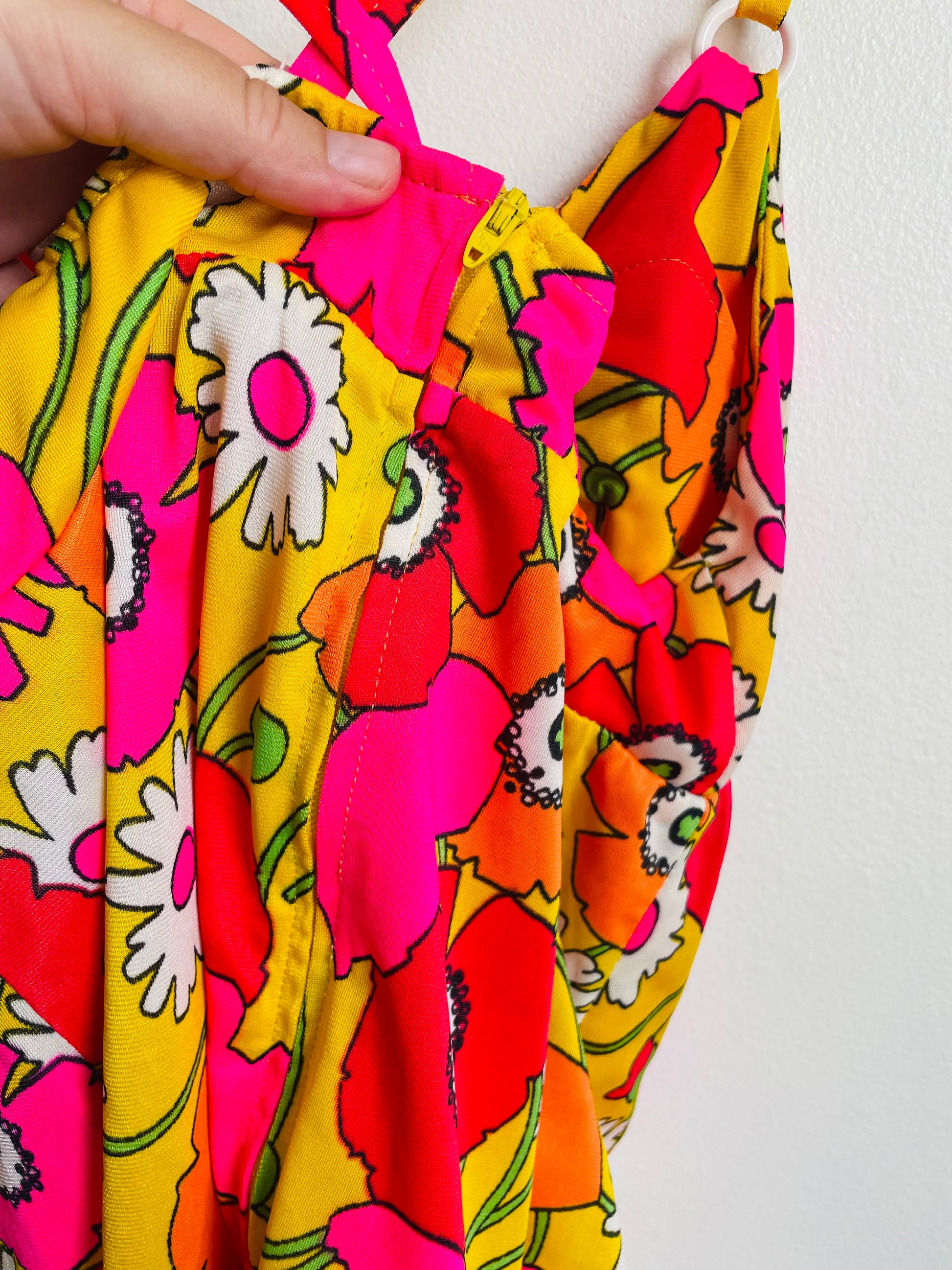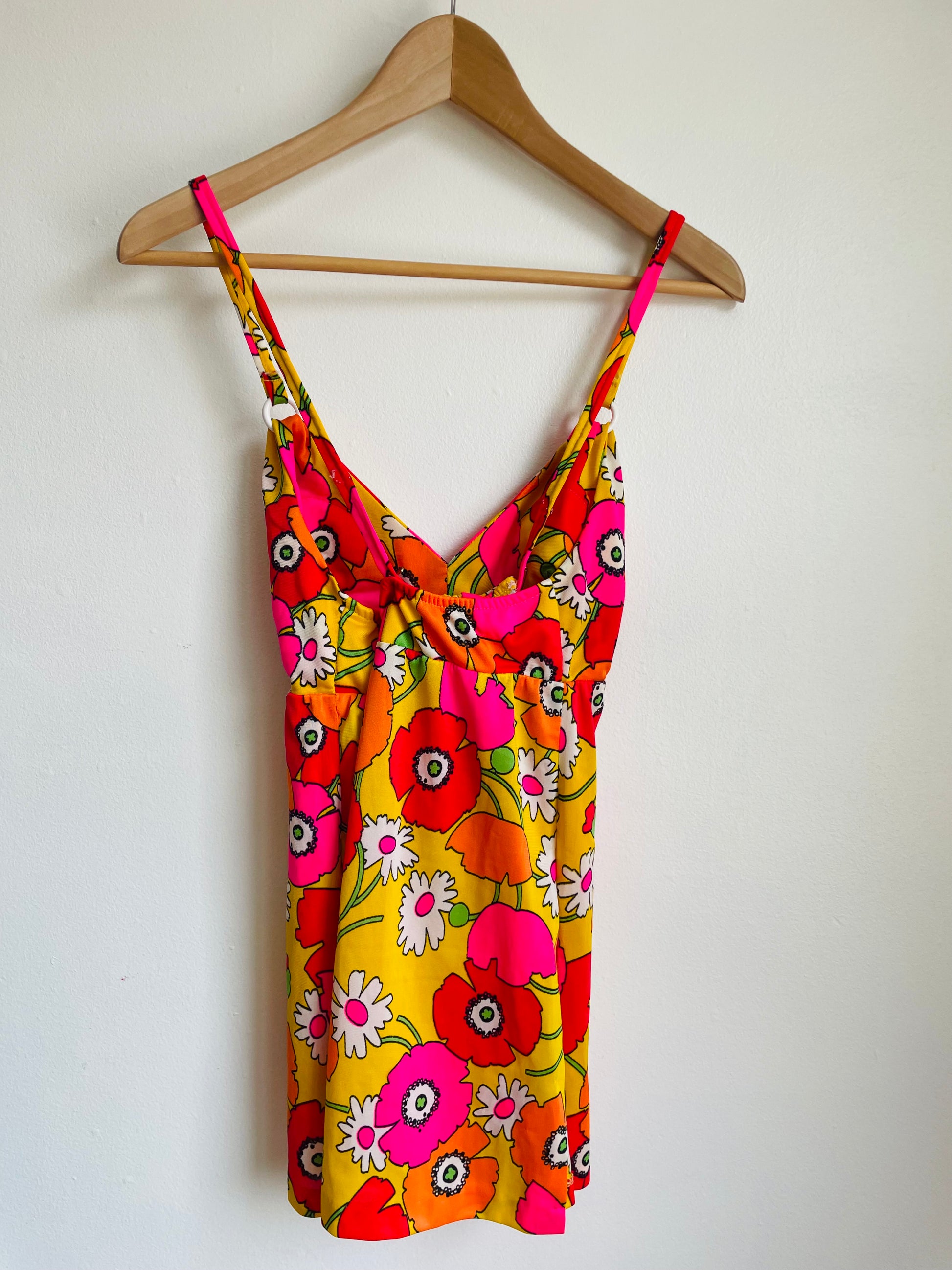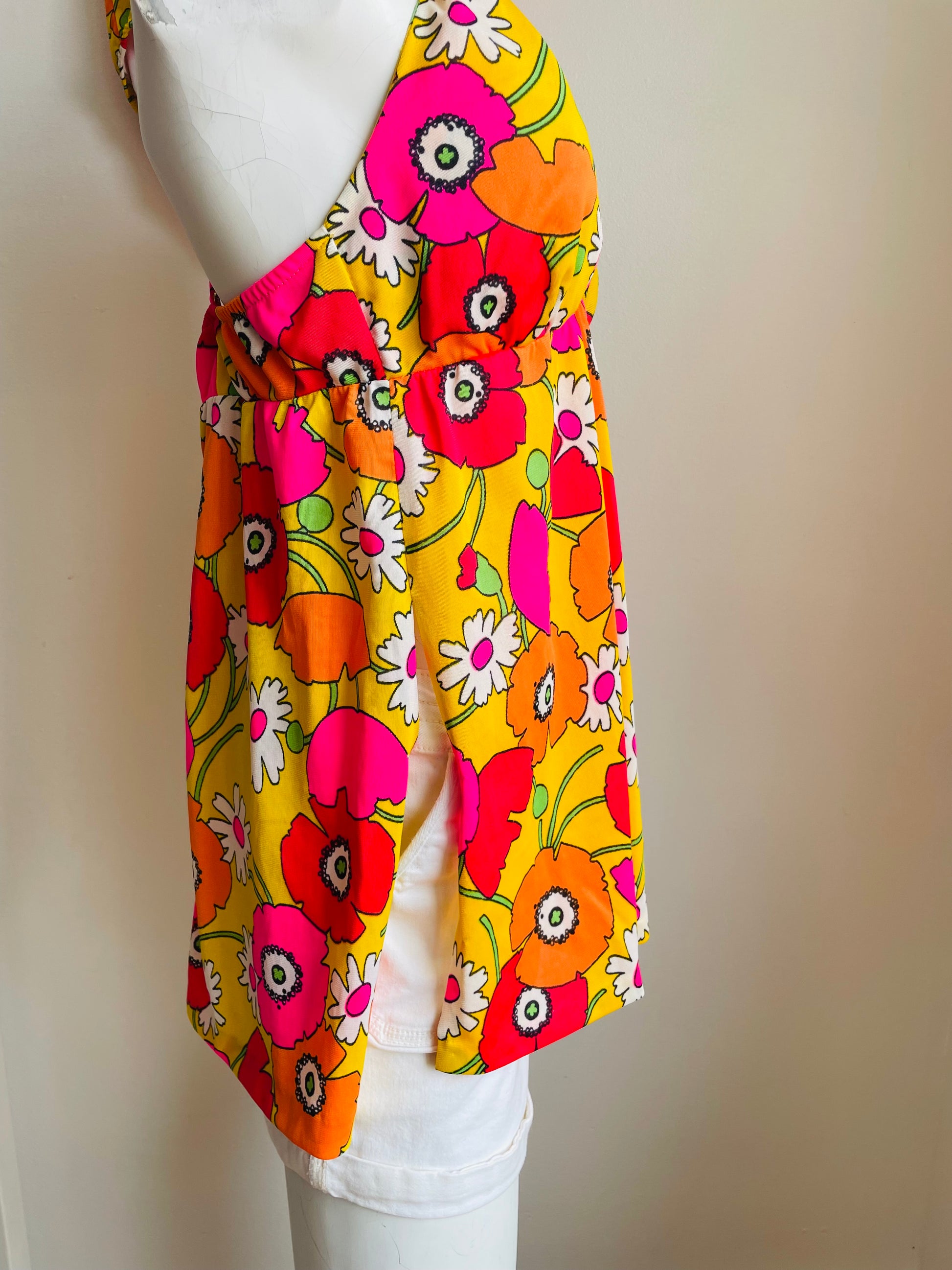 Groovy Sears Junior Bazaar Two Piece Sun Lounge Set or Swimsuit with Bright Flower Pattern - Wear Separately or Together - Bottoms & Tank Top - Please Read