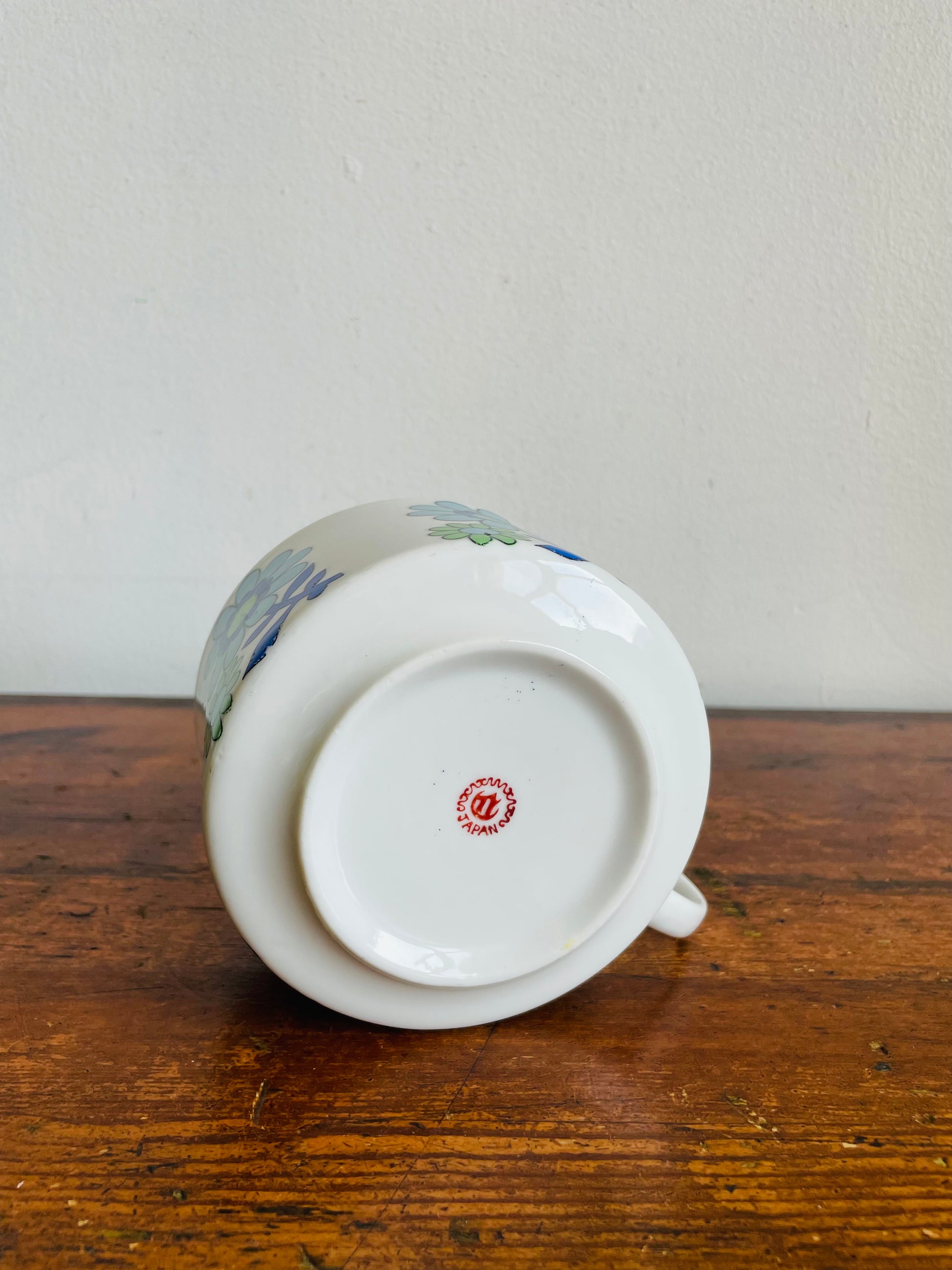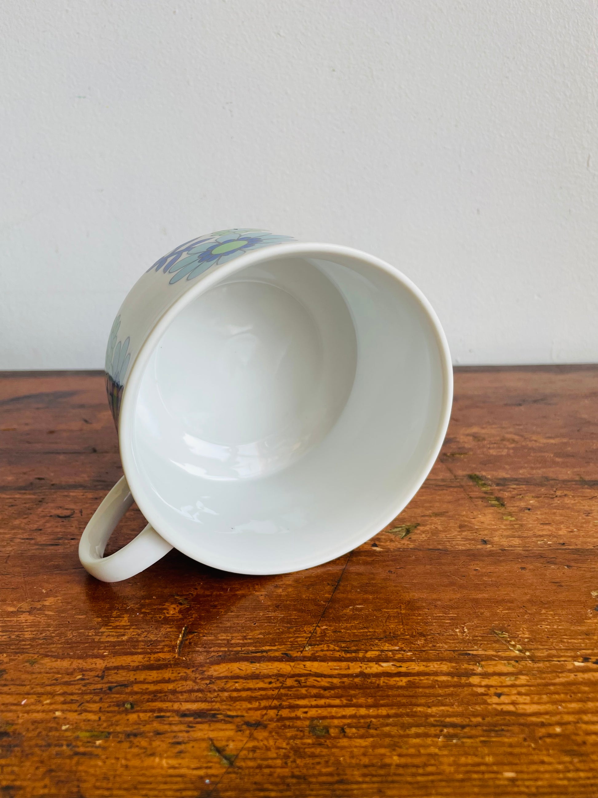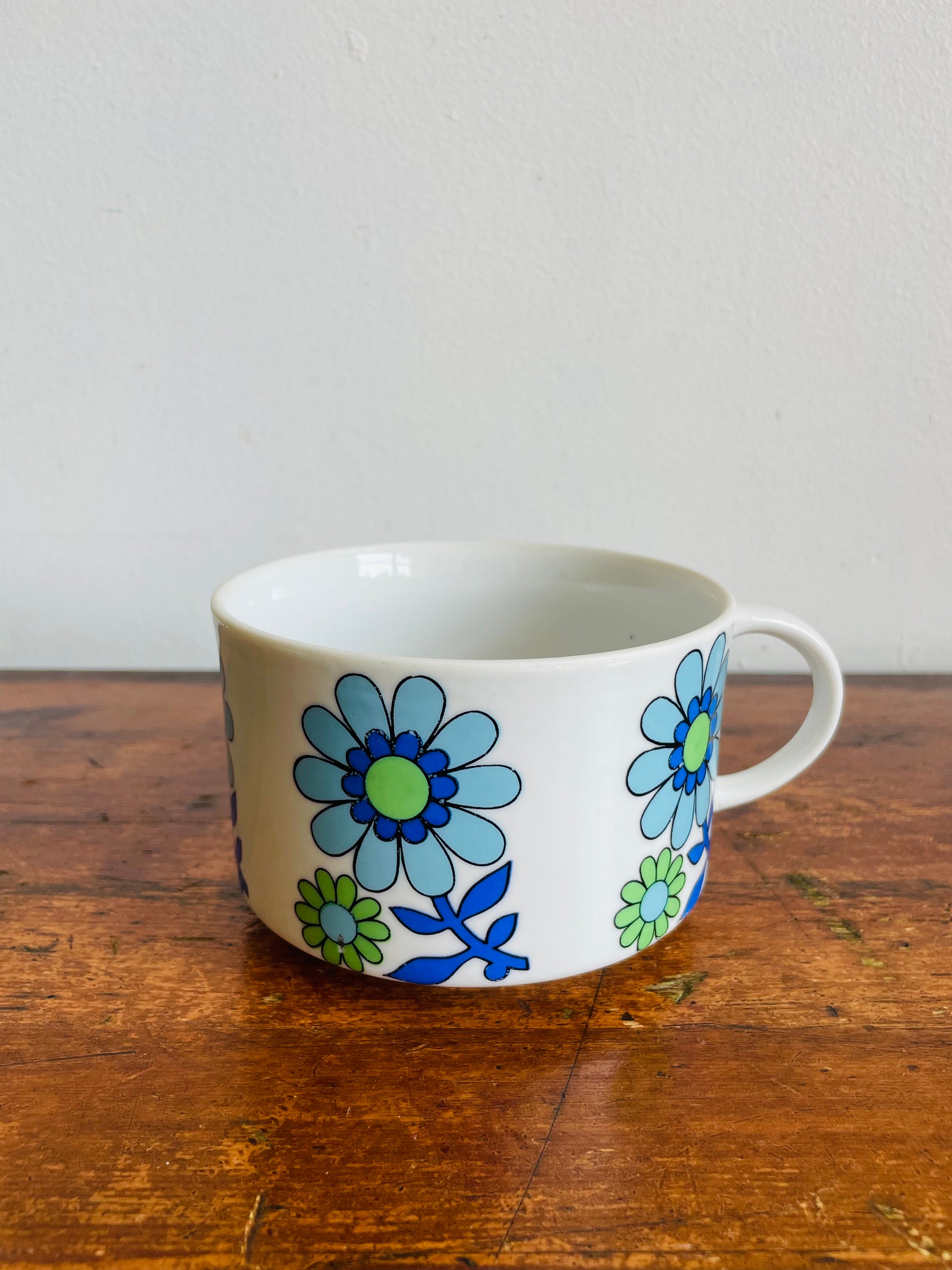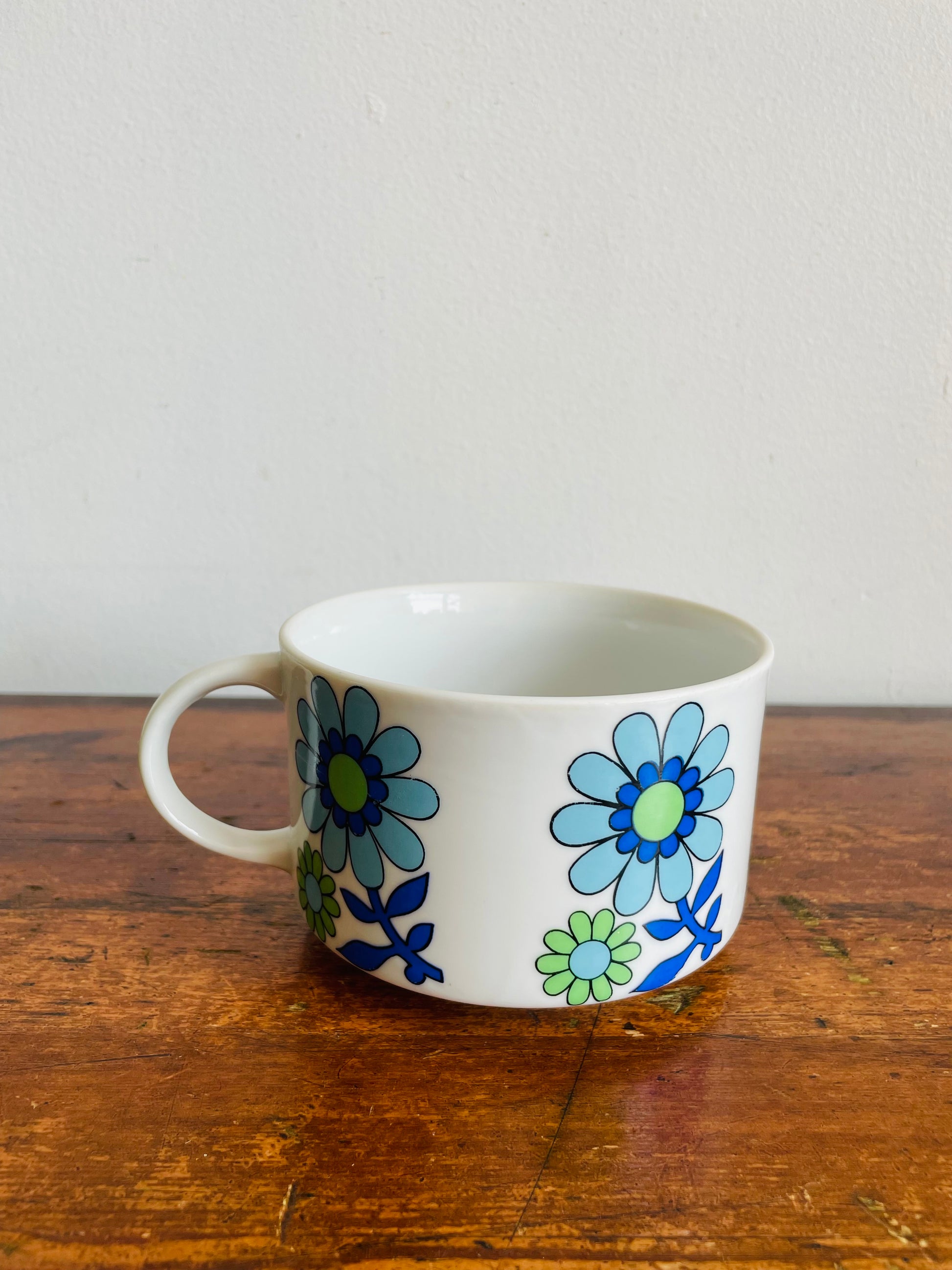 Groovy Soup Bowl with Handle & Blue & Green Flower Power Design - Would Also Make a Great Planter - Made in Japan