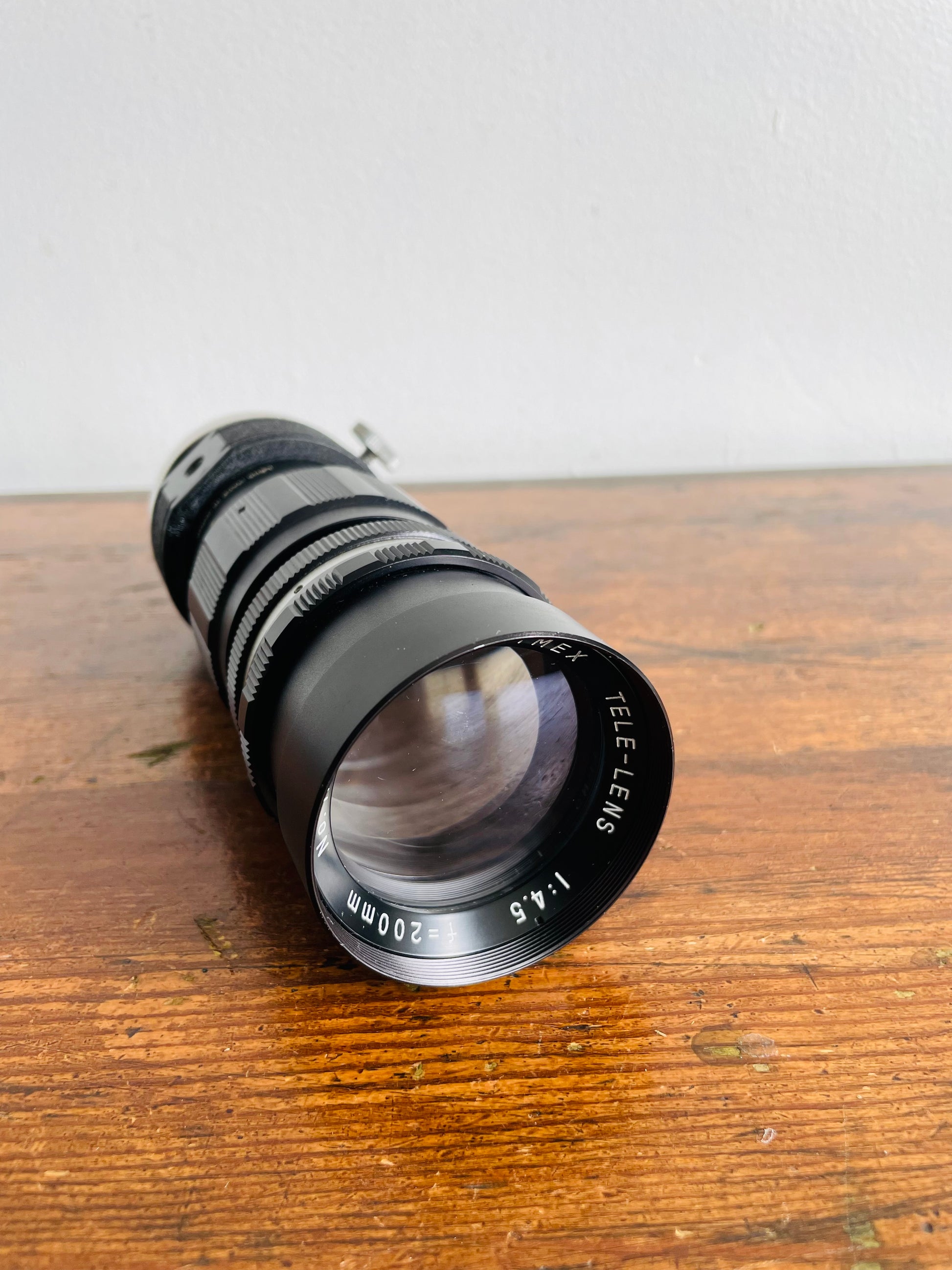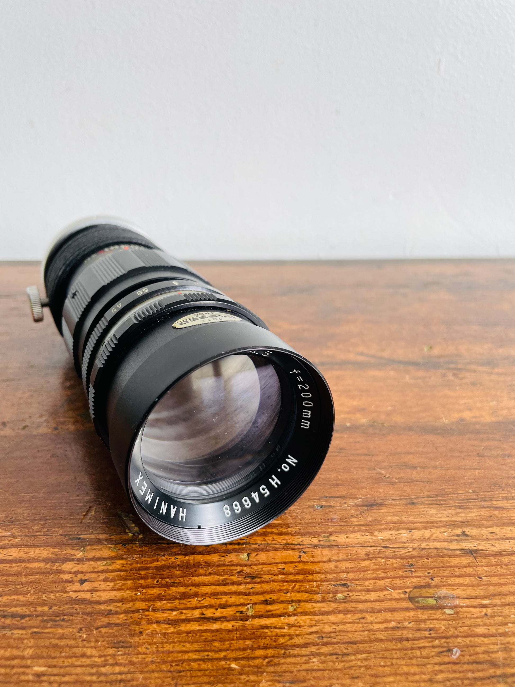 Stamped: Hanimex Tele-Lens 1:4.5 / F= 200mm / No. H54668 / Lens made in Japan