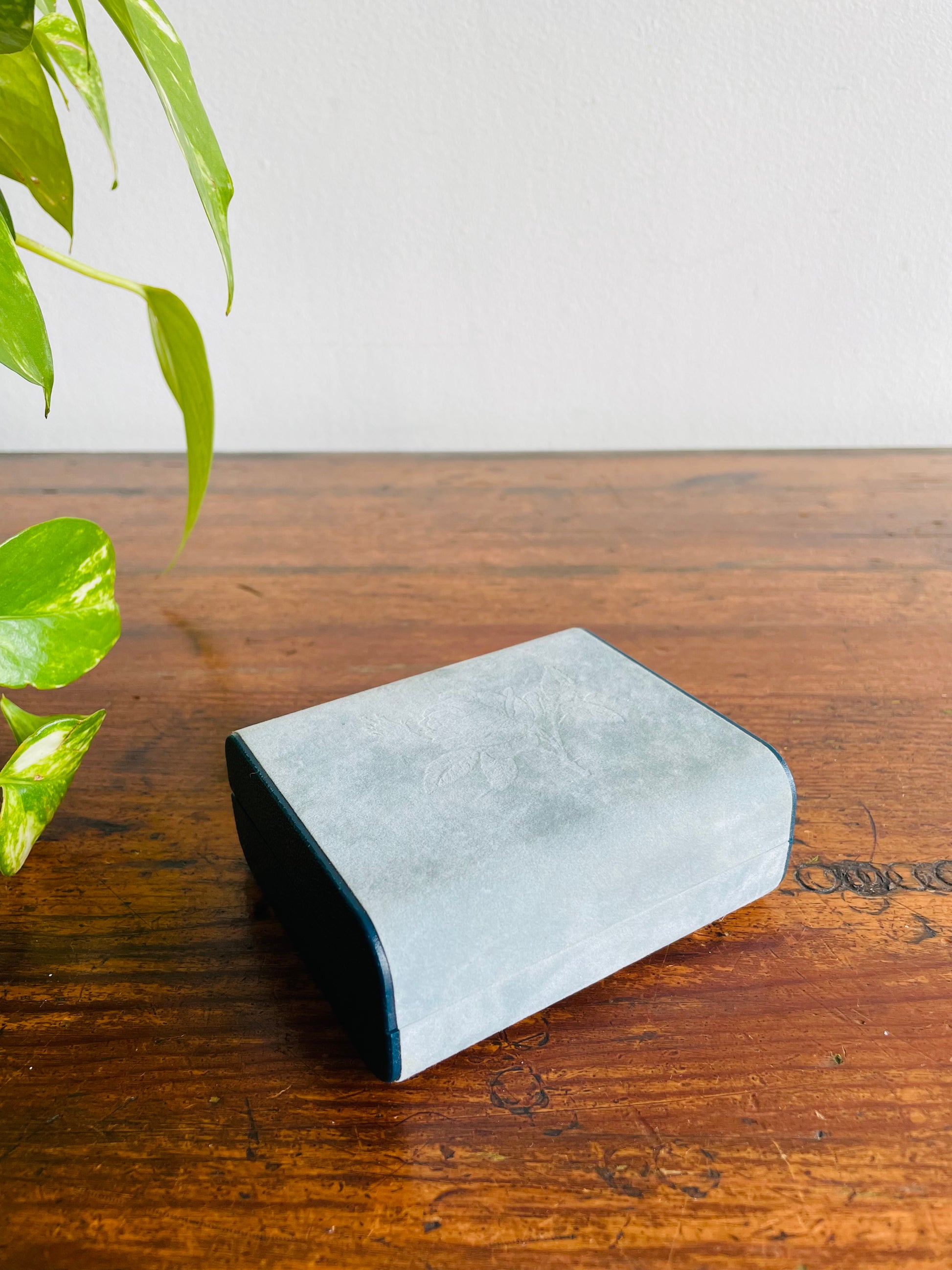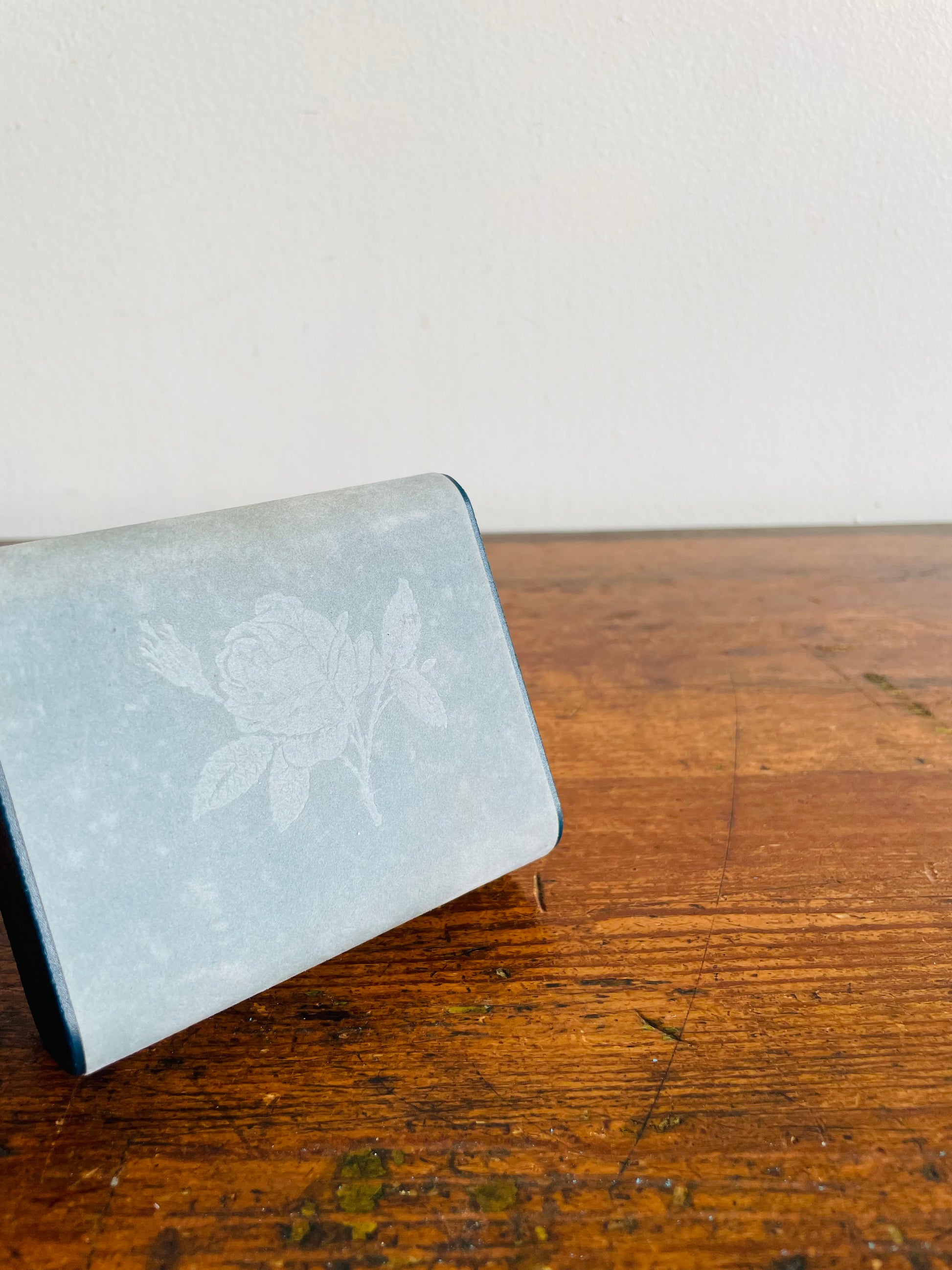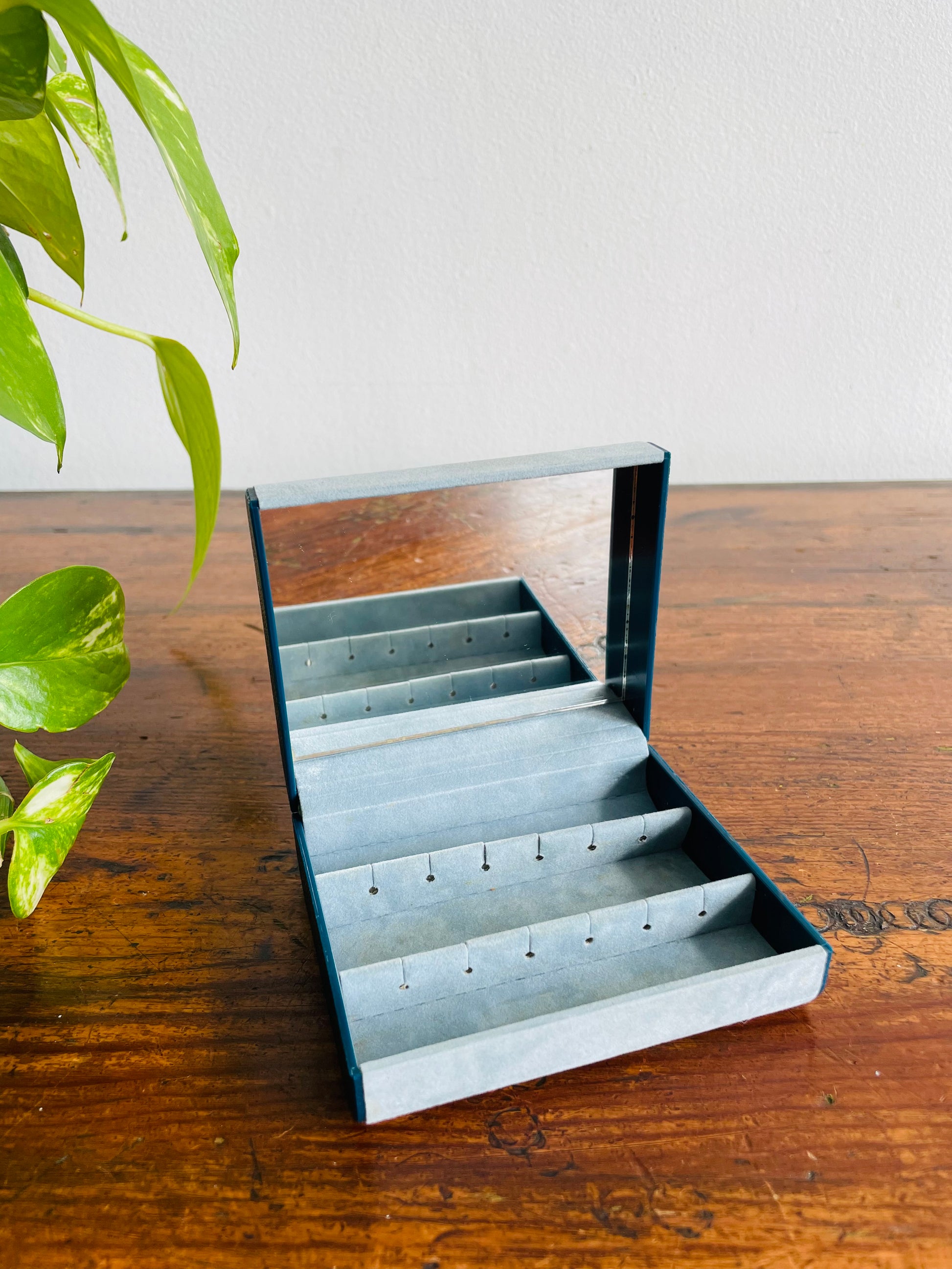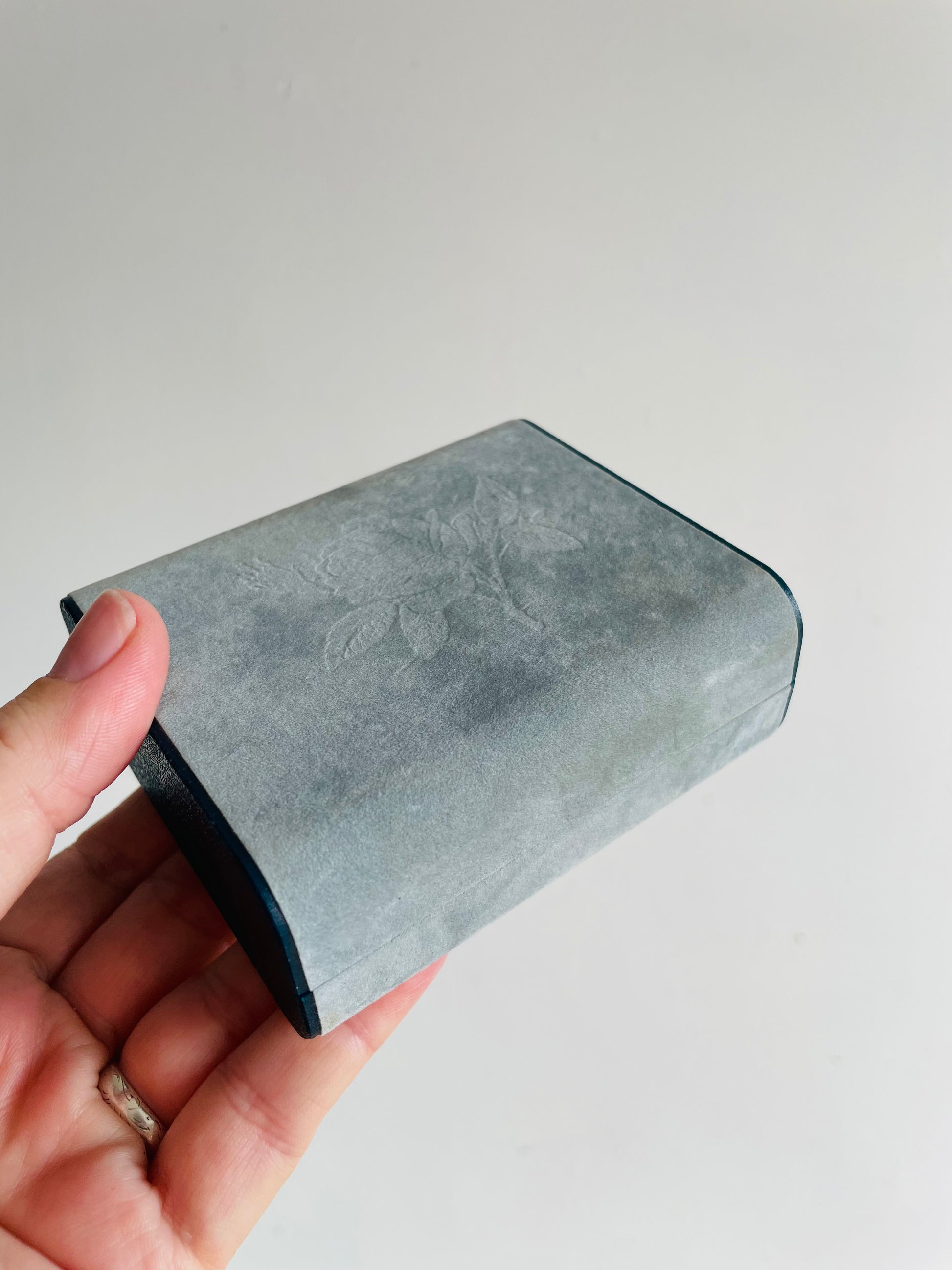 Design Philipp Hard Shell Powder Blue Velvet Jewellery Travel Case for Earrings with Rose Emblem - Has Mirror Inside & Can Hold 6 Pairs of Earrings - Made in Great Britain