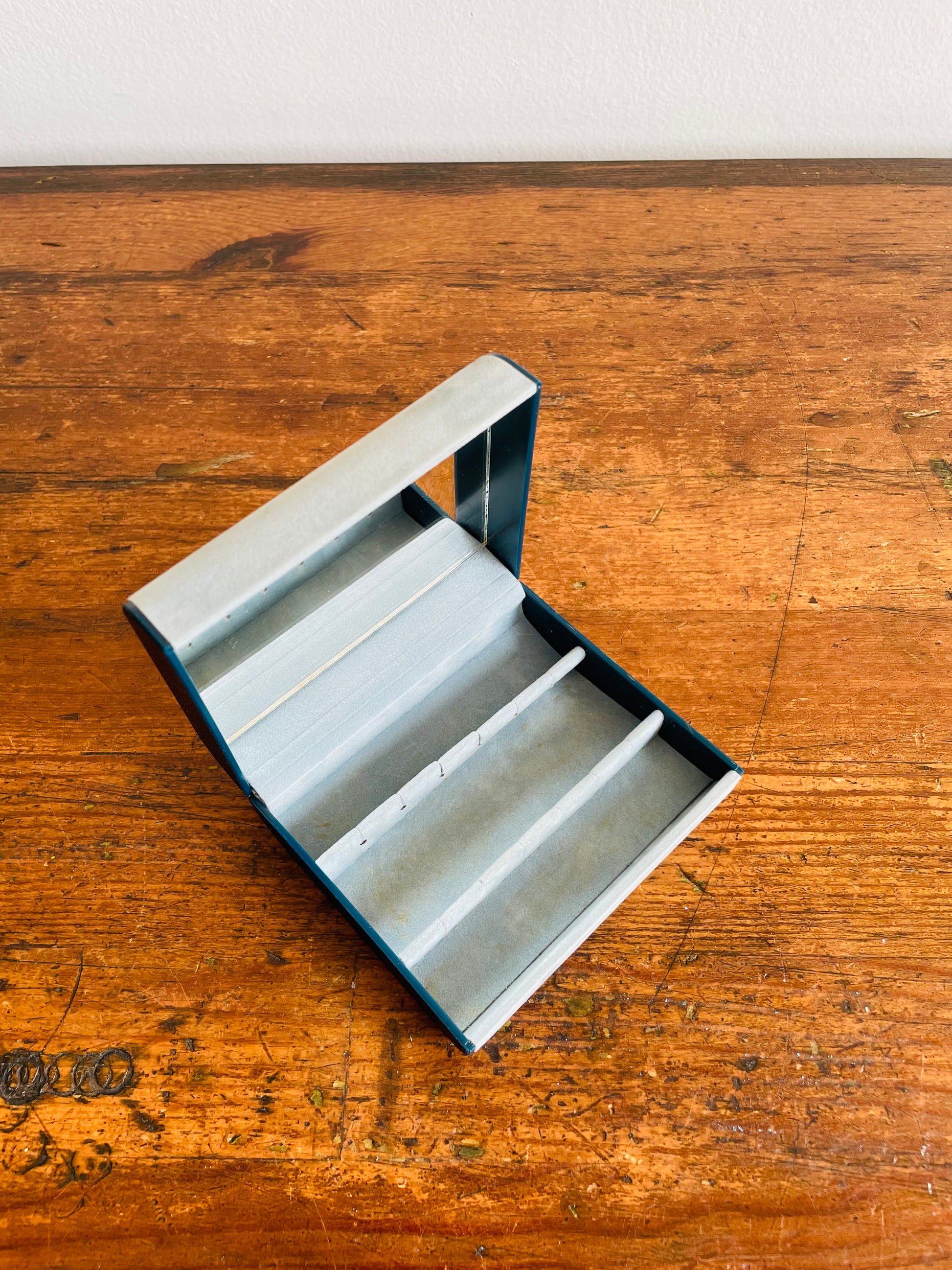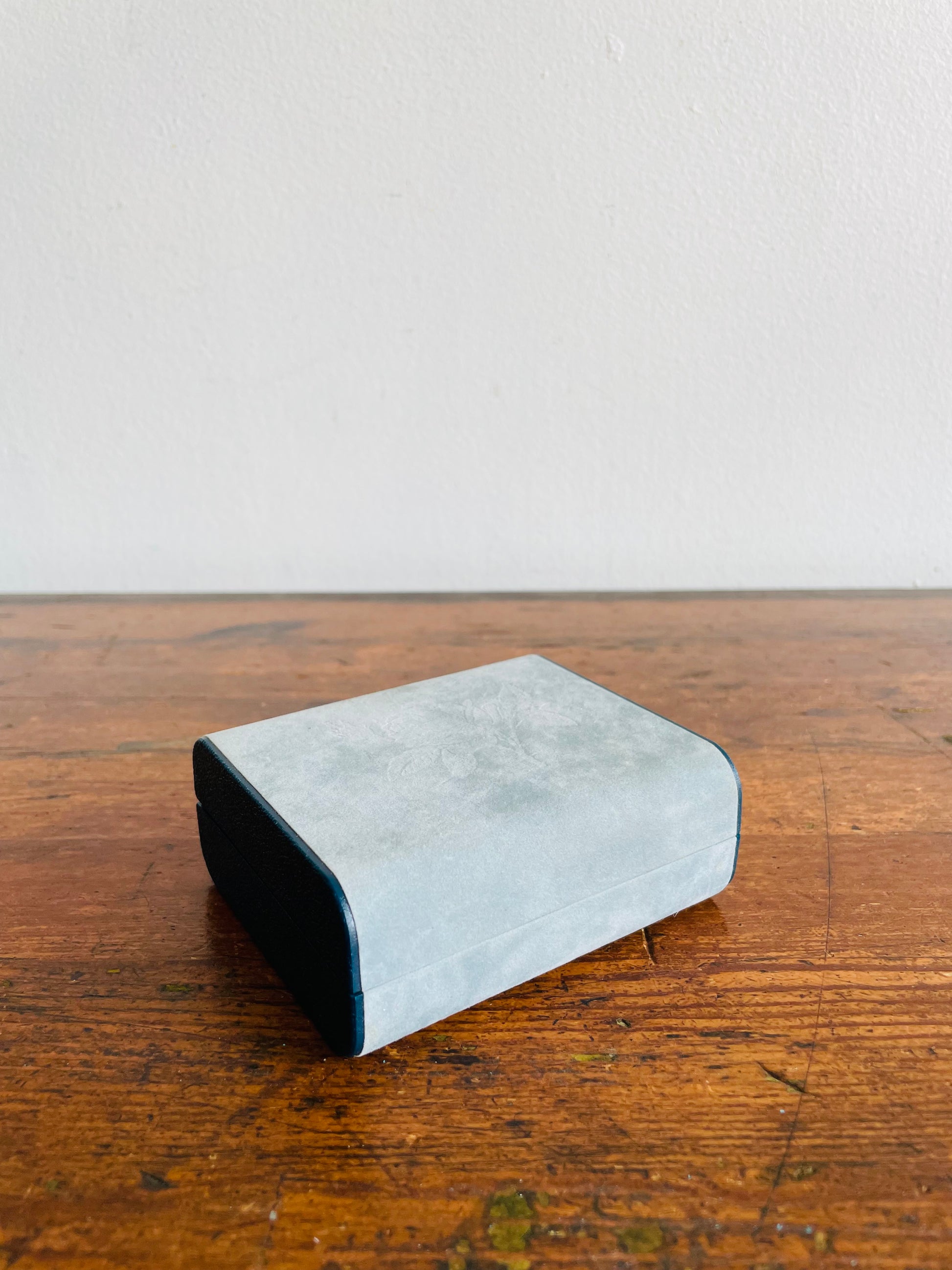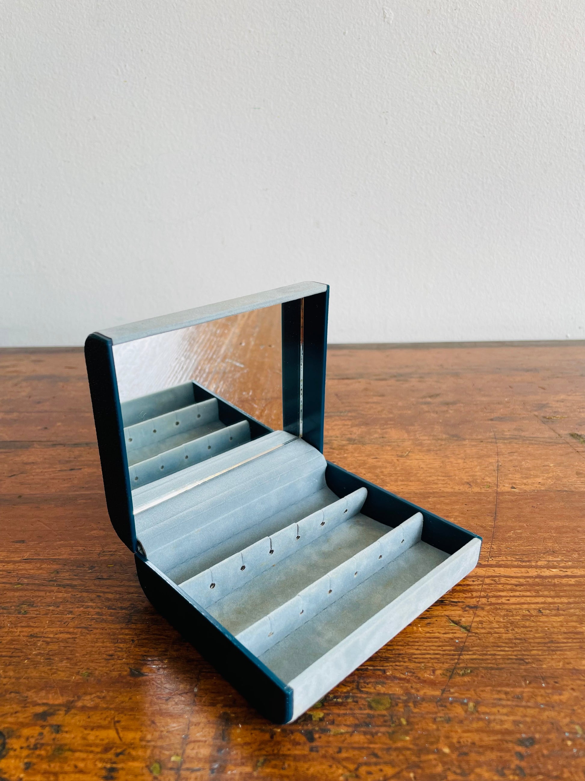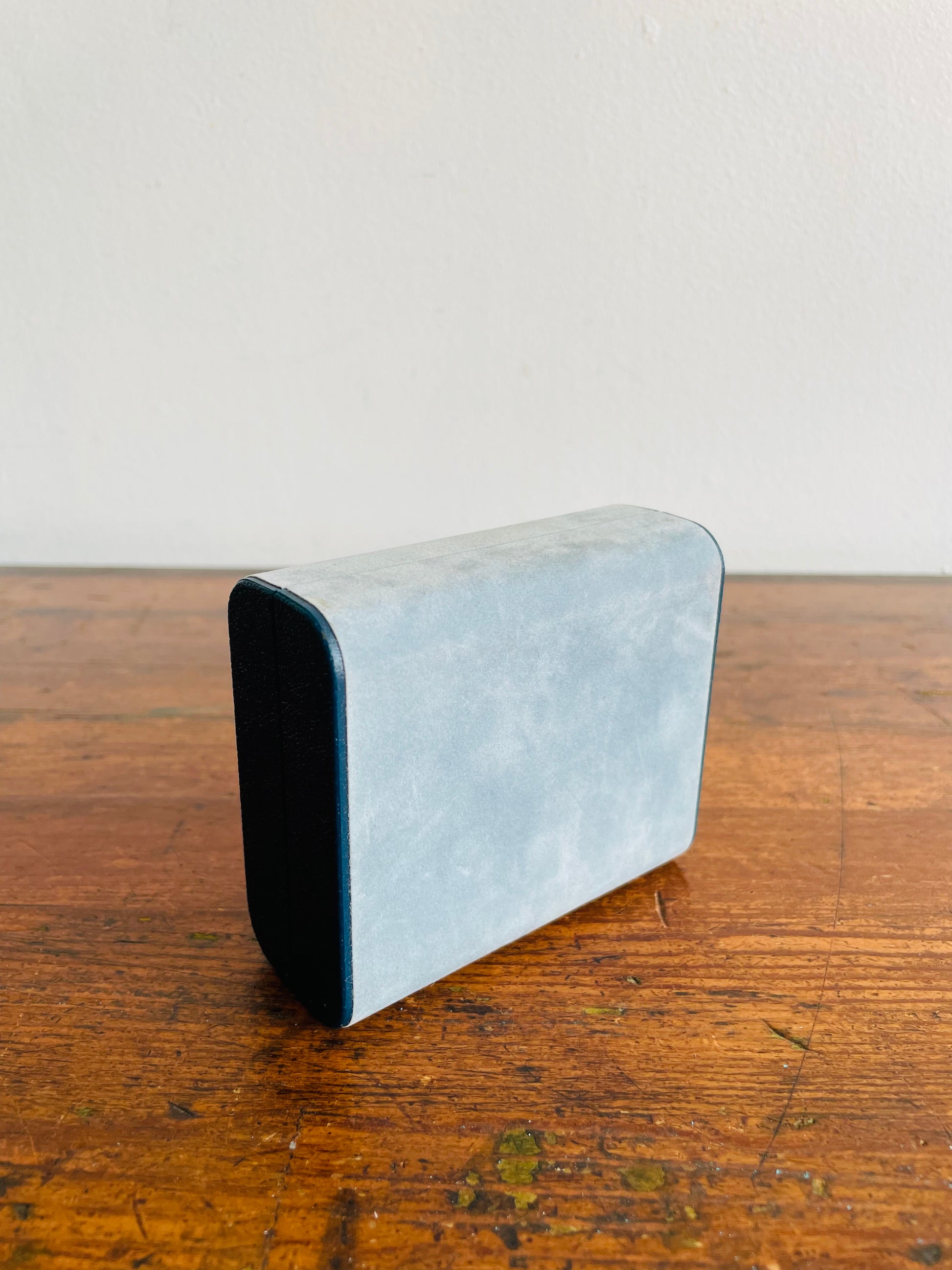 Design Philipp Hard Shell Powder Blue Velvet Jewellery Travel Case for Earrings with Rose Emblem - Has Mirror Inside & Can Hold 6 Pairs of Earrings - Made in Great Britain