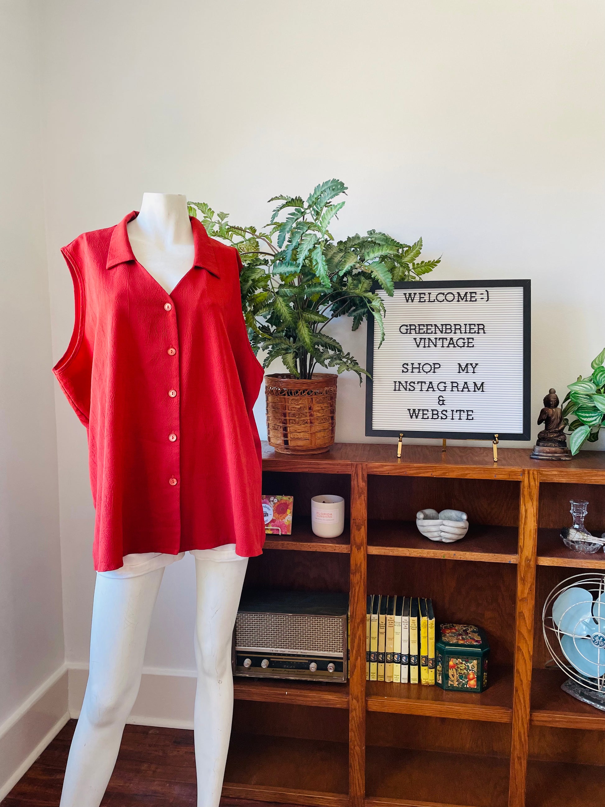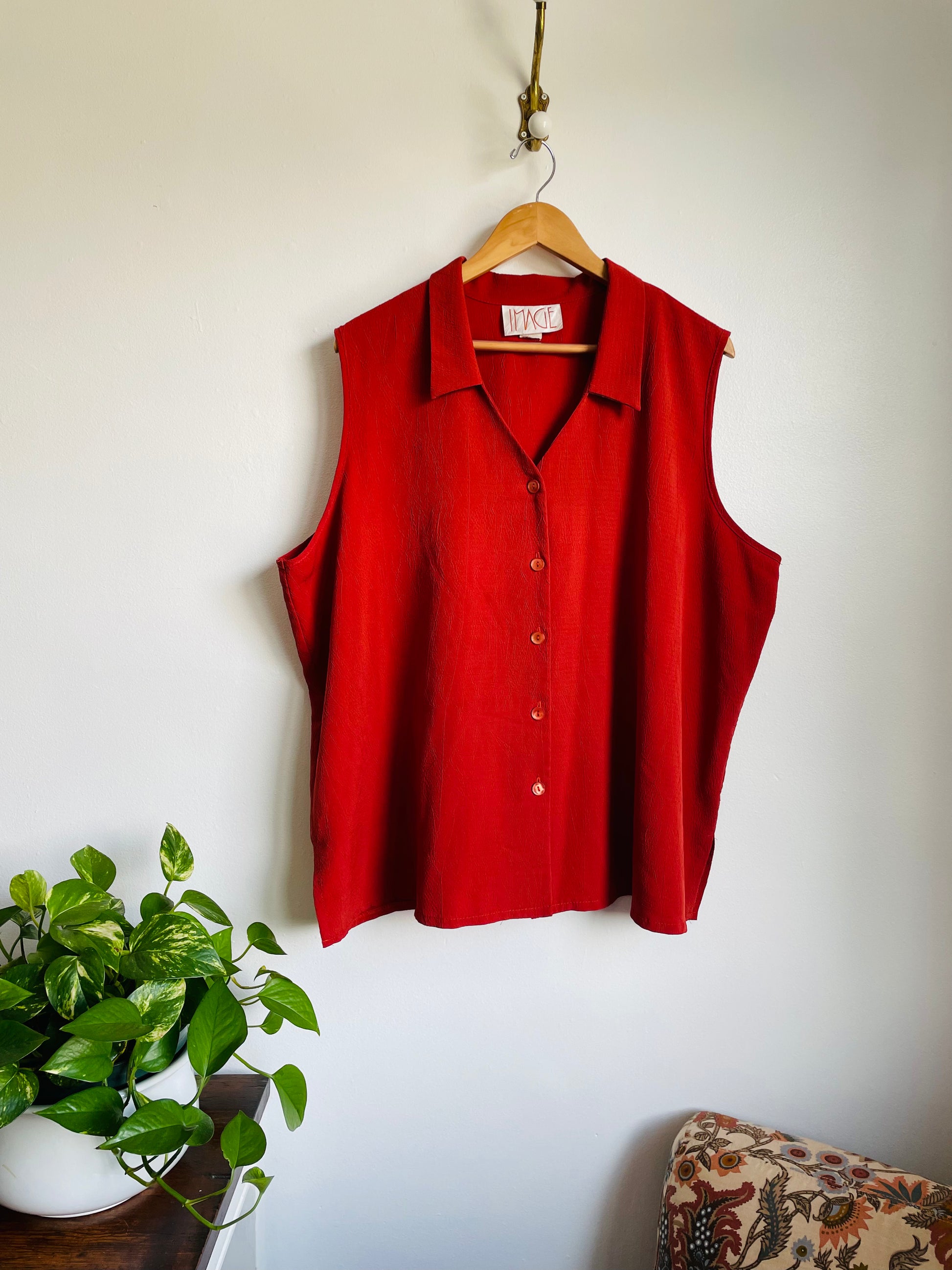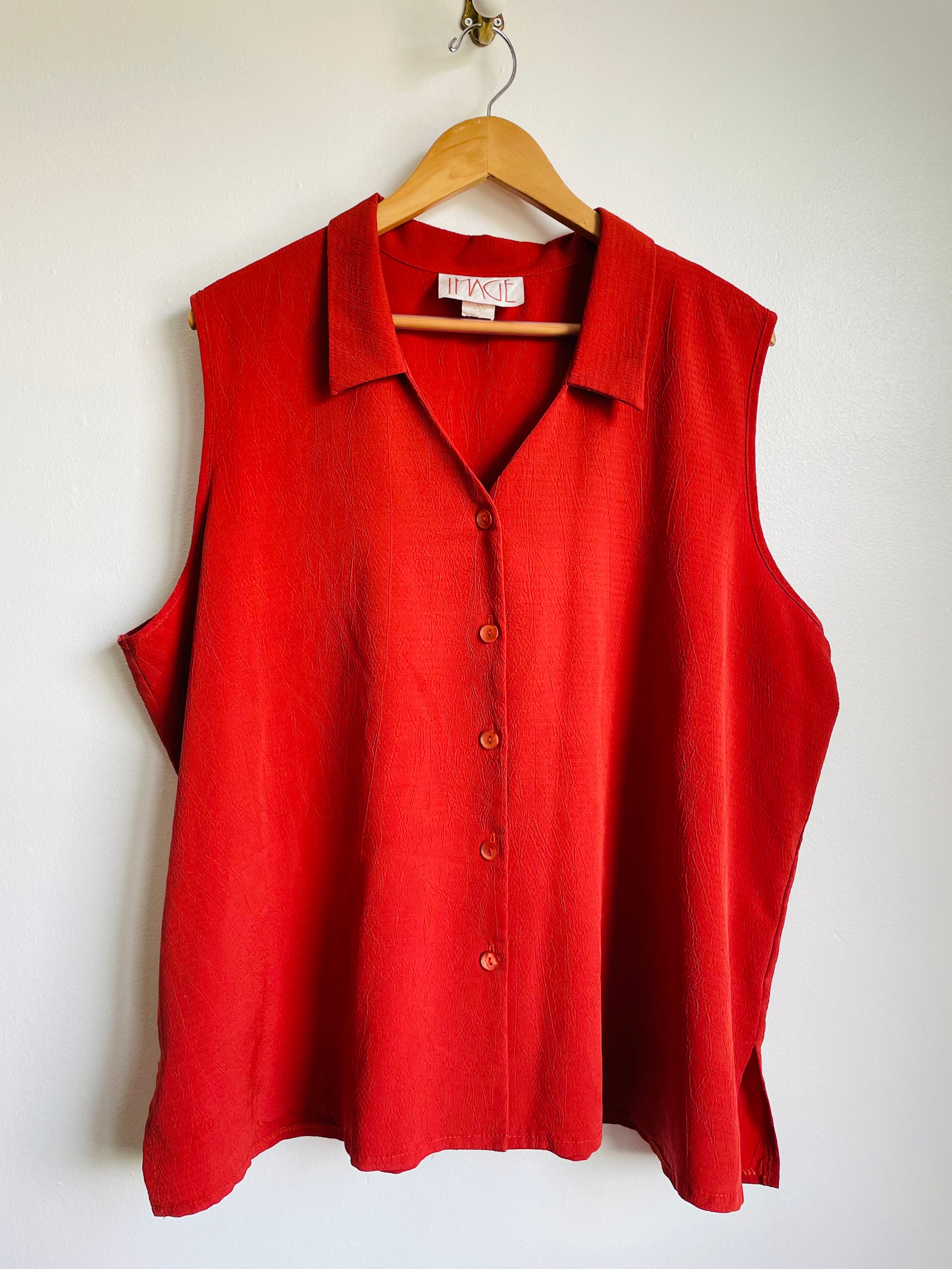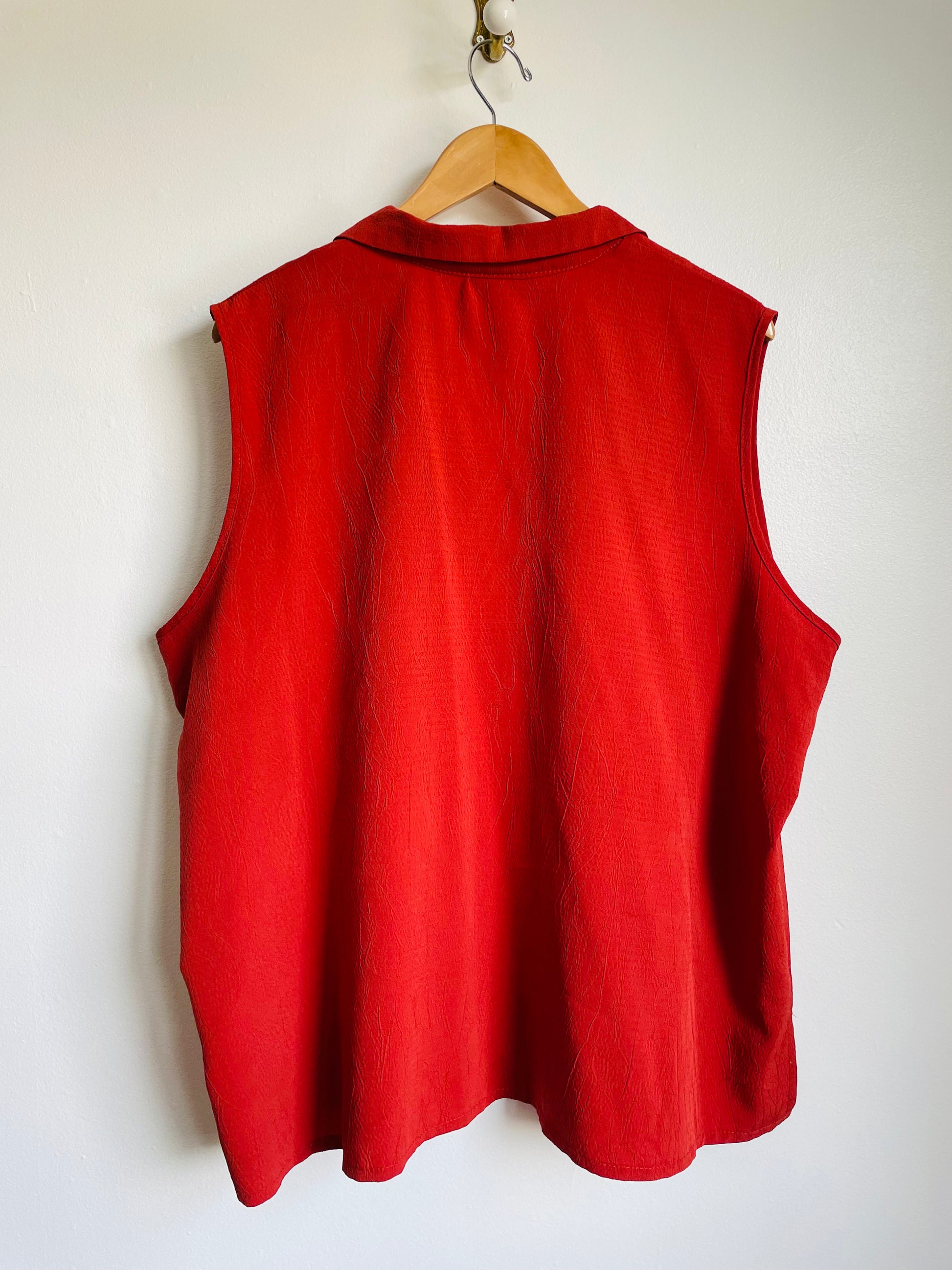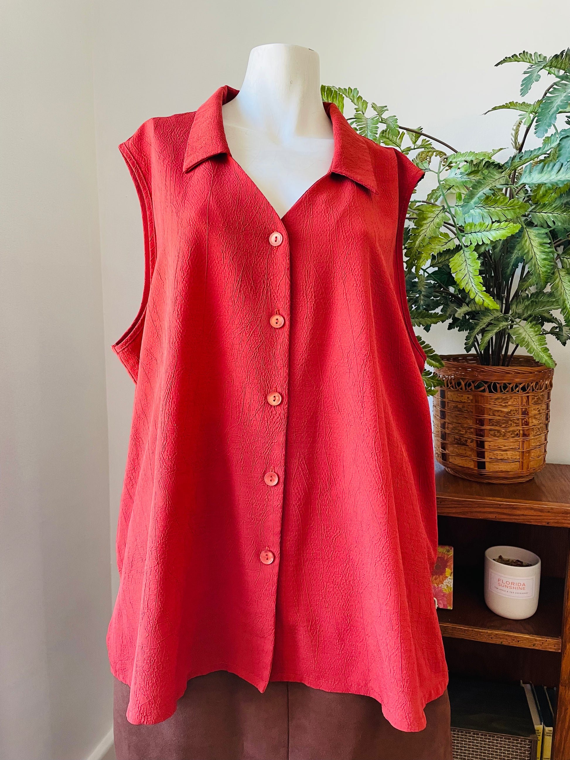 Vintage IMAGE Brand Rust Red Button Up Sleeveless Top with Dagger Collar - Size 3x