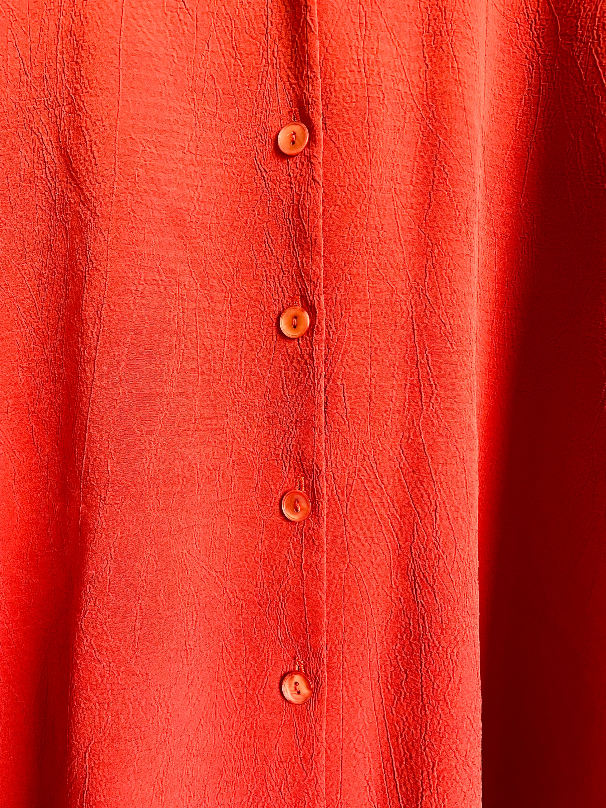 Features: dagger collar, V-neck, sleeveless, five buttons, crinkle textured design on fabric