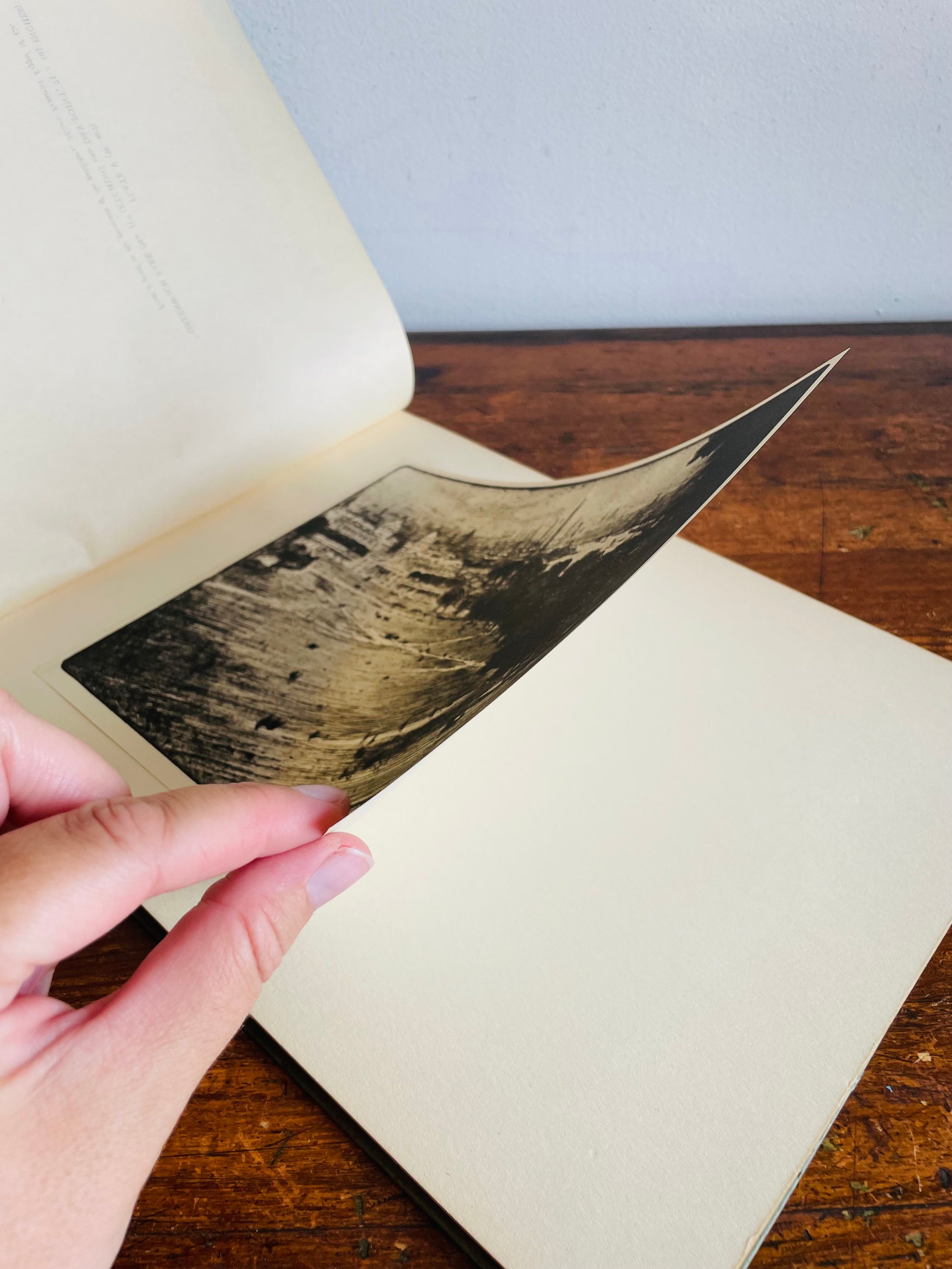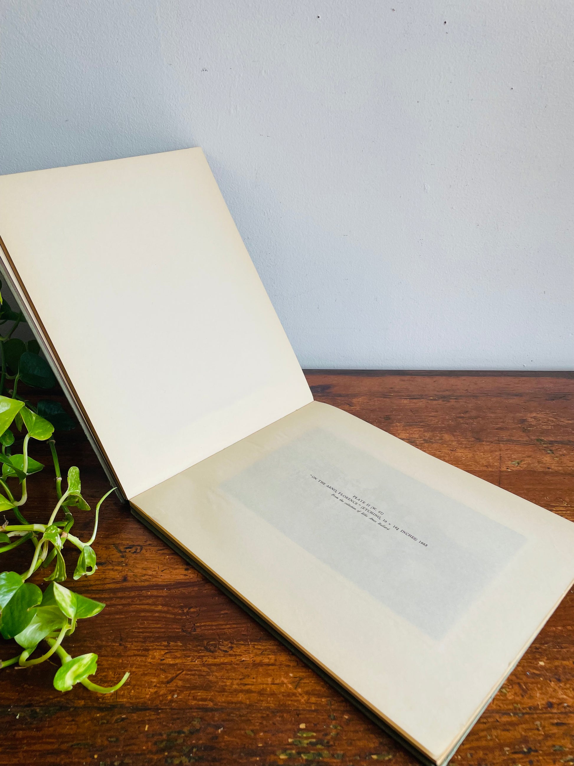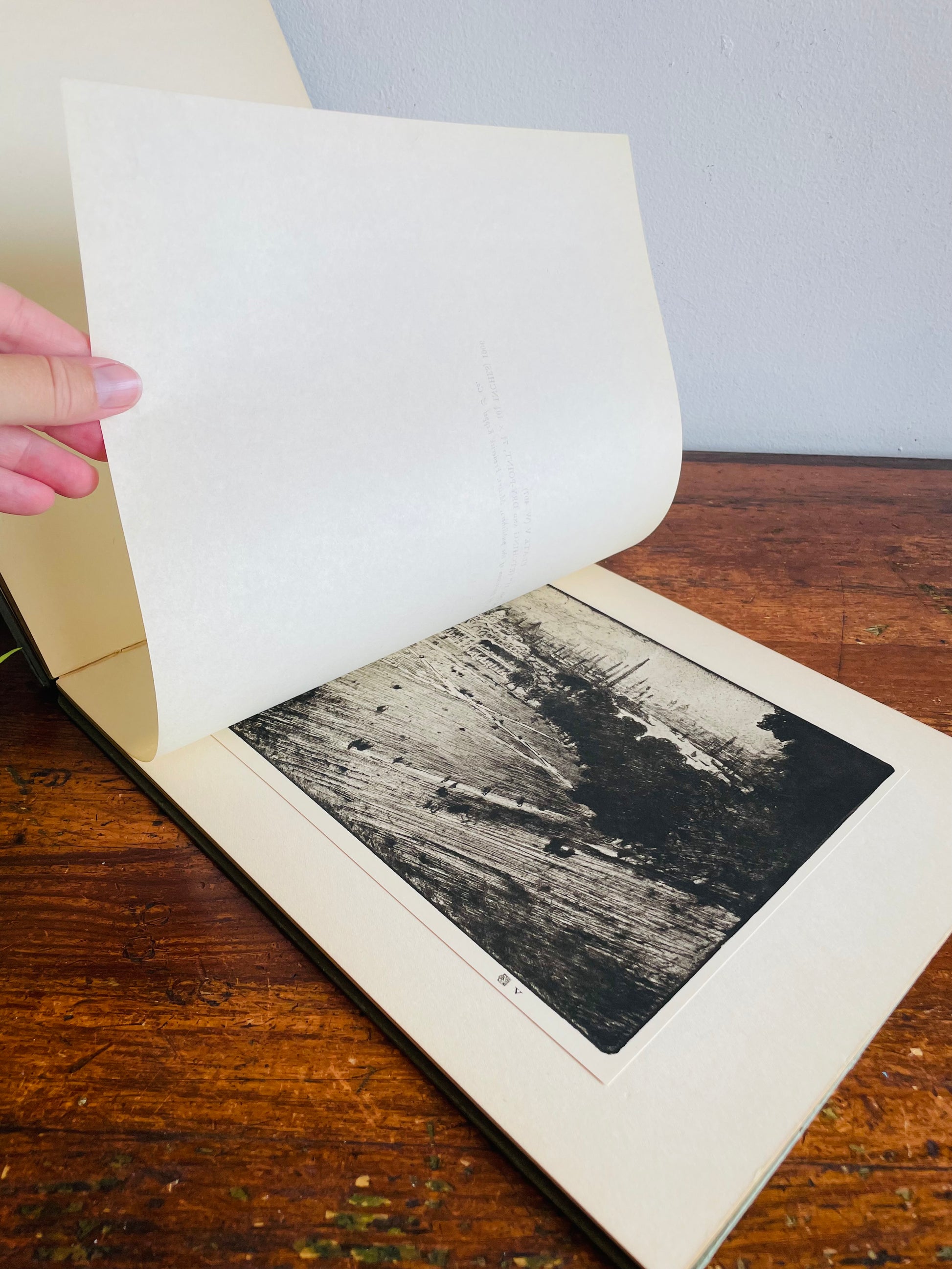 A lovely art book full of etchings that can be used as a book or to take the pages and make framed artwork from. The etchings are only attached loosely on one side of the pages so you might be able to remove them, or you could remove the entire page and use the backing page as a mat for the etching print and frame the whole page.