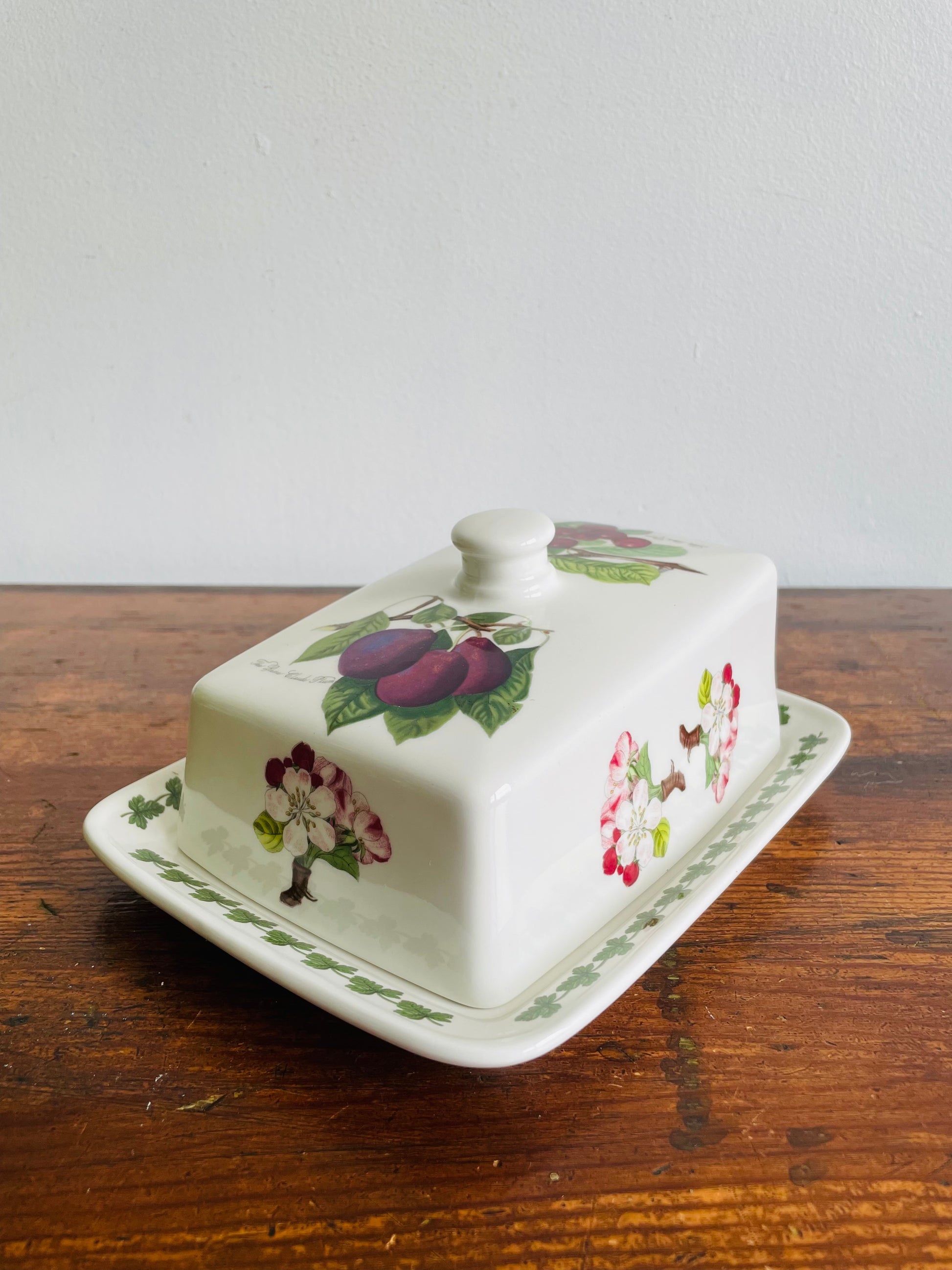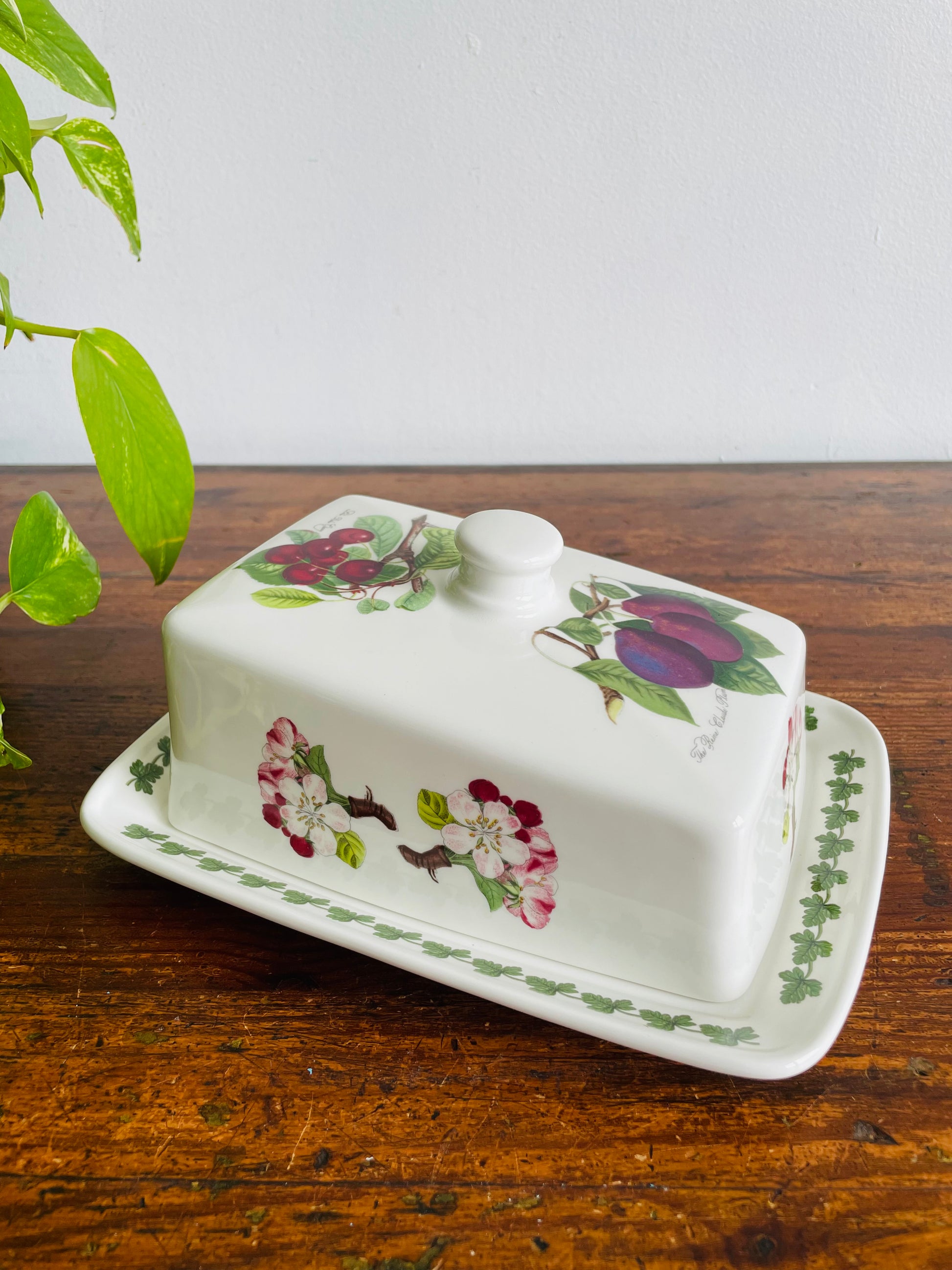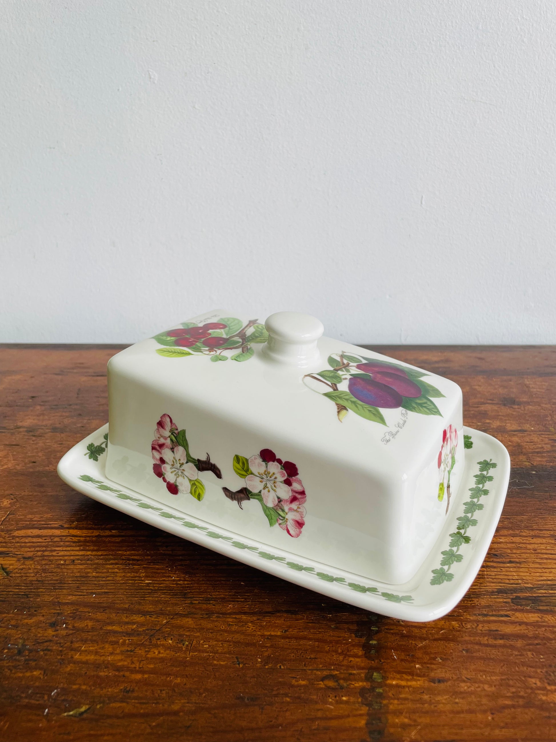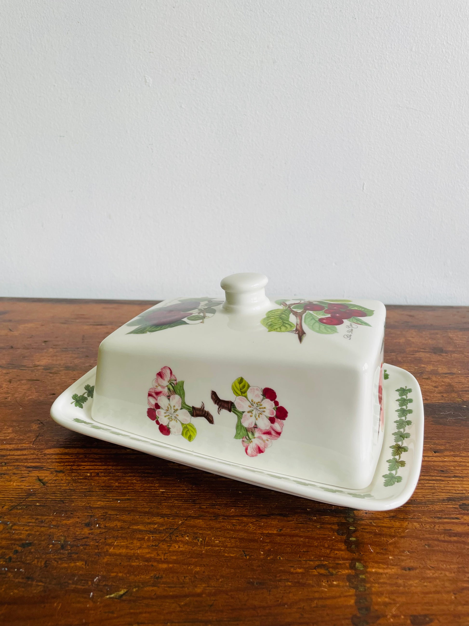 Portmeirion Pomona Fruit & Flower Pattern Wedge Lid Covered Cheese Dish by Susan Williams-Ellis - Made in England