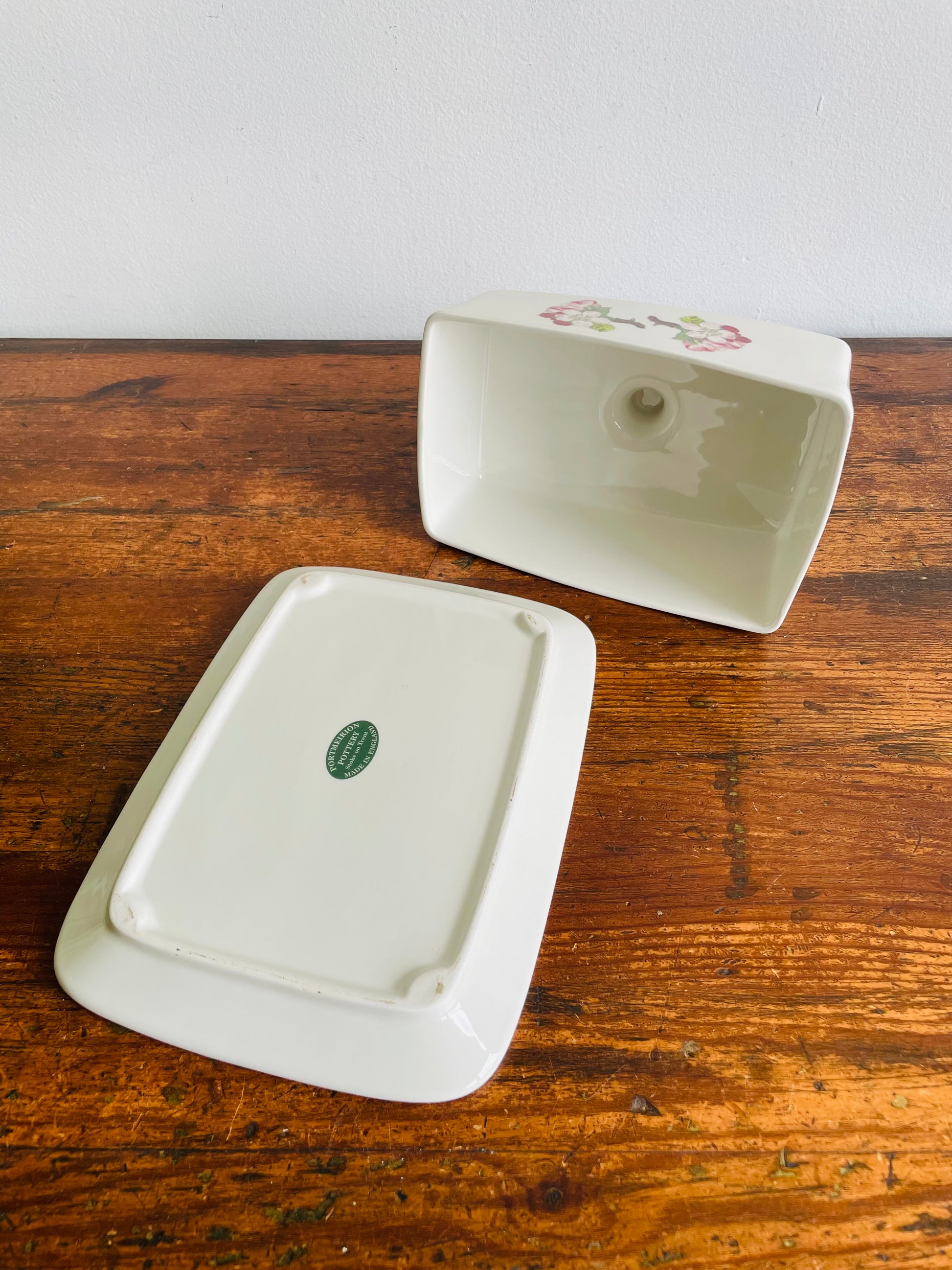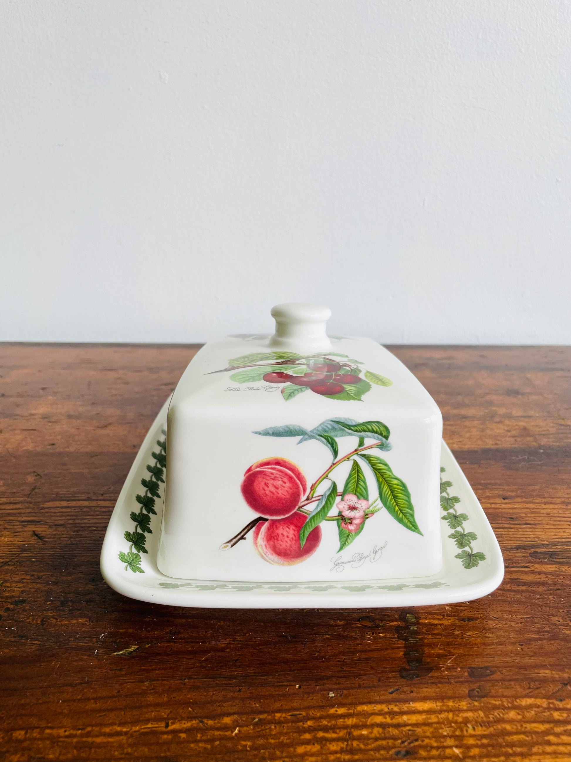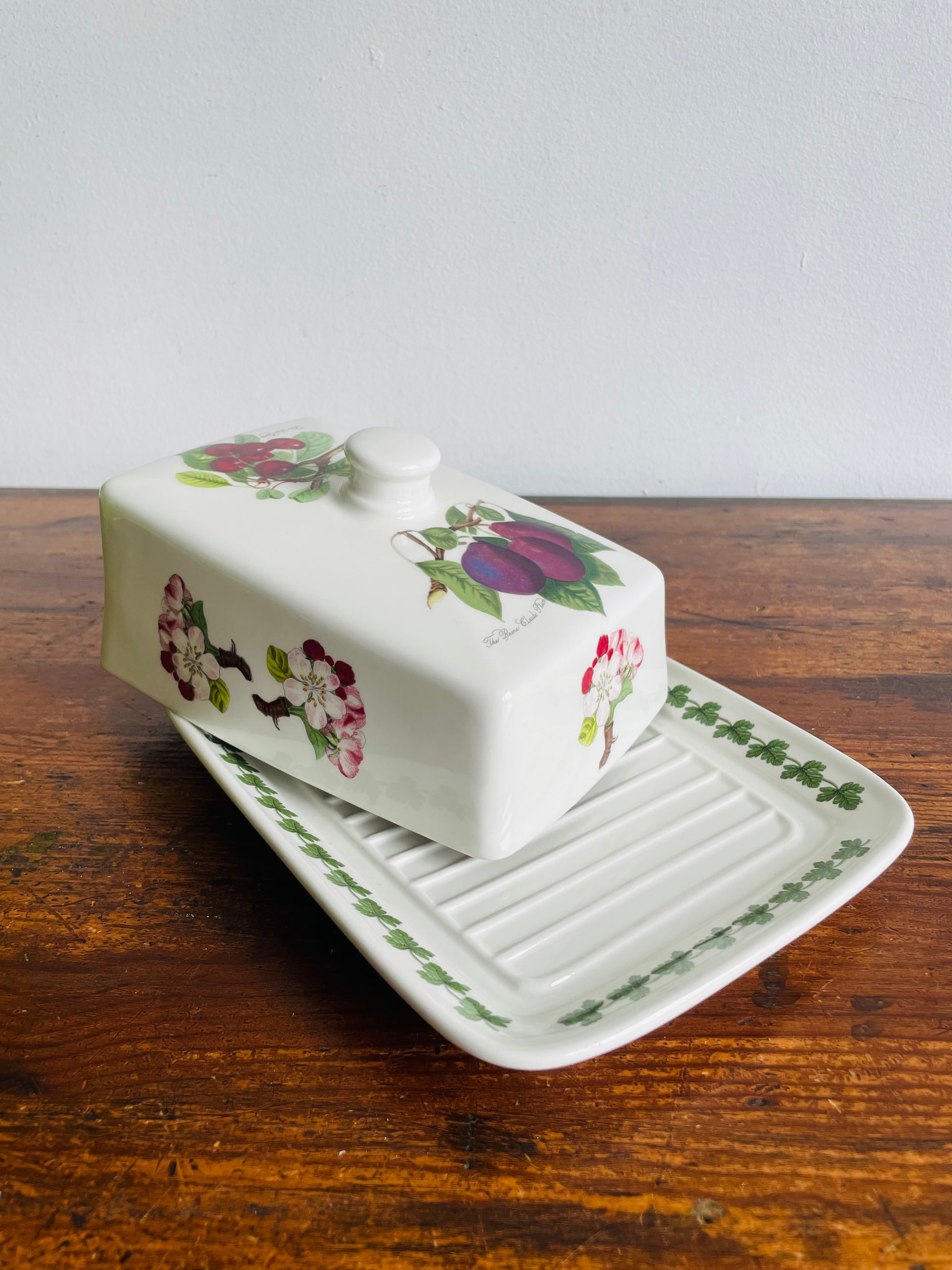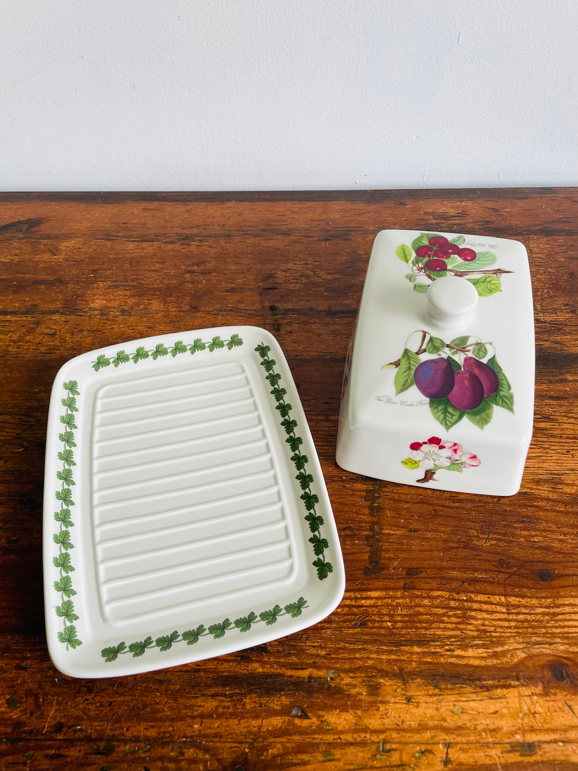 Portmeirion Pomona Fruit & Flower Pattern Wedge Lid Covered Cheese Dish by Susan Williams-Ellis - Made in England