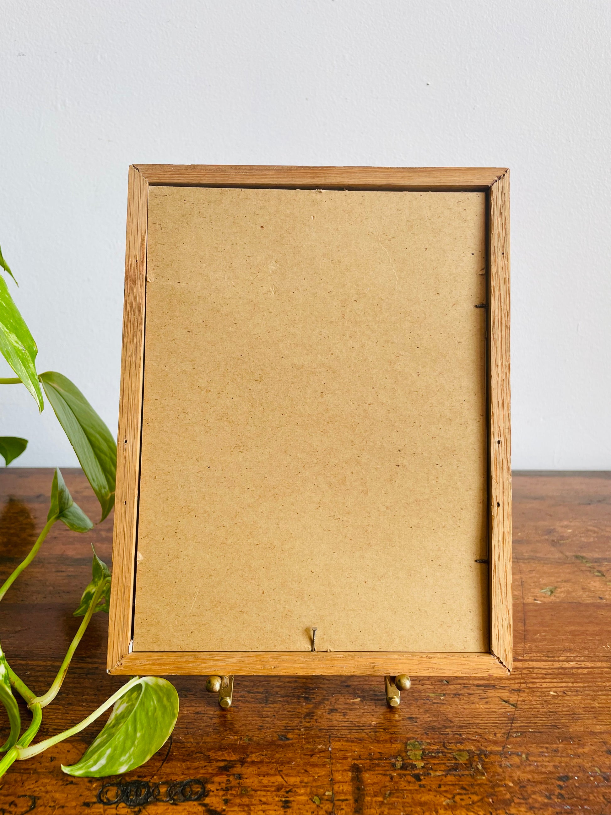 The glass is convex bubble glass so it creates a dome effect. The black images are on the glass which allows for a 3D image with the lithograph print picture background behind. The frame is wood.