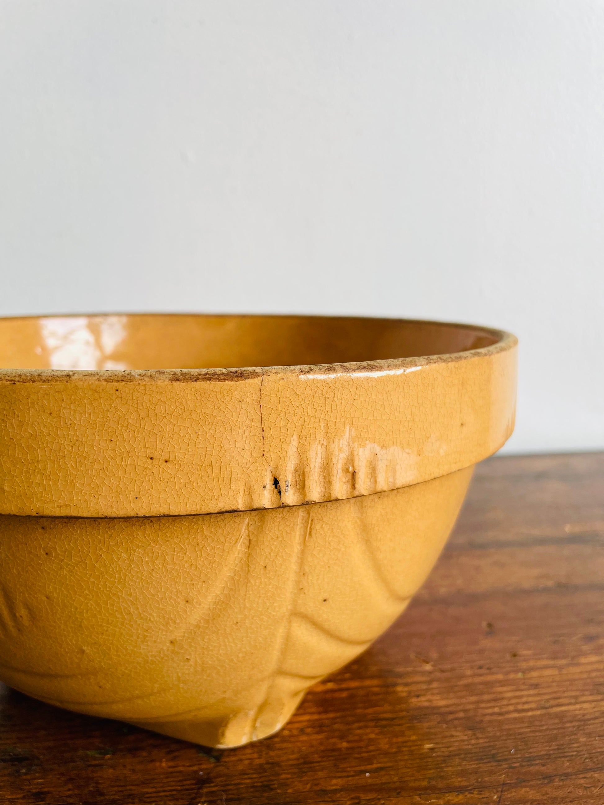 Has wear due to age and a thin crack but they don't impact the use or look. The wear is expected from a piece as old as this and only adds to the charm. See photos