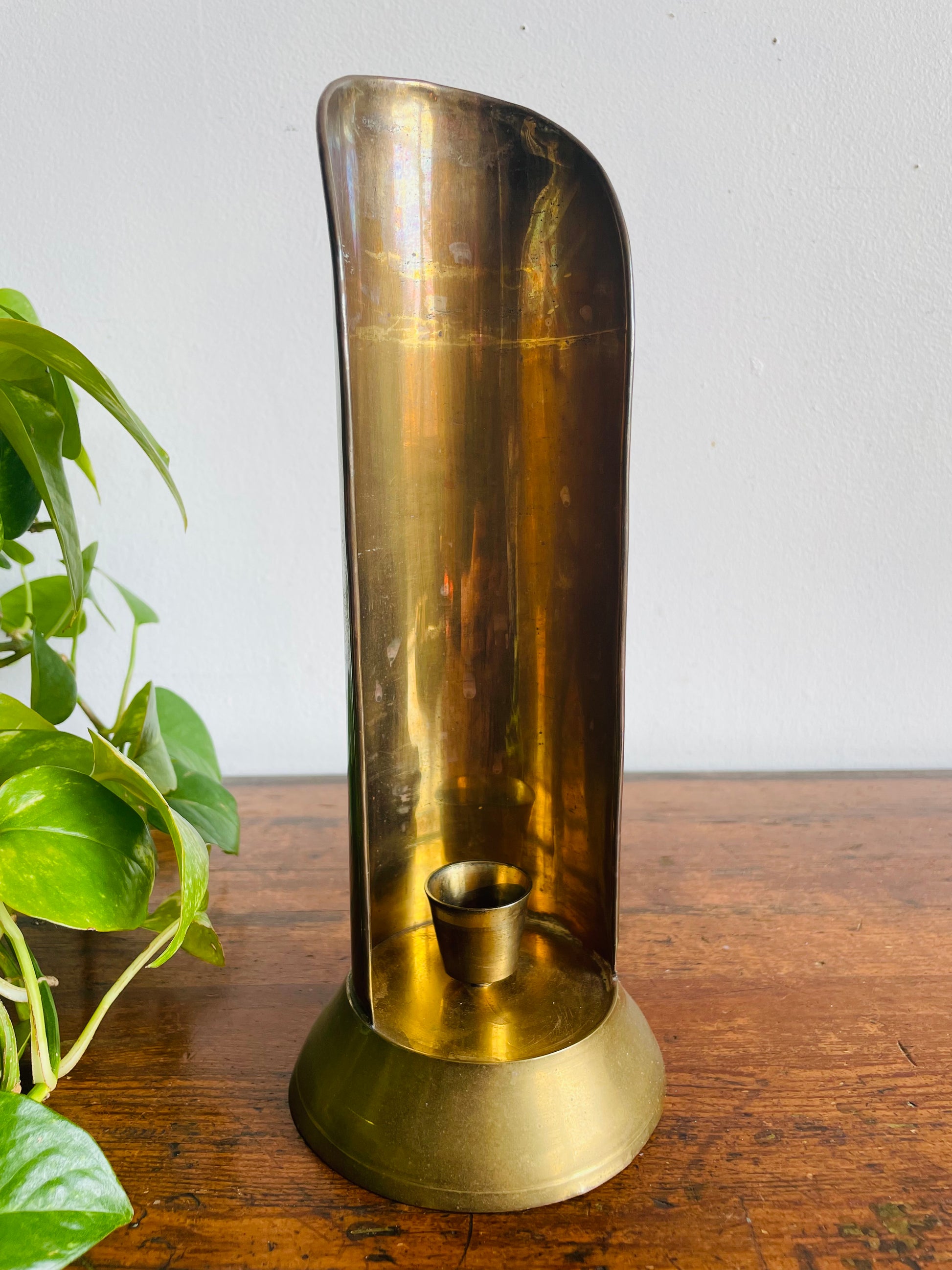 Vintage Brass Candle Holder Reflector Sconce - Handle on Back - Can Stand or Hang on Wall - Made in India