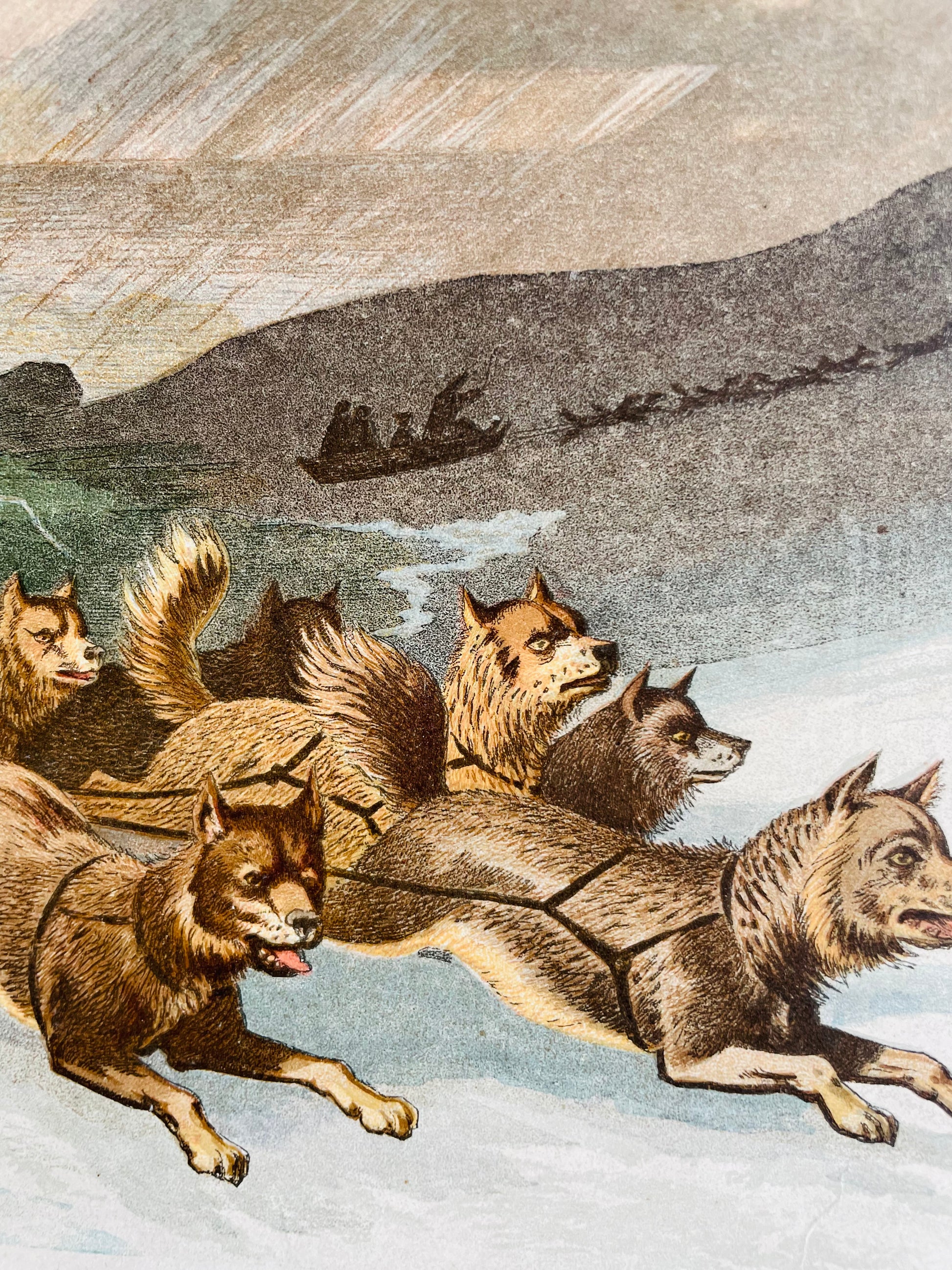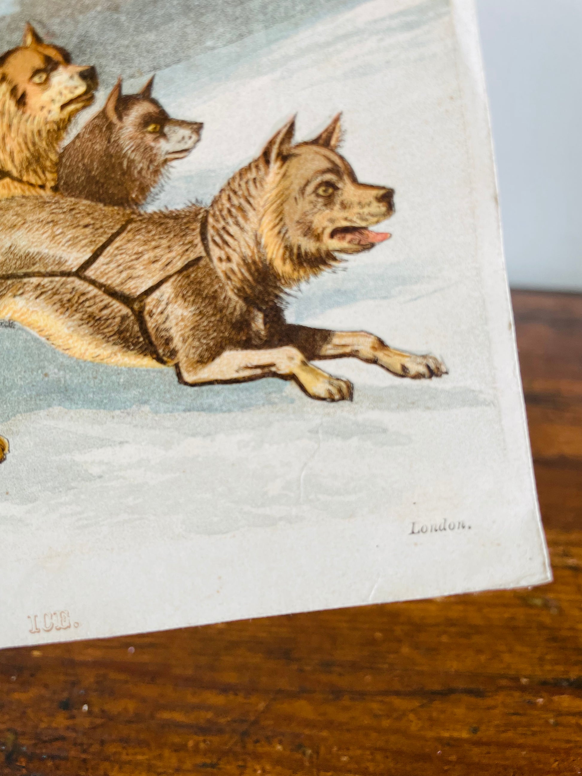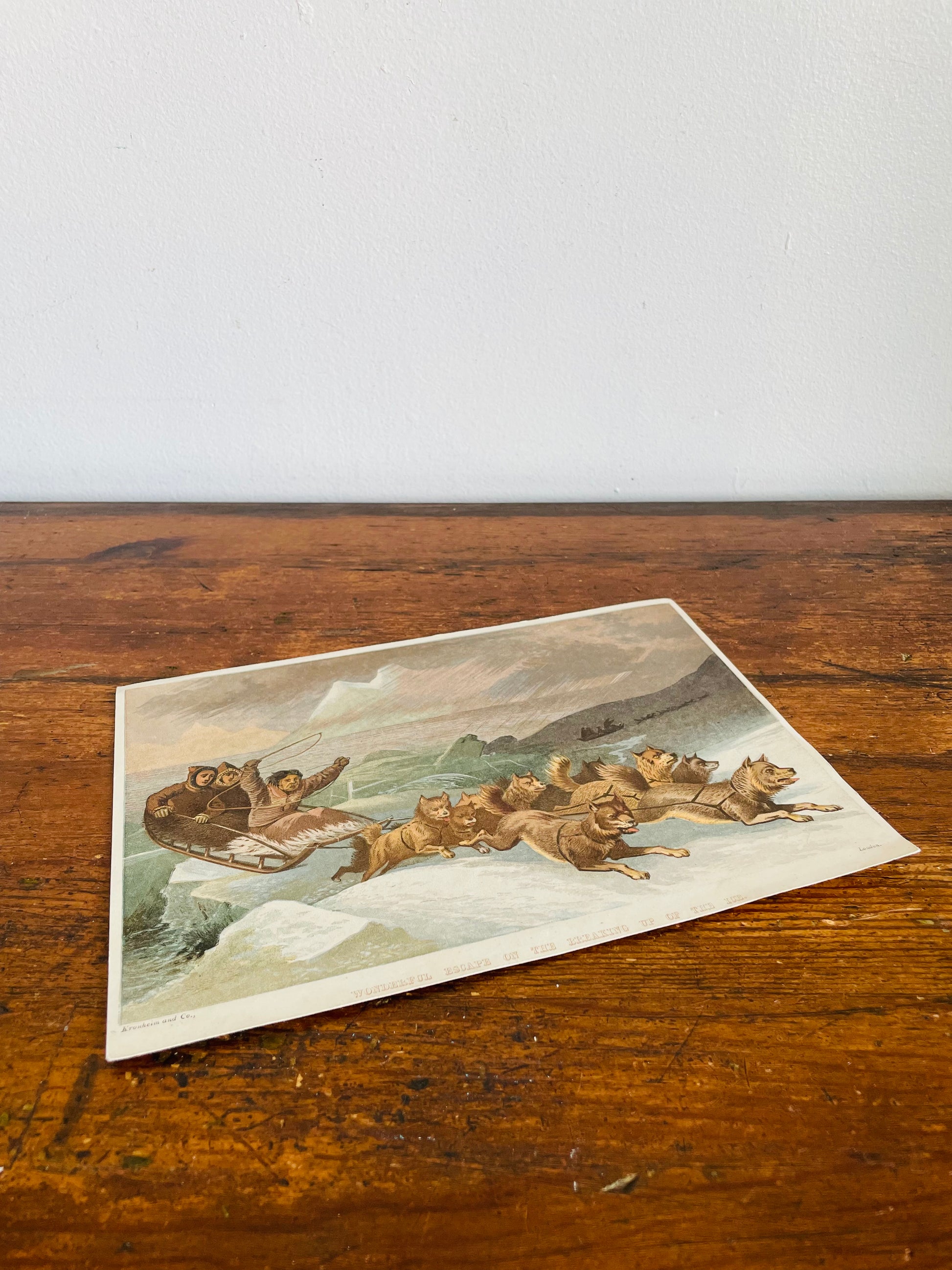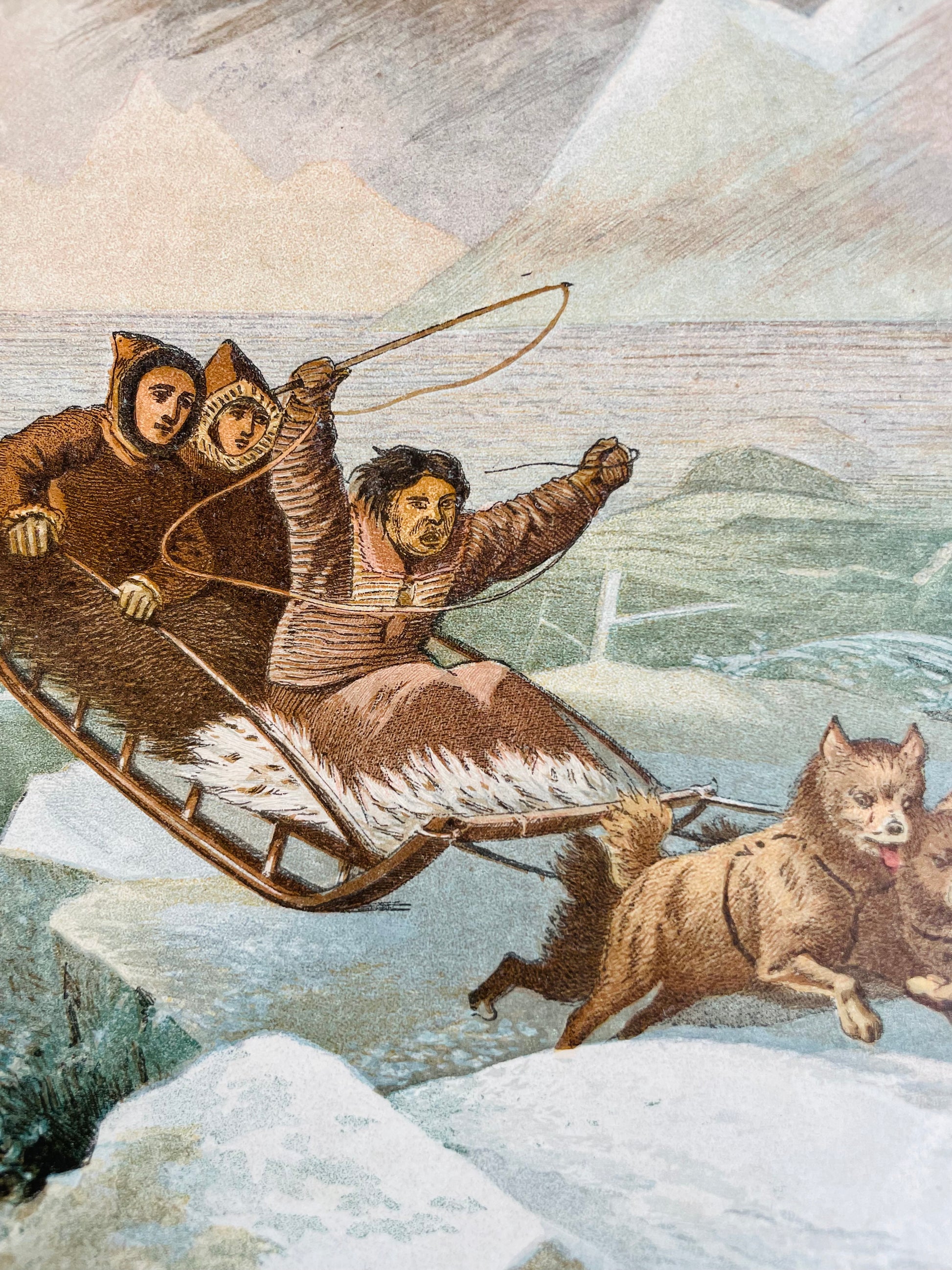 Vintage Lithograph Print Picture - "Wonderful Escape on the Breaking Up of the Ice" with Dog Sled Team in Arctic - Kronheim and Co., London