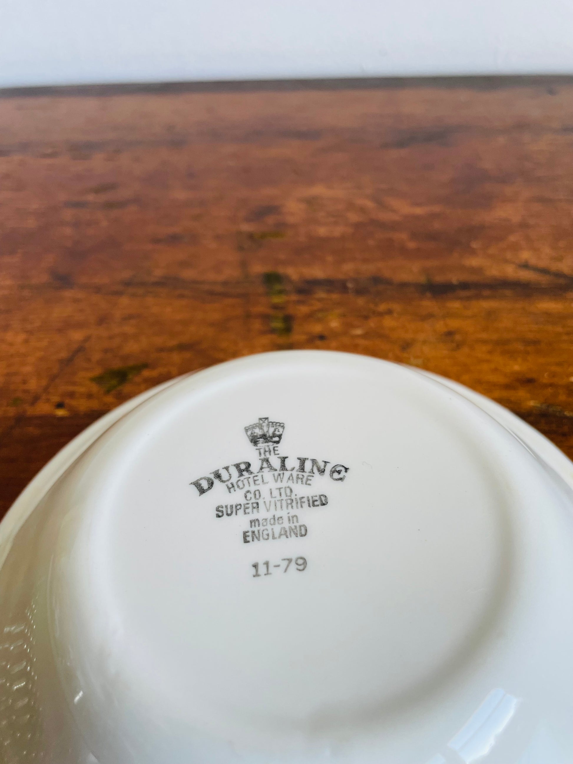 Bowl Stamped: The Duraline Hotel Ware Co. Ltd. Super Vitrified Made in England 11-79