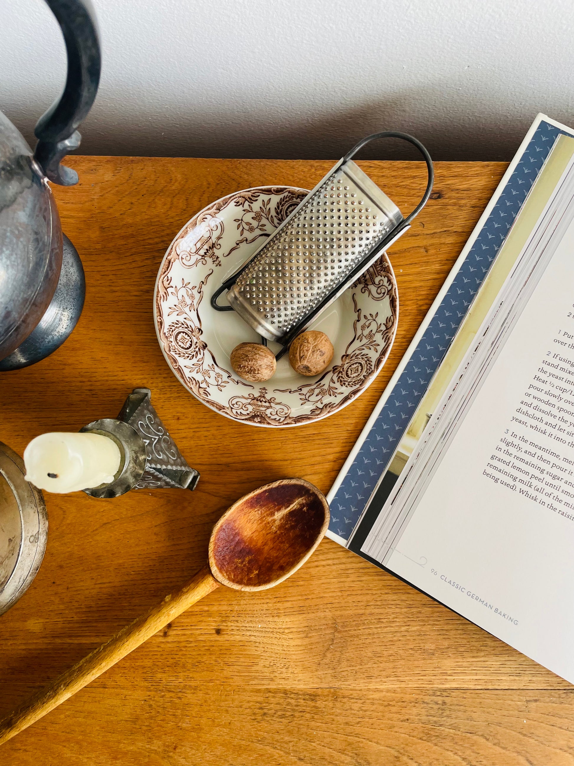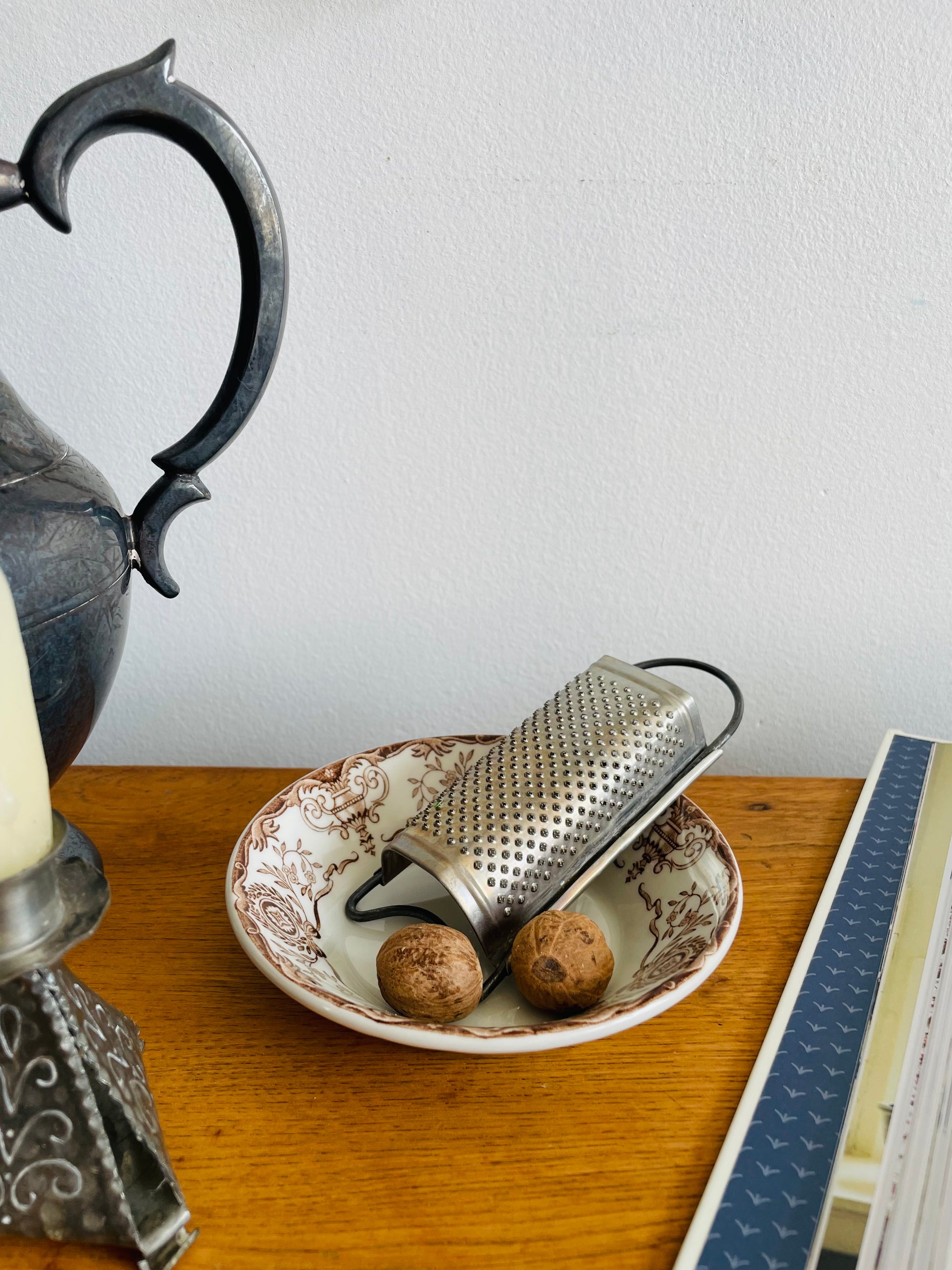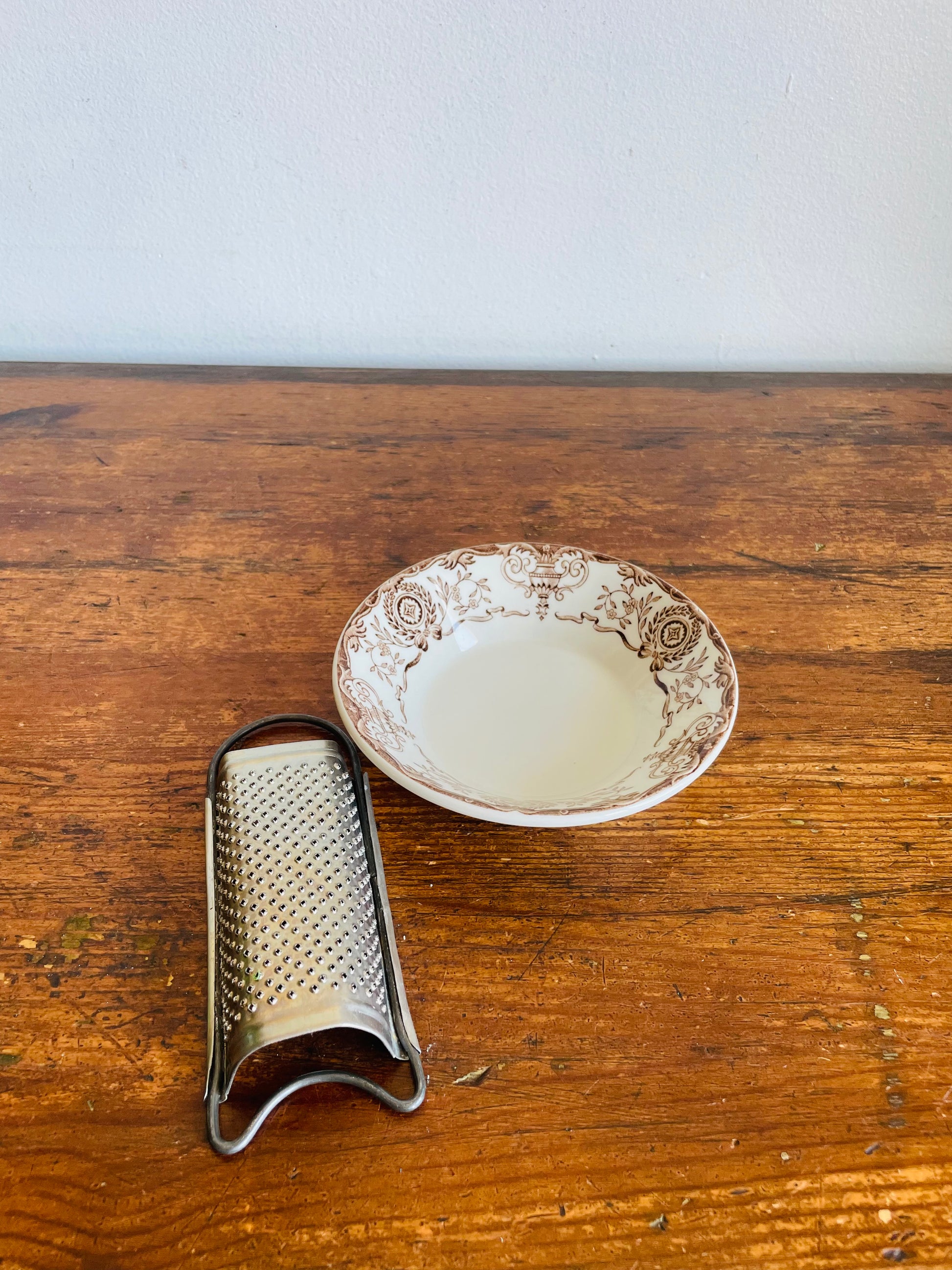 I have paired these two pieces together but they don’t originally go together. I just thought the grater would be nice for grating nutmeg or zesting fruit and then you could catch the grated pieces in the bowl. Use them together or separately.