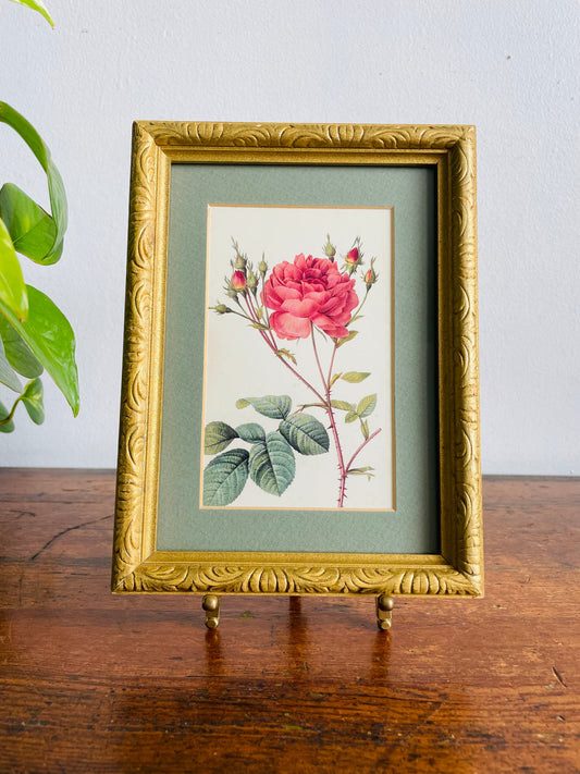Vintage Framed Botanical Rose Flower Print Picture - Rosa Centifolia Anglica Rubra Illustration by Pierre-Joseph Redouté