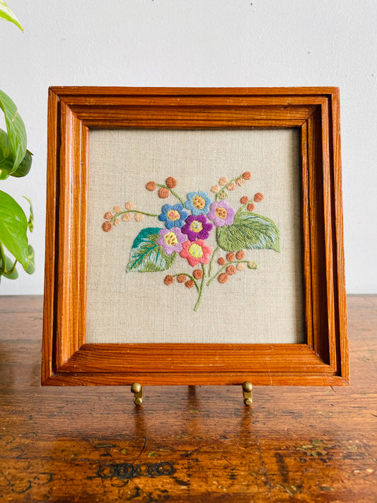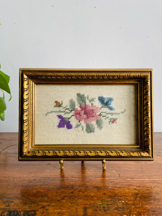 Vintage 1932 Floral Needlepoint Embroidery Picture in Gold Frame - Made by Babs in Regina Saskatchewan