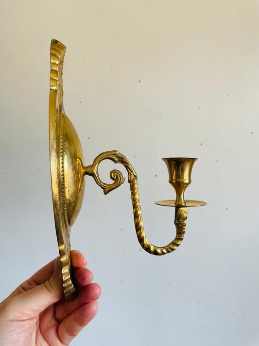 Vintage Victorian Style Solid Brass Wall Hanging Candle Holder Sconces - Convex Oval with Ornate Details - Set of 2