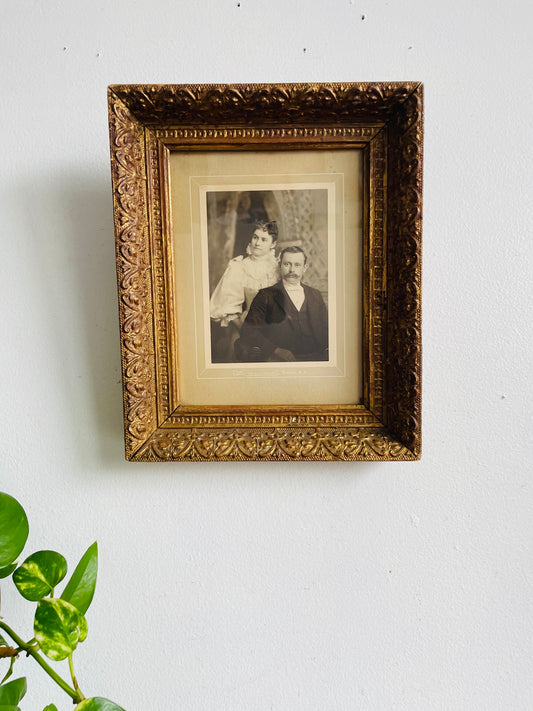 Antique Gorgeous Ornate Gold Wood Picture Frame with Glass - Black & White Photograph Currently Inside / Easily Removed - 6" x 8" Photo Size