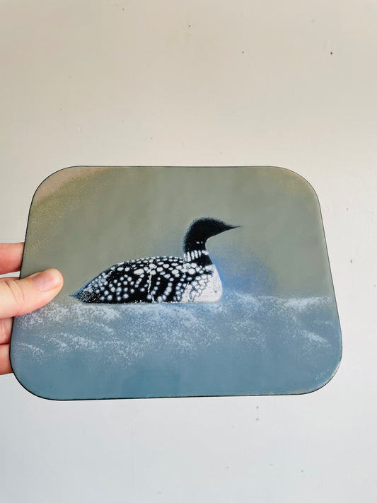 Vintage Hand Enamel on Copper Wall Plaque Picture - Signed by Canadian Artist B.E. Eren - Loon Bird on Lake - Made in Canada